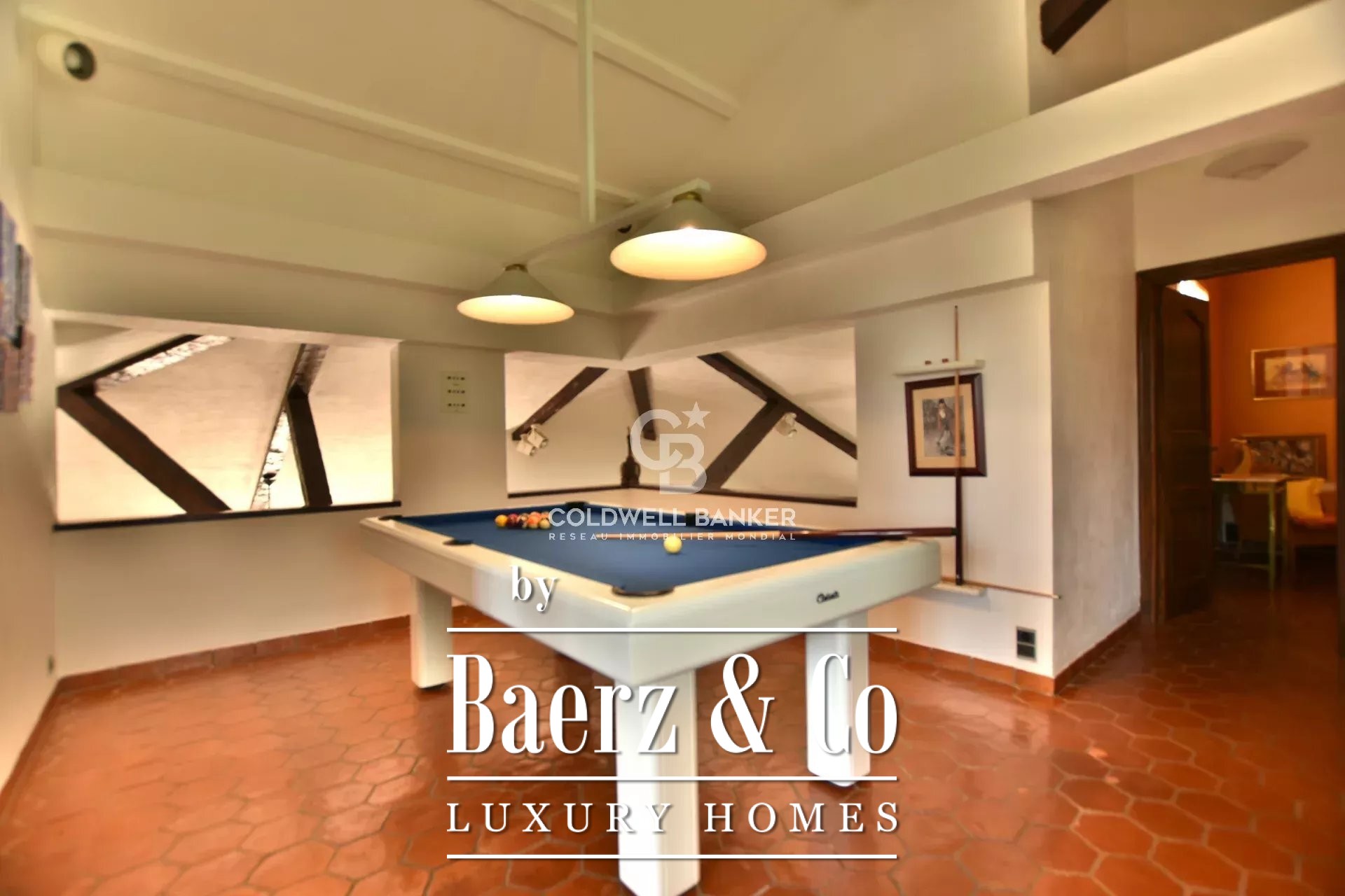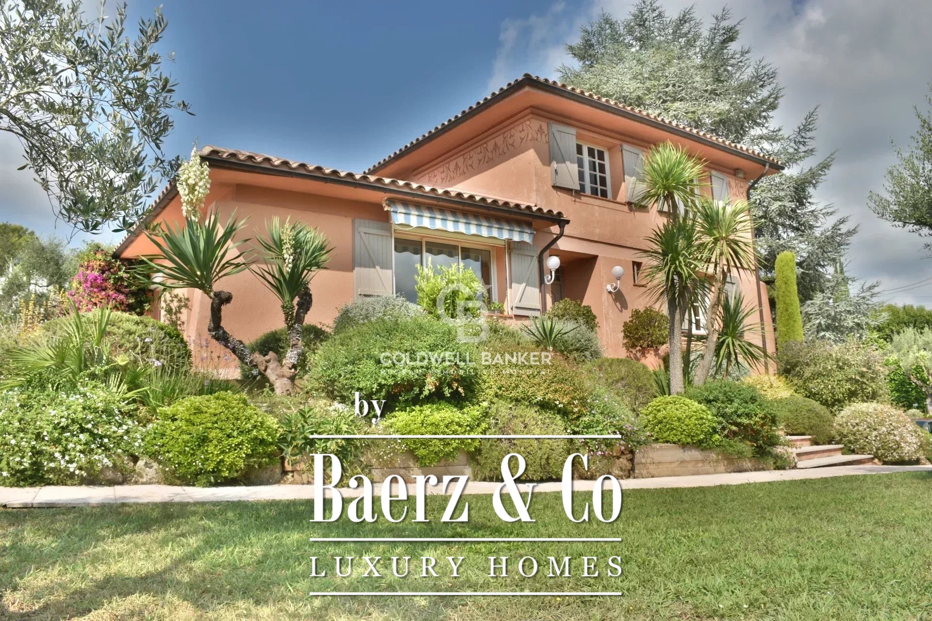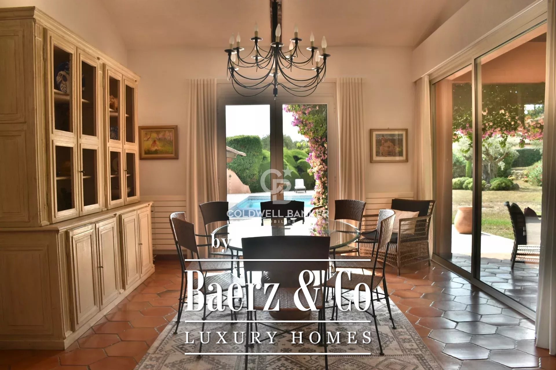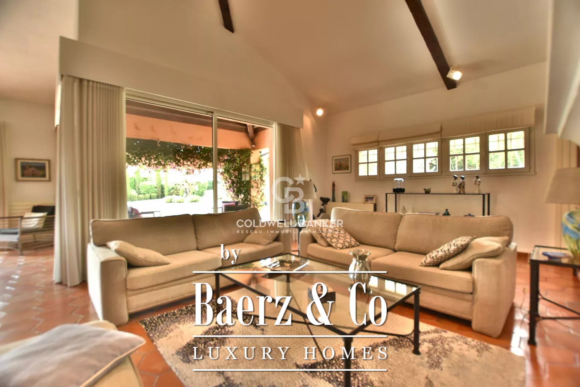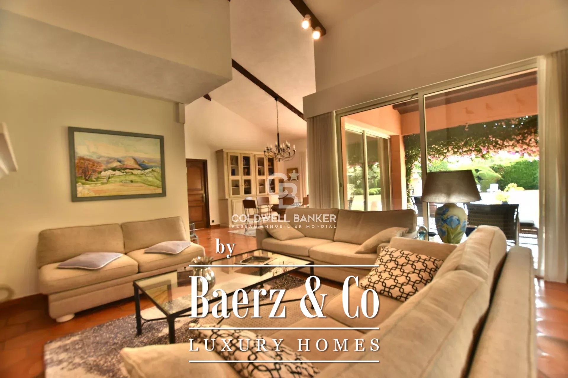 This Provençal villa Valbonne is quietly situated moments from the heart of this revered Côte d’Azur village. The property offers 200 m² of considered living space across two levels, set within a gently landscaped 2,670 m² park filled with olive trees and Mediterranean shrubs. The villa blends classic regional architecture with contemporary comfort, combining high-ceilinged living areas and a stone fireplace with generous light from bay windows that open to a covered terrace and garden.