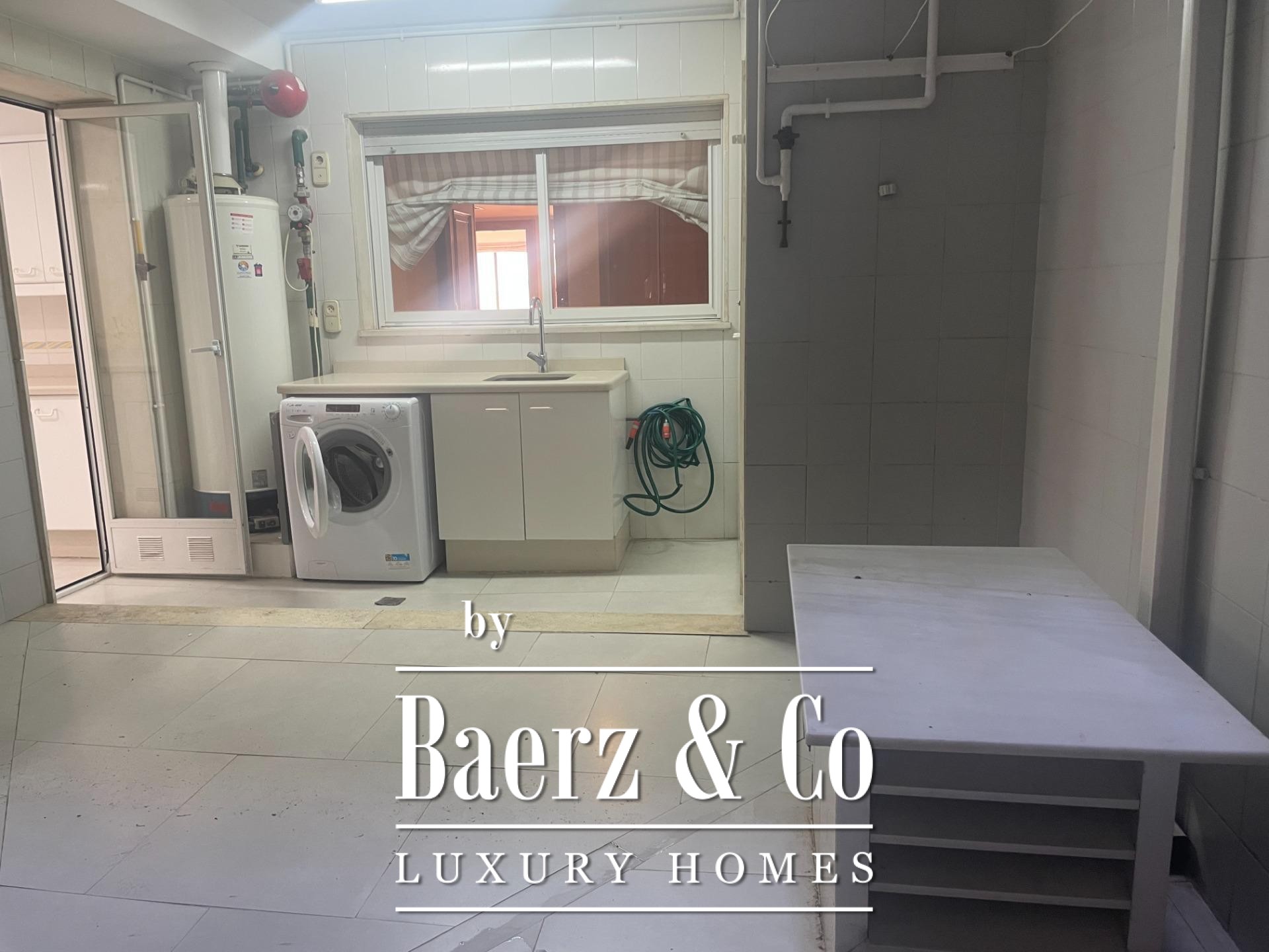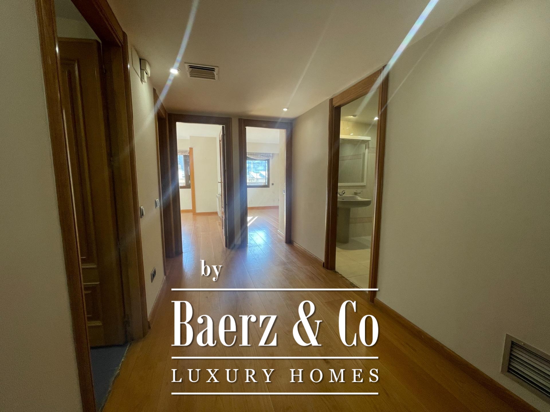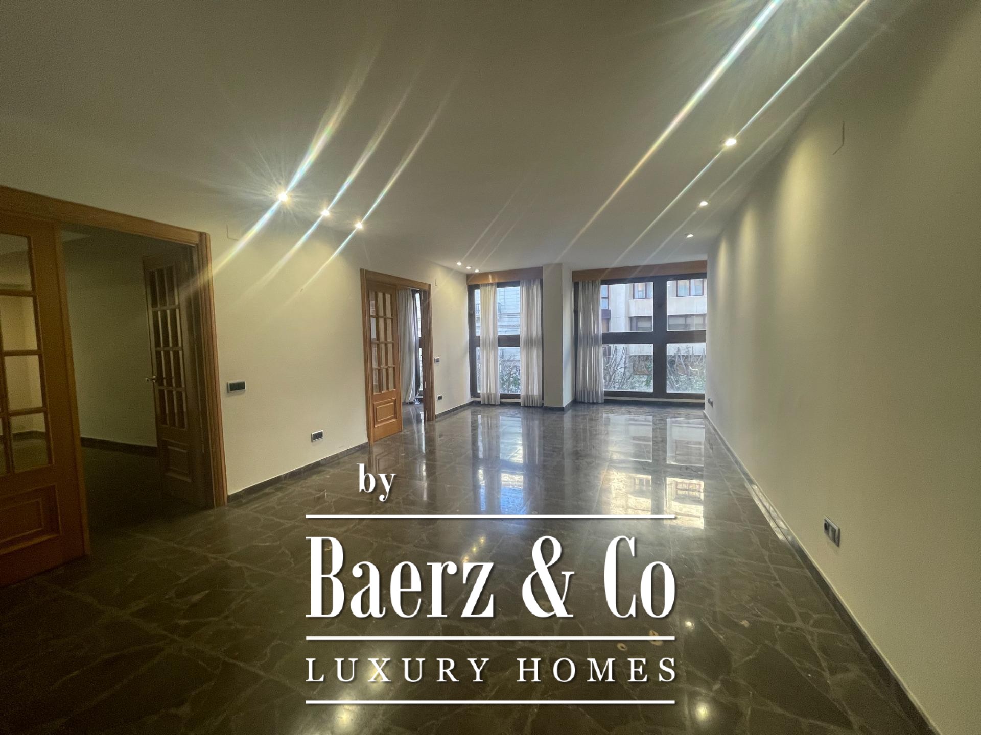 Apartment Valencia is defined by its serene presence on Colón Street within a modern building constructed in 1990. The 269 m² living area unfolds from a generous entrance hall into a broad living and dining space, illuminated by expansive windows that lend a sense of unhurried calm. Five double bedrooms, each with built-in wardrobes, include a master suite distinguished by its own dressing room. Three full bathrooms, one en suite, and a guest toilet complete the thoughtfully planned layout.