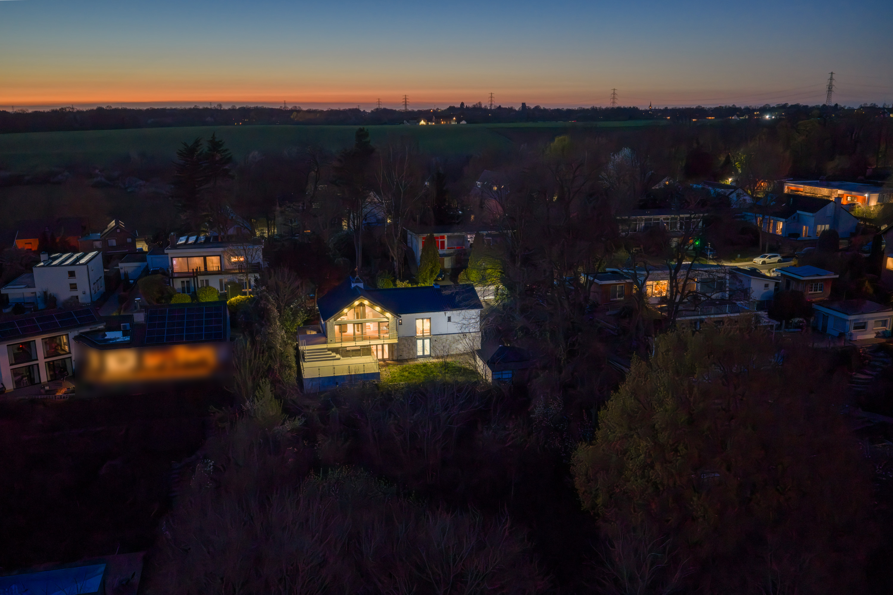 The living area is located at the rear and is fully oriented toward the panoramic view. Thanks to the large windows, natural light floods in, and the indoor and outdoor spaces blend seamlessly. With an XL garage, a practical layout, and all essential living amenities on the ground floor, this home combines luxury with lifetime-ready living. The home features a spacious, multifunctional basement and a practical attic.