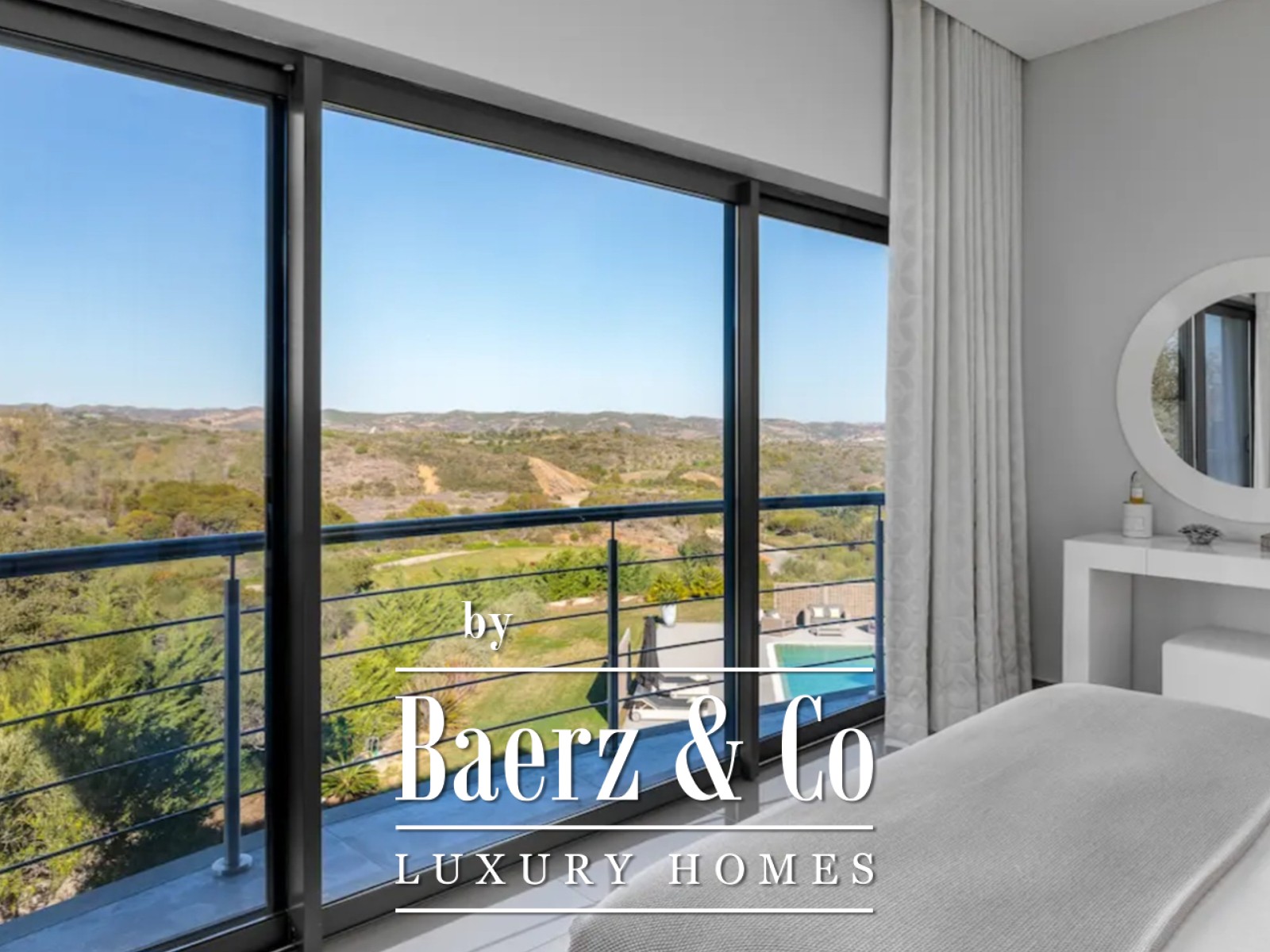 Villa Vila Real de Santo António stands as a statement of refined living, commanding sweeping views of the Monte Rei Jack Nicklaus Signature North Course, the Atlantic, and the Serra do Caldeirão. This 446 m² property, set on a 2,368 m² plot, offers a fully furnished, high-design environment where every space is honed for comfort and privacy.