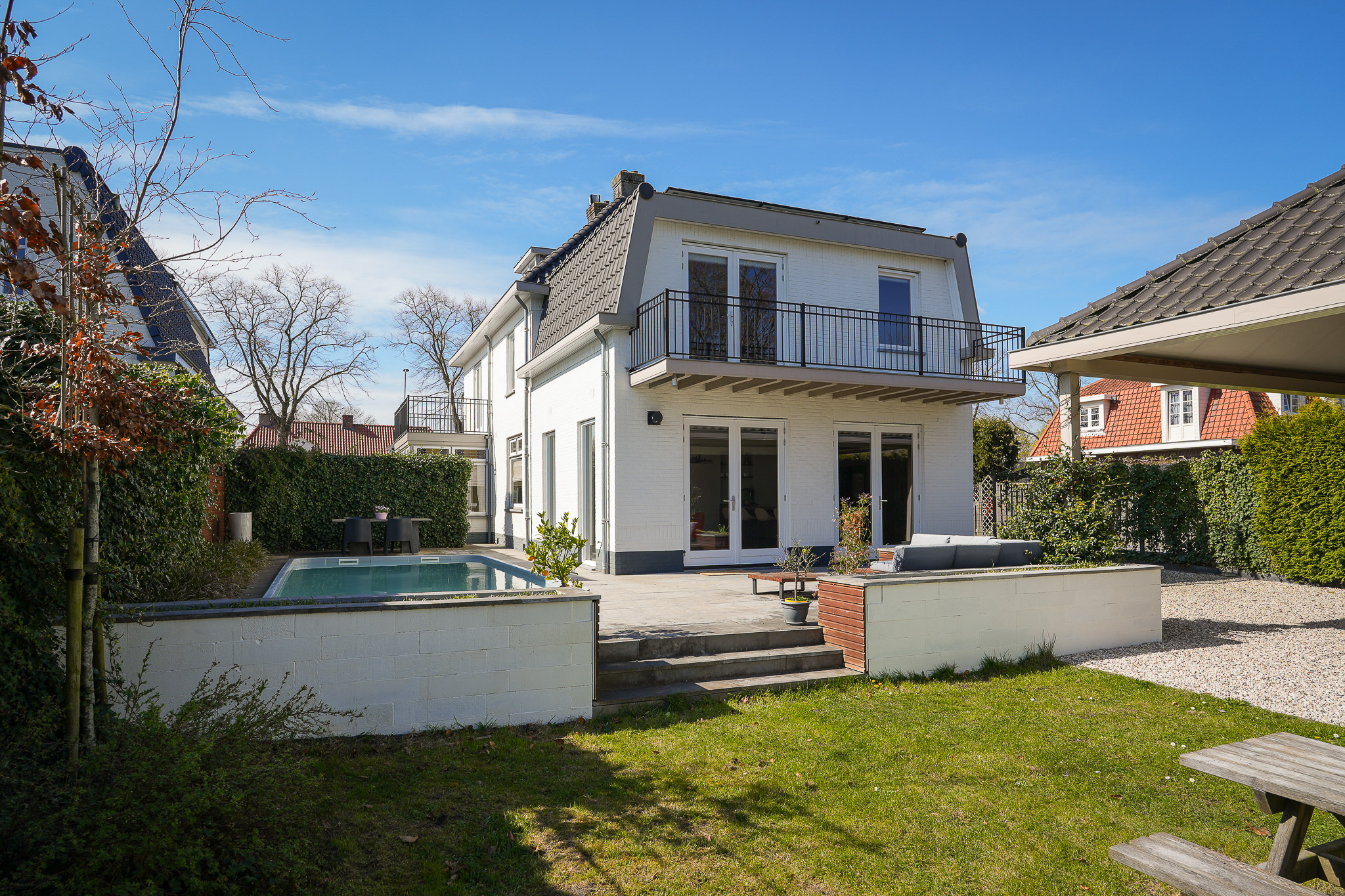 Near the historic centre of Zaltbommel stands this luxurious, pre-war detached villa, offering six bedrooms, two bathrooms and a multifunctional outbuilding, all set within a sun-drenched garden with a swimming pool.