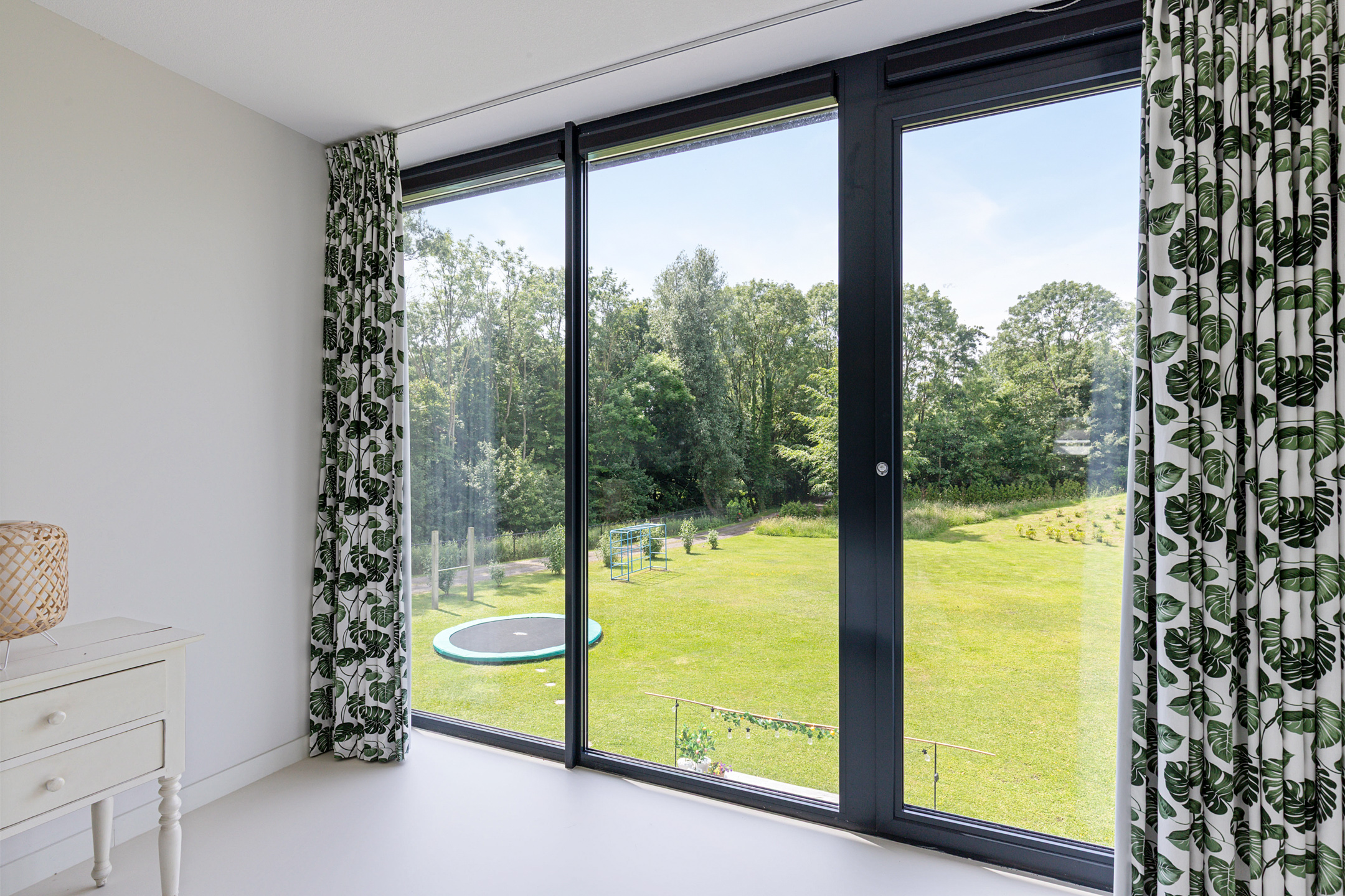 Het royale perceel is omzoomd door groen en voorzien van een lange oprijlaan met voldoende parkeergelegenheid. De tuin is speels, kindvriendelijk en uitnodigend voor mens en dier. Liefhebbers van buitenleven vinden hier rust, ruimte en volop mogelijkheden voor tuinieren.