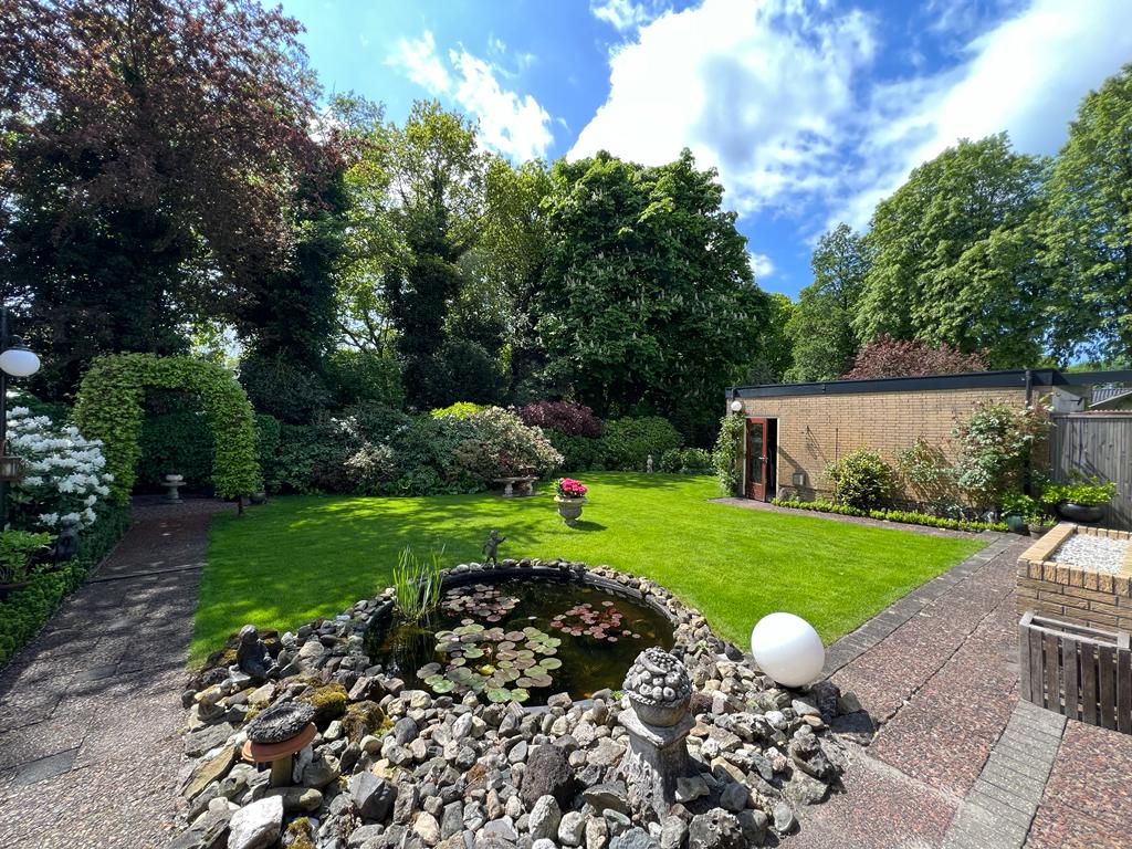 Bij binnenkomst een royale woonkamer met aparte eetkamer, word je meteen omarmd door de lichtheid die de talrijke ramen brengen. De riante schuifpui in de woonkamer opent de deur naar een ruimtelijk panorama, waar een weelderige aangelegde tuin zich uitstrekt. Het zonovergoten terras, met tuinverlichting en een vijverpartij, biedt een serene uitnodiging tot ontspanning. De omringende groene oase waarborgt totale privacy. De tuin, met zijn bronbemaling en sproei-installatie, wordt liefdevol onderhouden.