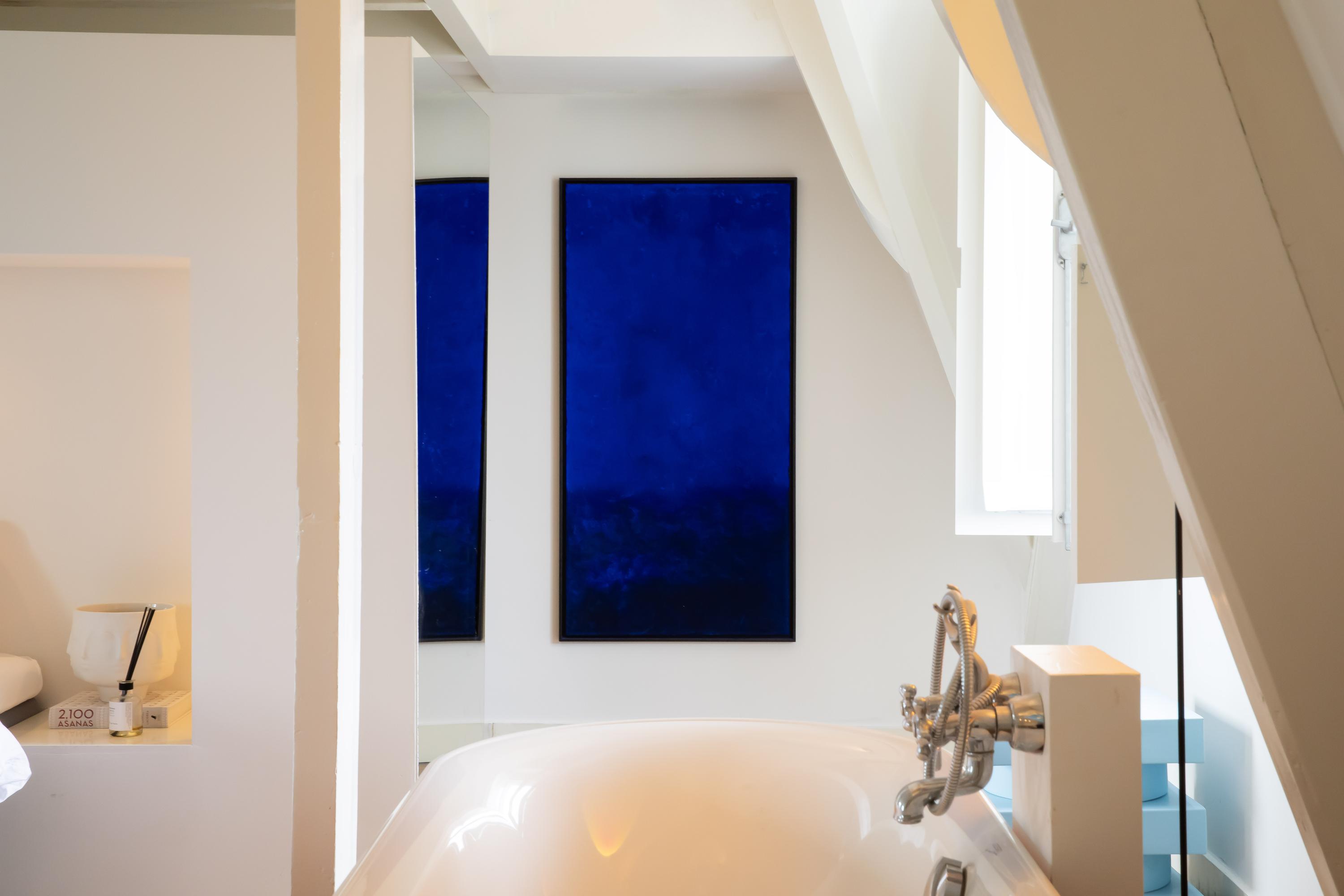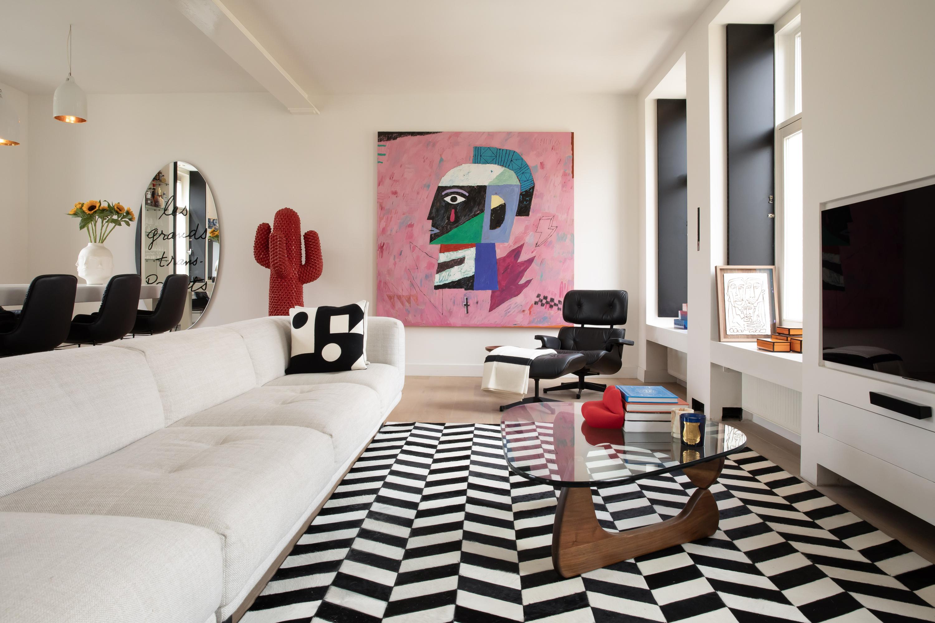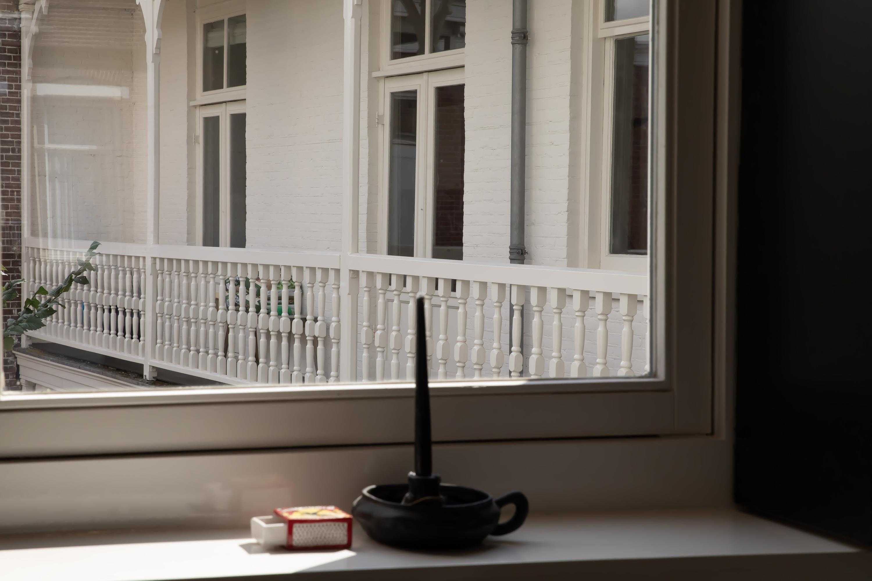 Via de trap bereikt u direct de royale, open woonkamer op de derde verdieping. De ruimte is extra breed en beschikt over maar liefst vier ramen – het dubbele van wat gebruikelijk is in Amsterdam – waardoor er een overvloed aan daglicht binnenvalt. De moderne open keuken is uitgerust met een imposant kookeiland met eetgedeelte en hoogwaardige inbouwapparatuur van onder andere Boretti, waaronder een oven, koel-vriescombinatie, 8-pits gasfornuis met afzuigkap, vaatwasser en wijnklimaatkast. Bovendien is er volop bergruimte aanwezig. Vanuit de keuken heeft u toegang tot het brede, gezellige balkon (circa 4 m²), gelegen op het oosten. Daarnaast bevindt zich op deze verdieping een separaat toilet met fonteintje en een handige berging. Een elegante trap met deels transparante brick-wall leidt u naar de vierde verdieping.