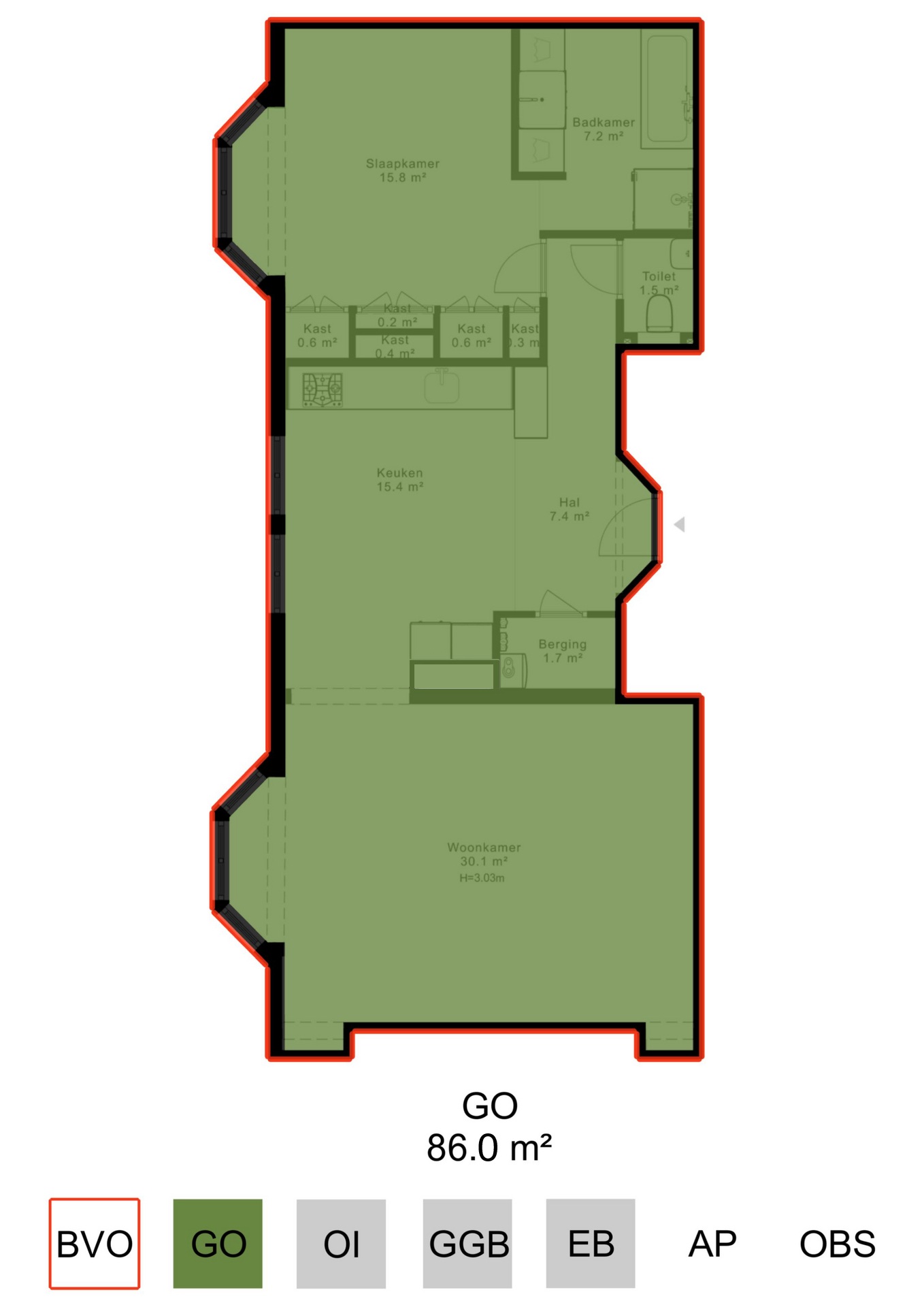- Appartementsrecht van ca. 86 m² (gemeten conform NEN2580 meetinstructie)