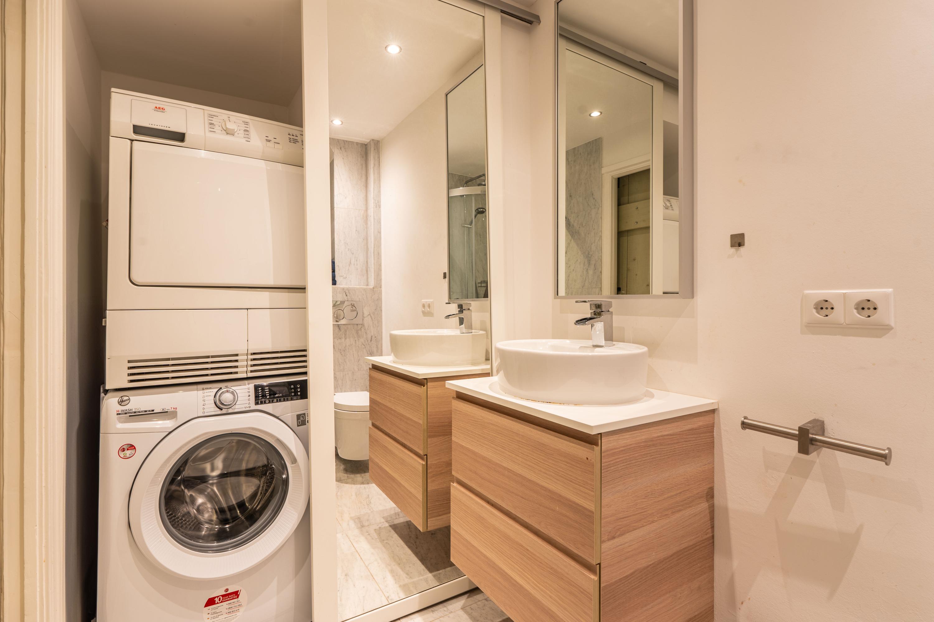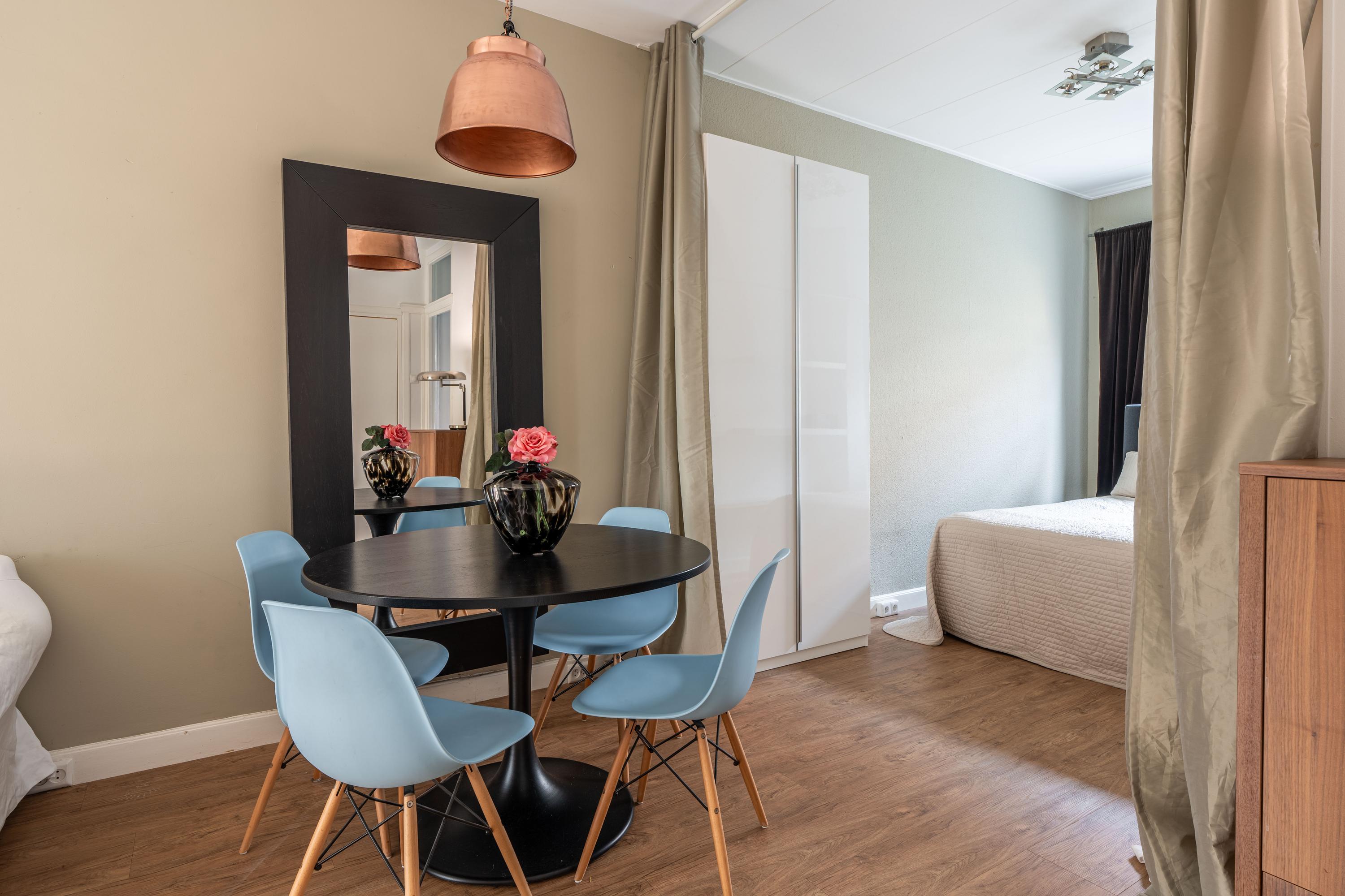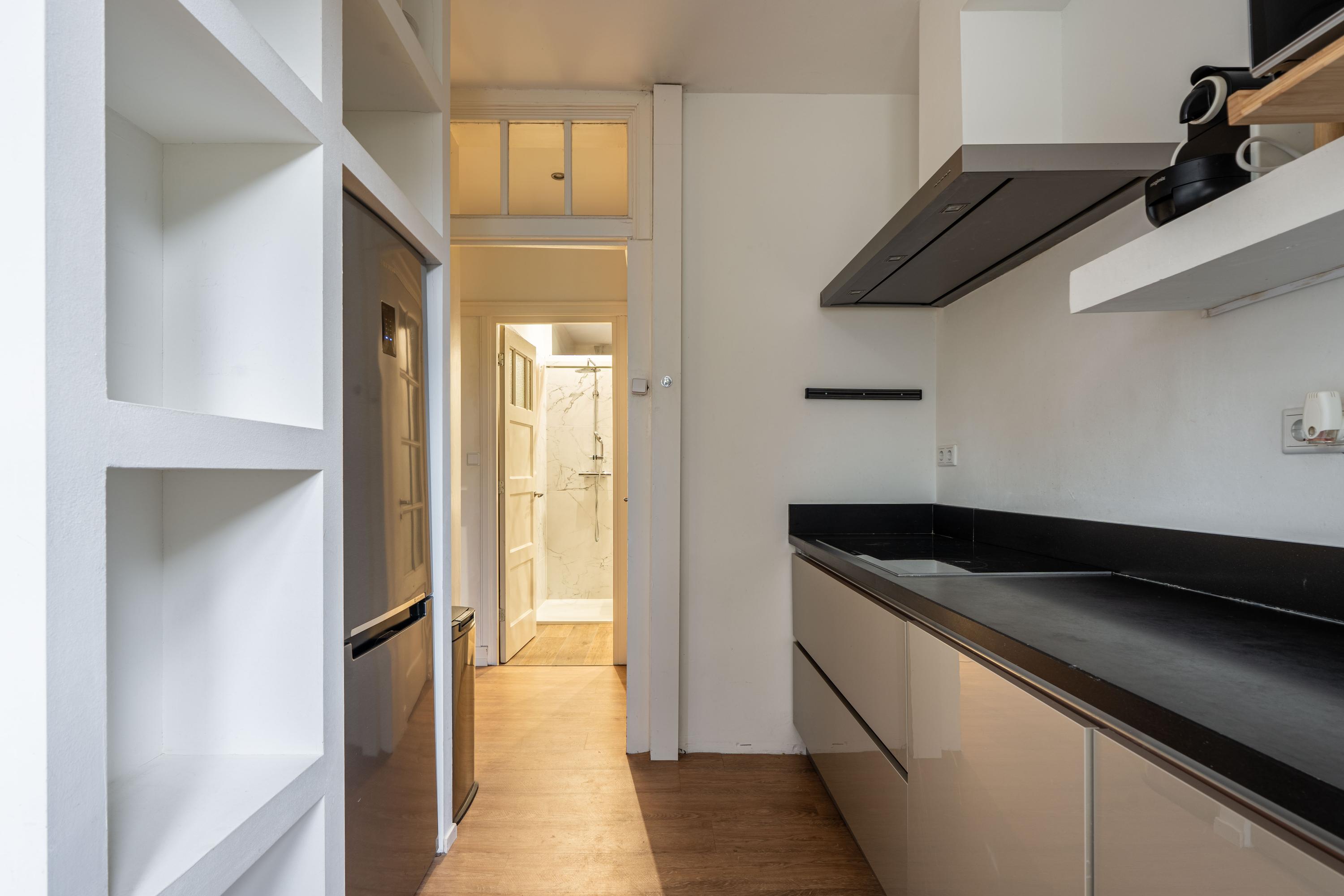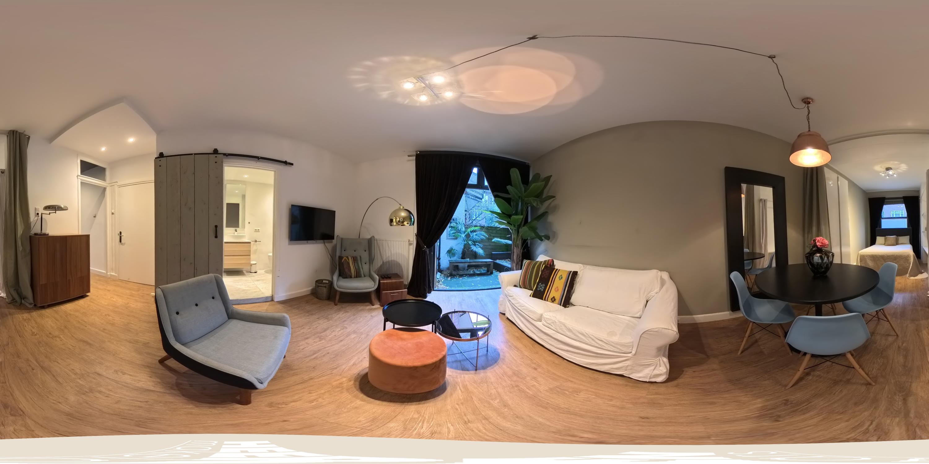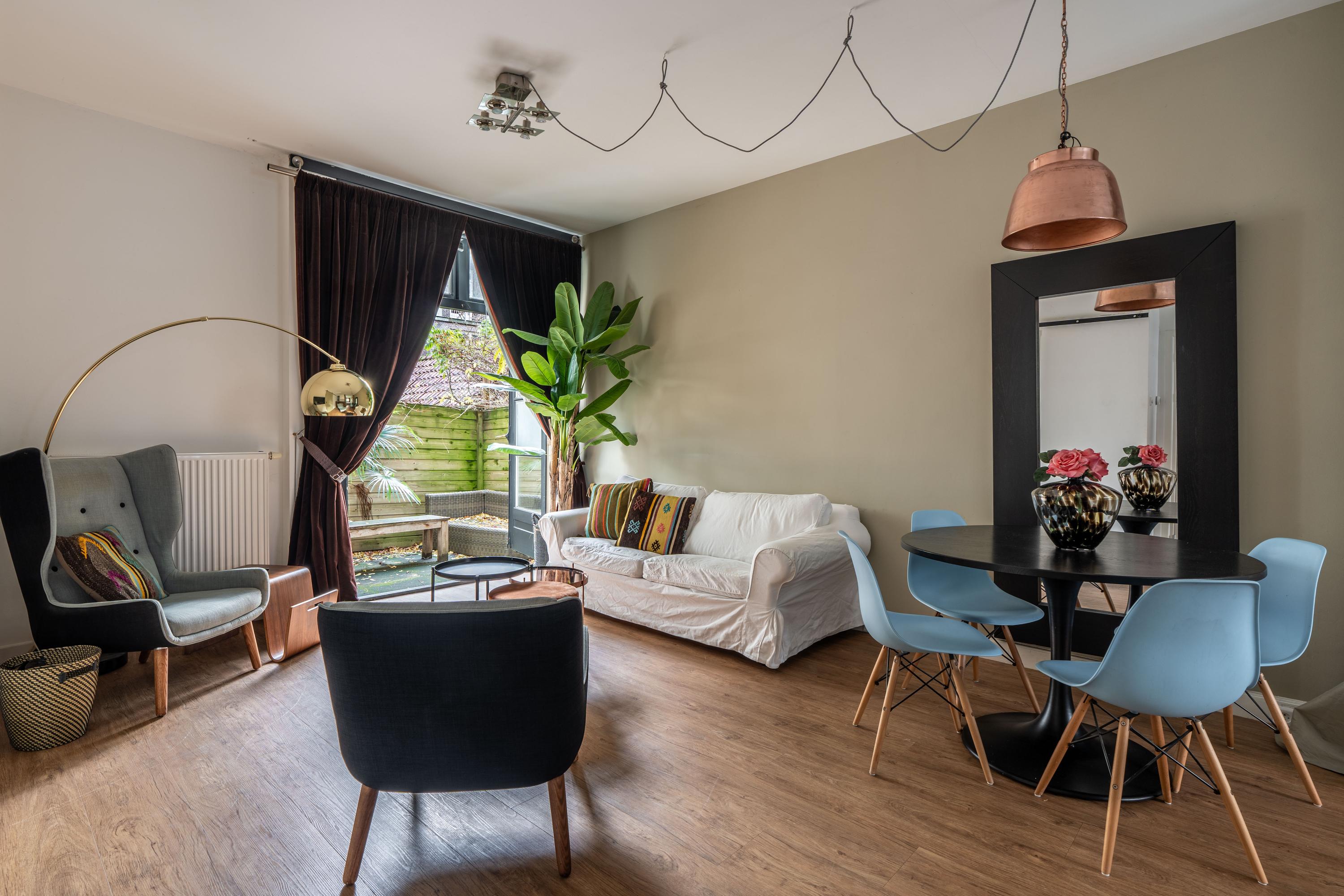 Eigen entree op de begane grond. Via de hal bereikt u aan uw rechterzijde de eerste woonkamer met toegang tot de gezellige patio aan de achterzijde van de woning. Aan de voorzijde treft u de slaapruimte en de keuken, voorzien van een 3-pits gasfornuis met afzuiger, vaatwasser, koelkast en combi-oven. Middels een schuifdeur heeft u vanuit de woonkamer toegang tot de moderne badkamer, die bestaat uit een inloopdouche, toilet en wastafel met meubel. Tevens vindt u hier ook de aansluitingen voor de wasmachine en droger.