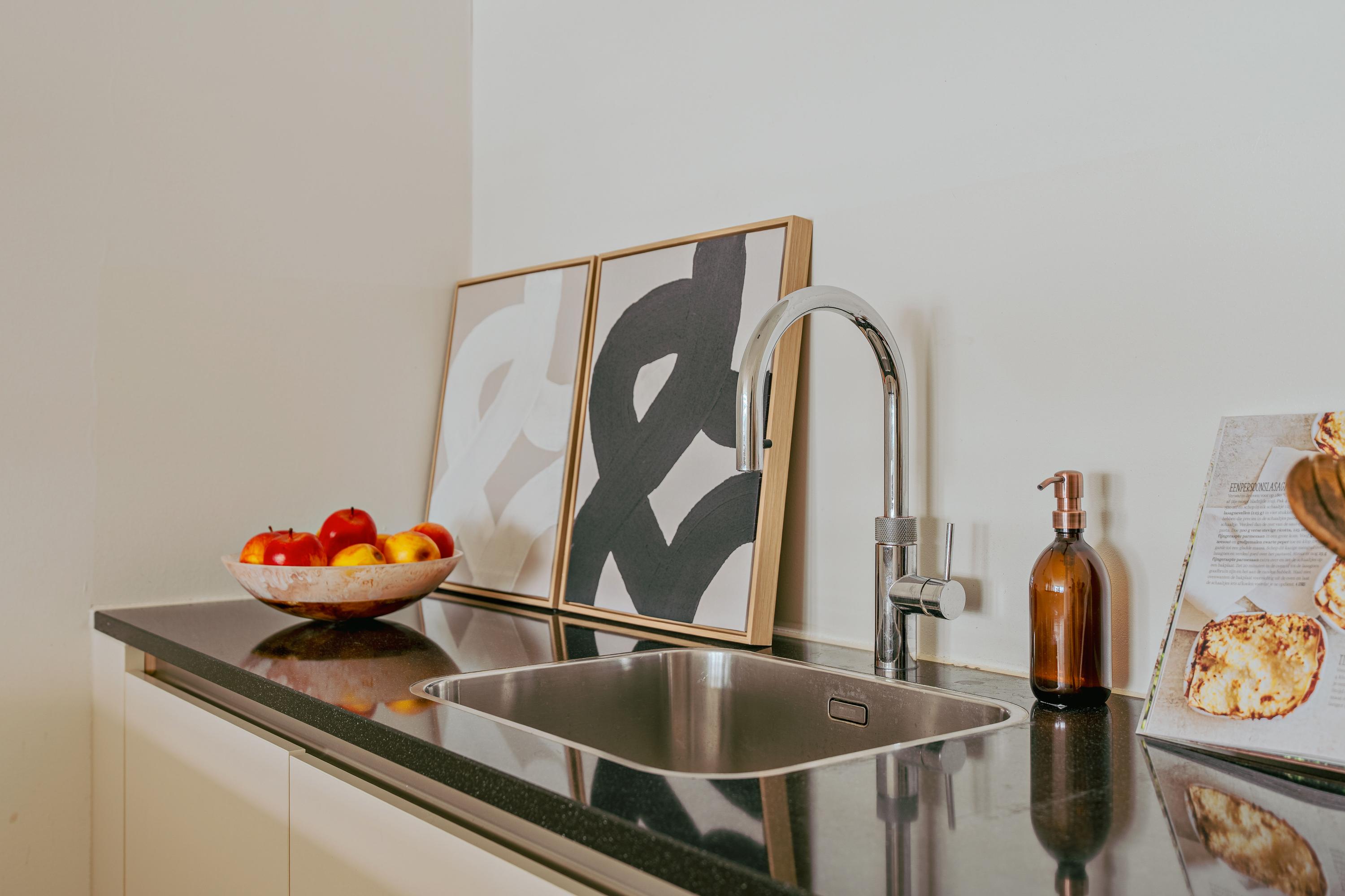 Bij binnenkomst betreedt u een royale hal met meterkast, separaat toilet en ruimte voor een garderobe. Vanuit hier loopt u de ruime en open woonkamer in, waar het spectaculaire uitzicht direct de aandacht trekt. De grote ramen zorgen voor een uitzonderlijk ruimtelijk gevoel. Aan de voorzijde bevindt zich een serre — een ideale plek om tot rust te komen, te lezen of simpelweg te genieten van het uitzicht. De open keuken is gelegen aan de achterzijde en is voorzien van moderne inbouwapparatuur, waaronder een koelkast, vriezer, inductiekookplaat met geïntegreerde afzuiging, Quooker en vaatwasser. U vindt hier ook nog een ruime berging voor extra opslagruimte.