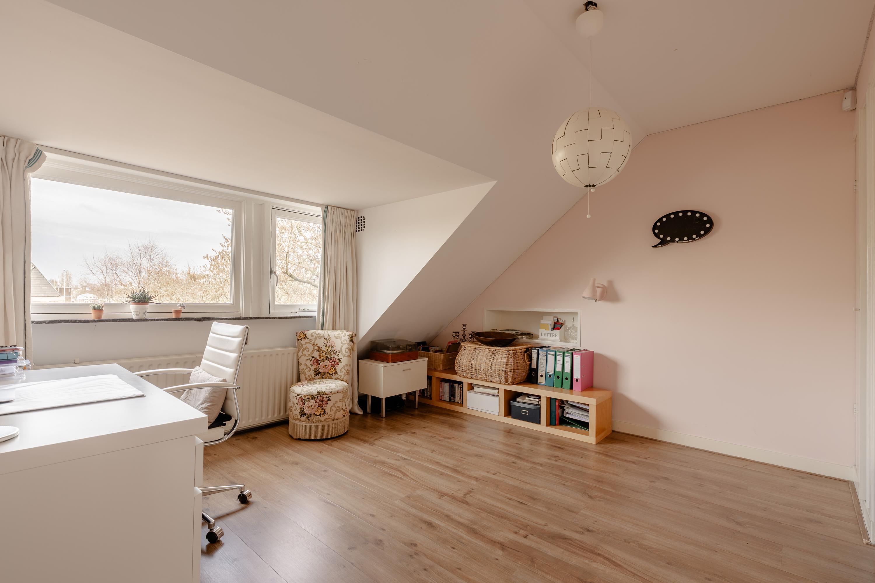 Daarnaast bevinden zich op deze verdieping nog drie (slaap)kamers. Twee kamers liggen aan de voorzijde, waarvan één momenteel in gebruik is als werkkamer. In het midden van deze verdieping bevindt zich een kamer die volledig is ingericht als inloopkast. Op de overloop bevindt zich tevens een separaat toilet.