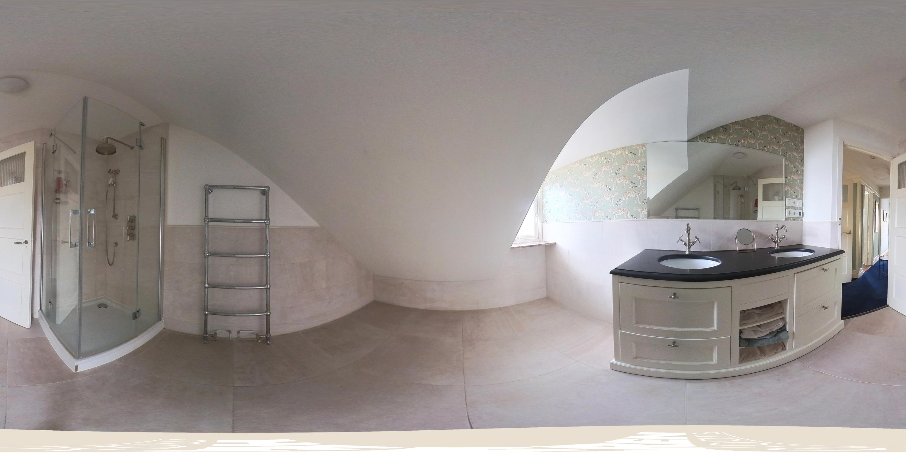 Aan de voorzijde bevindt zich een derde slaapkamer. De badkamer op deze verdieping is voorzien van een dubbele wastafel met meubel, douche en een handdoekradiator.