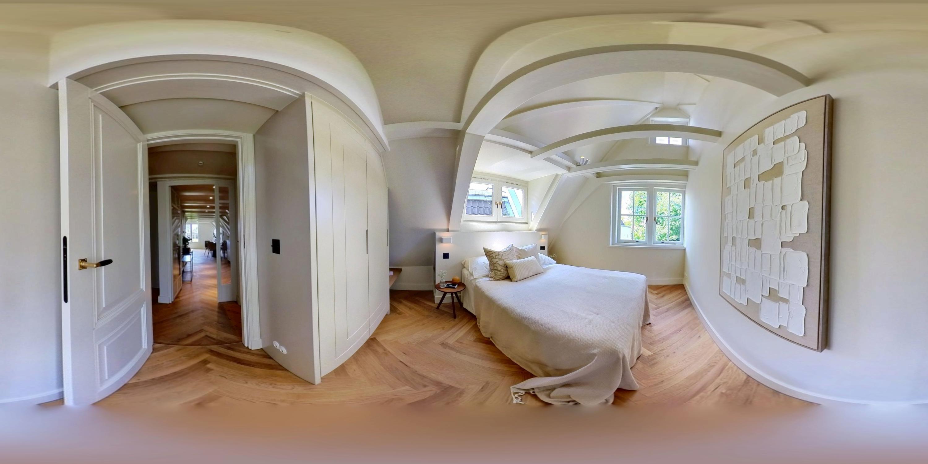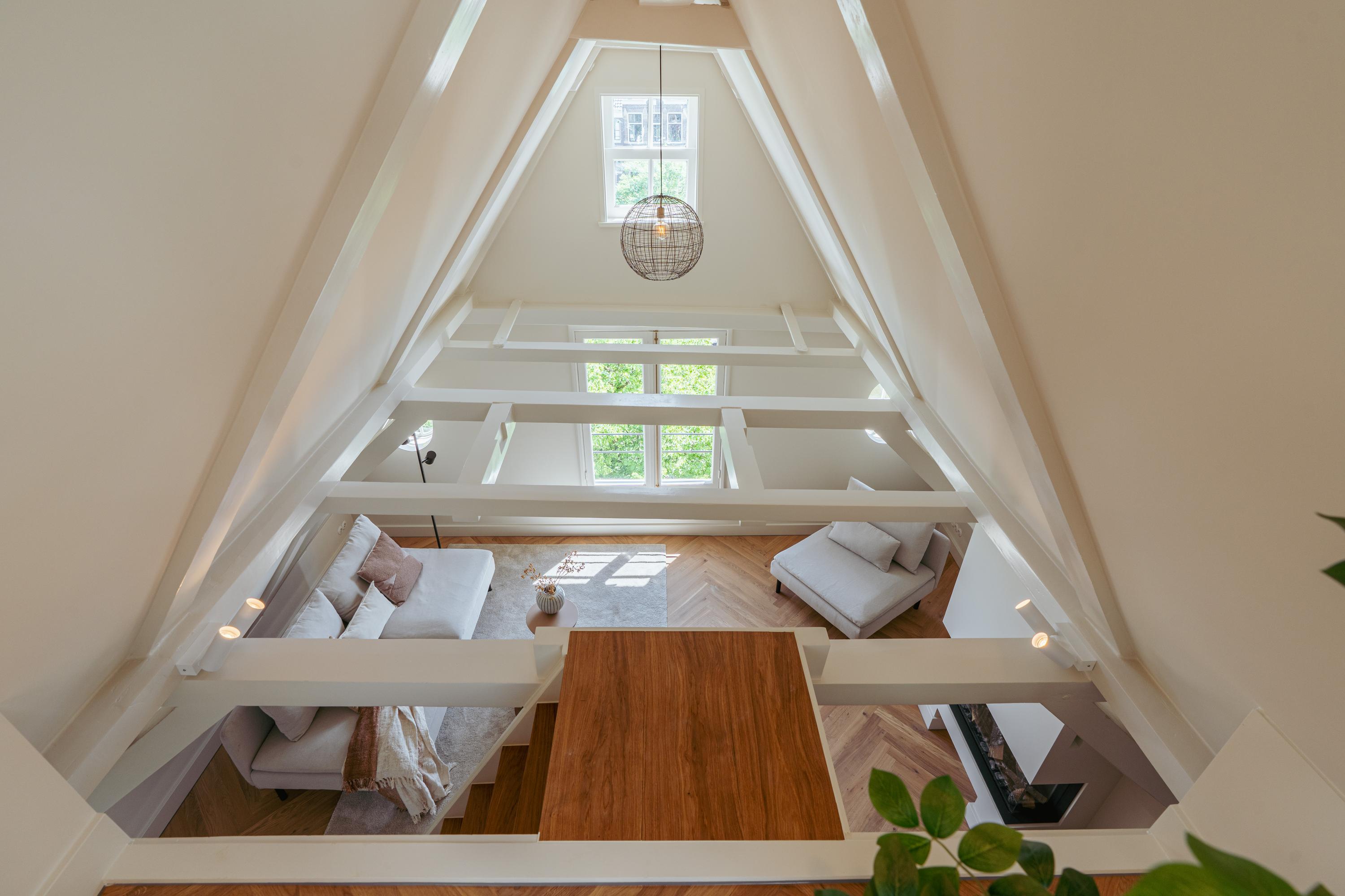 Op de vierde verdieping bevindt zich nog een ruime slaapkamer. Deze is te bereiken middels een vaste trap. De vide geeft de woning bijzonder veel allure.