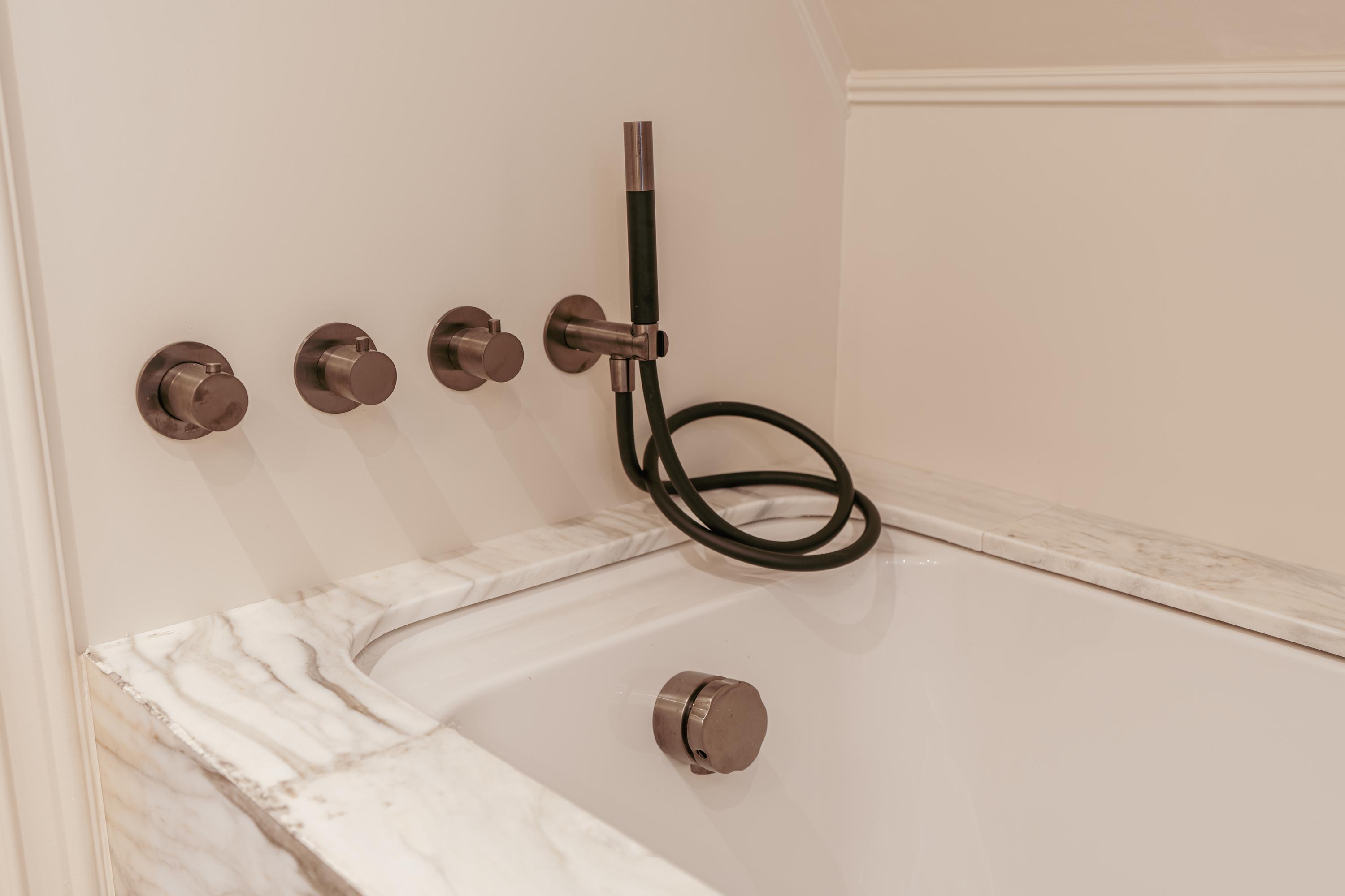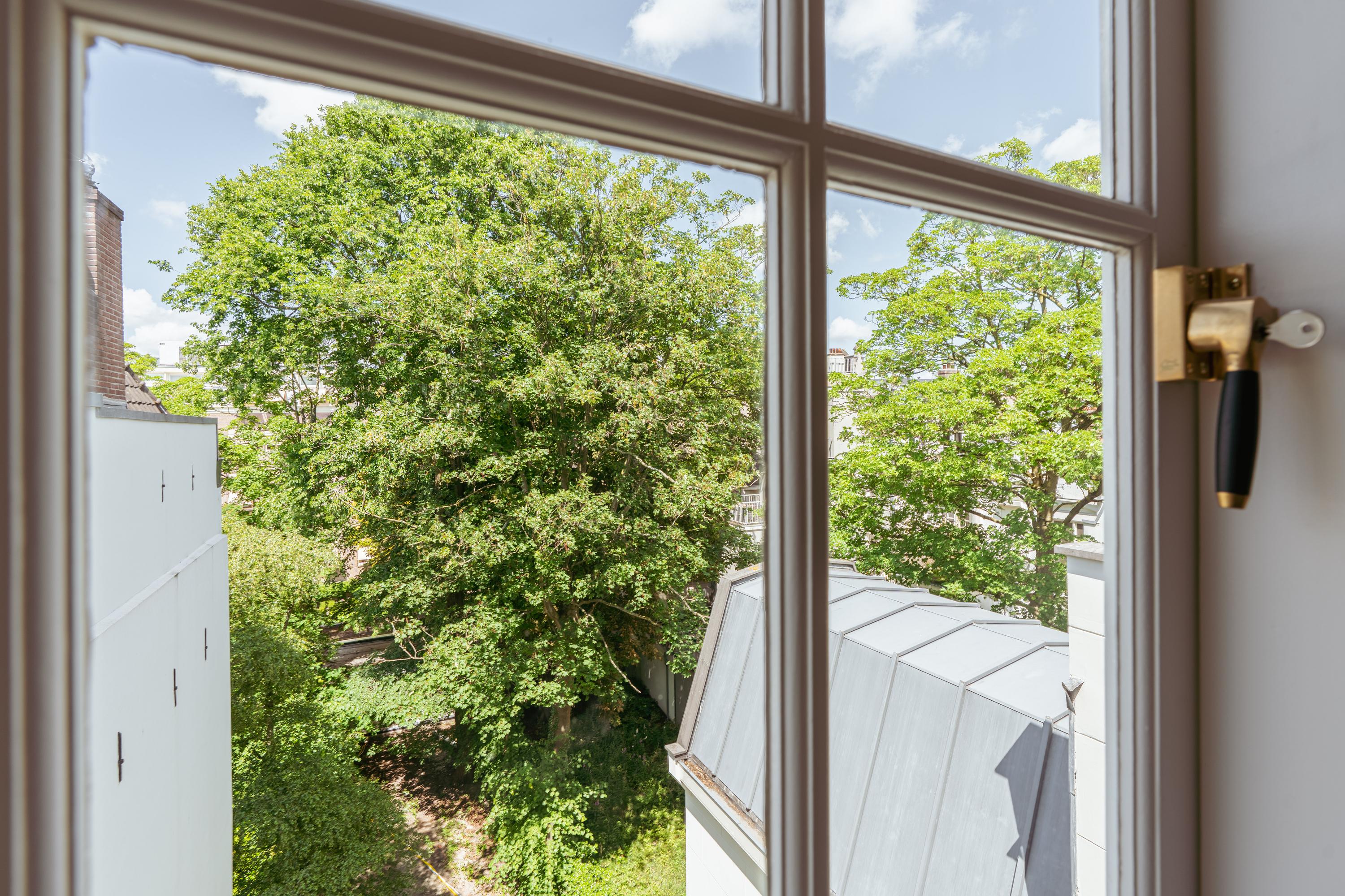 Binnenkomst in de ruime living met grachtzicht. Een gashaard en de zichtbare plafondbalken geven het vertrek bijzonder veel sfeer. Openslaande ramen bieden een fantastisch uitzicht op de gracht. De luxe open keuken is voorzien van alle denkbare inbouwapparatuur waaronder een Quooker, vaatwasser, Bora inductieplaat met geïntegreerde afzuiging, twee Siemens Studioline (combi)ovens en meer dan genoeg opbergruimte. Via een stijlvolle stalen deur bereikt u de overloop met separaat toilet en een fijne bijkeuken. Aangrenzend een royale badkamer met dubbele wastafel, ligbad en een inloopregendouche, afgewerkt met marmer. De twee zeer goed bemeten slaapkamers bevinden zich aan de achterzijde van het appartement en kijken uit op de groene binnentuinen.