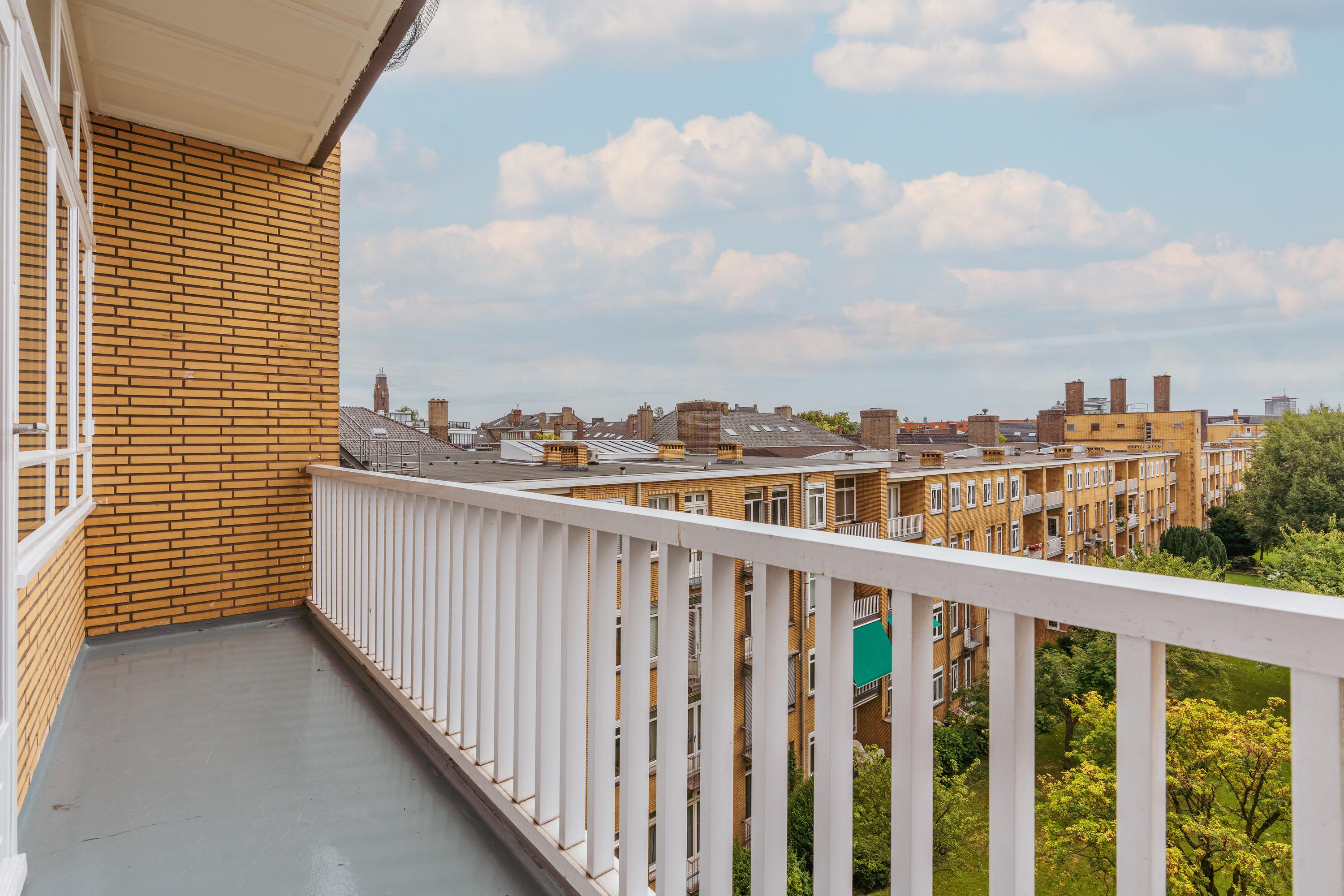 De lichte en indrukwekkend ruime woonkamer (ca. 39,5 m²) is gelegen aan de voorzijde van het pand en wordt gekenmerkt door grote raampartijen die voor veel licht zorgen met uitzicht over het groene en statige Minervaplein. De open woonkeuken is voorzien van diverse moderne inbouwapparatuur, waaronder een inductiekookplaat, combi-oven, vaatwasser, koelkast en vriezer. Vanuit de keuken heeft u toegang tot het balkon op het noord-oosten, een heerlijke plek om van de middag- en avondzon te genieten.
