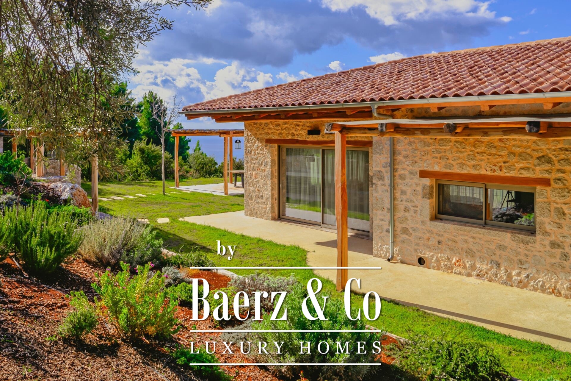 Set in a peaceful natural environment, just 300 meters from the sea, this luxurious stone-built villa of 360 sq.m. is situated on a private plot of 5,333 sq.m., offering unobstructed panoramic views of the Ionian Sea, the mountains, and the lush green landscape of Lefkada.
