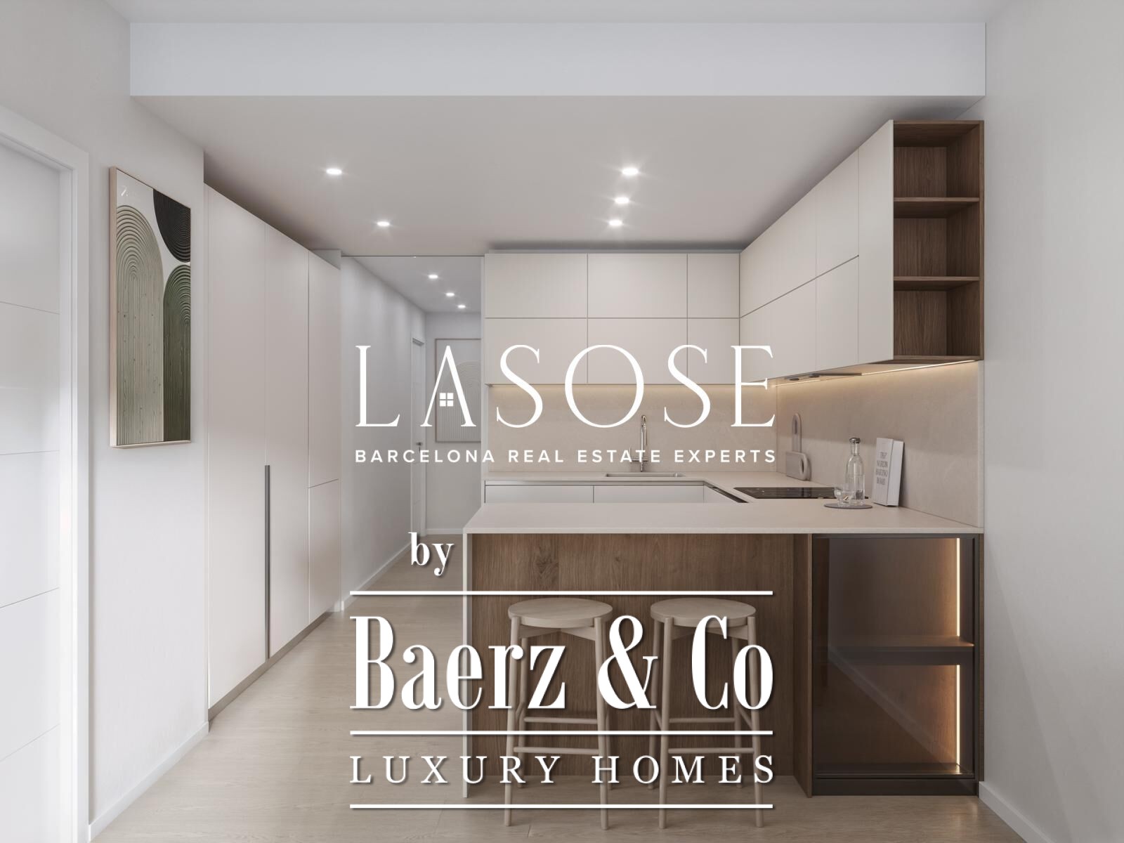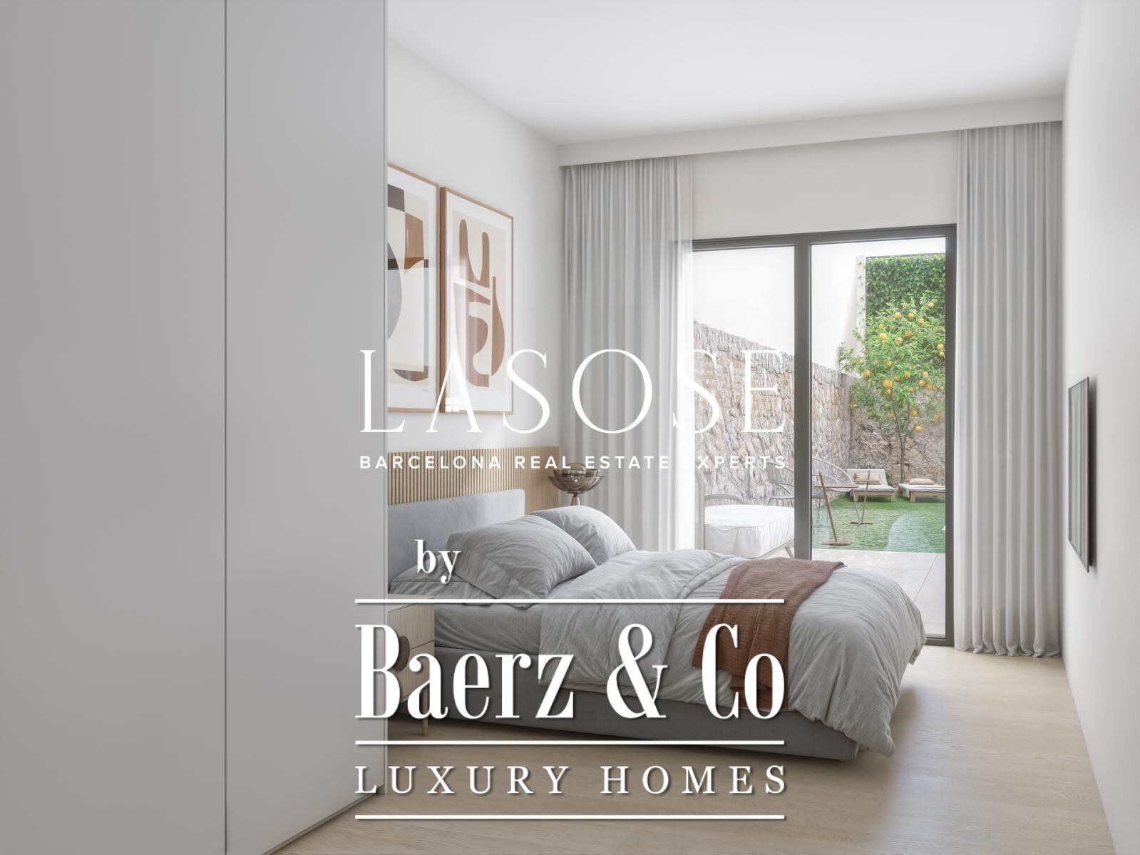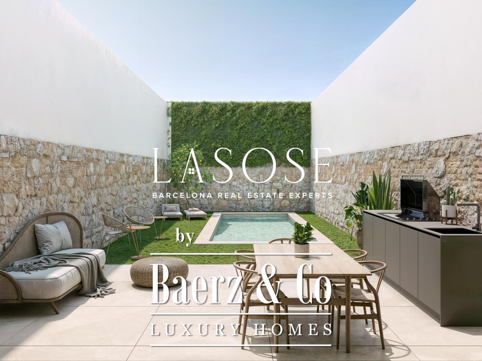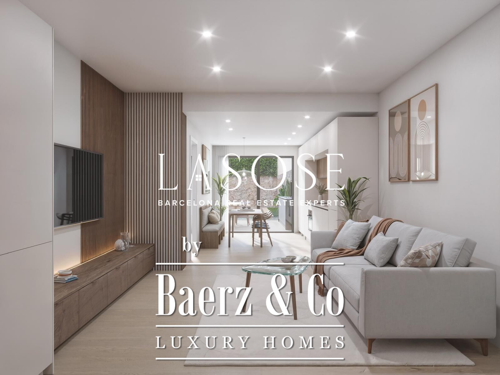 LASOSE presents just a few steps from the Rambla del Poblenou, this spectacular first floor apartment, which combines comfort, design and an excellent location. . . This exceptional ground floor of 77 m2 built surface + 80 m2 of garden has 2 spacious bedrooms and 2 bathrooms. The master bedroom is a bright suite with direct access to the private garden, where natural light floods every corner, creating a warm and cozy atmosphere.. . The kitchen, modern in style, is fully equipped with high-end appliances, designed to enjoy both day to day and special occasions. . . The air conditioning system works through aerothermal energy, the most efficient renewable energy technology on the market, providing hot water, heating and air conditioning in a sustainable way.. . Outside, the private garden is a true urban oasis. It will have a summer kitchen ideal for celebrations and unforgettable moments outdoors. In the background, an elegant swimming pool surrounded by greenery, decorative trees and high quality artificial grass, brings a touch of freshness and exclusivity to the whole.. . The images
