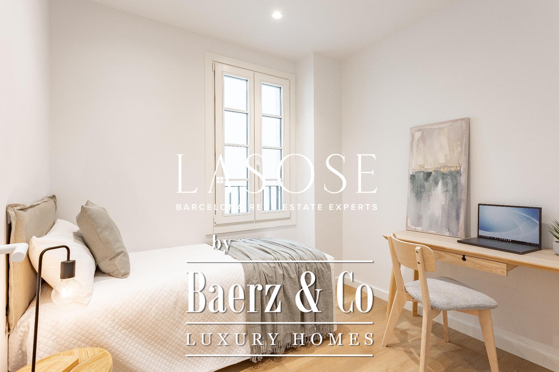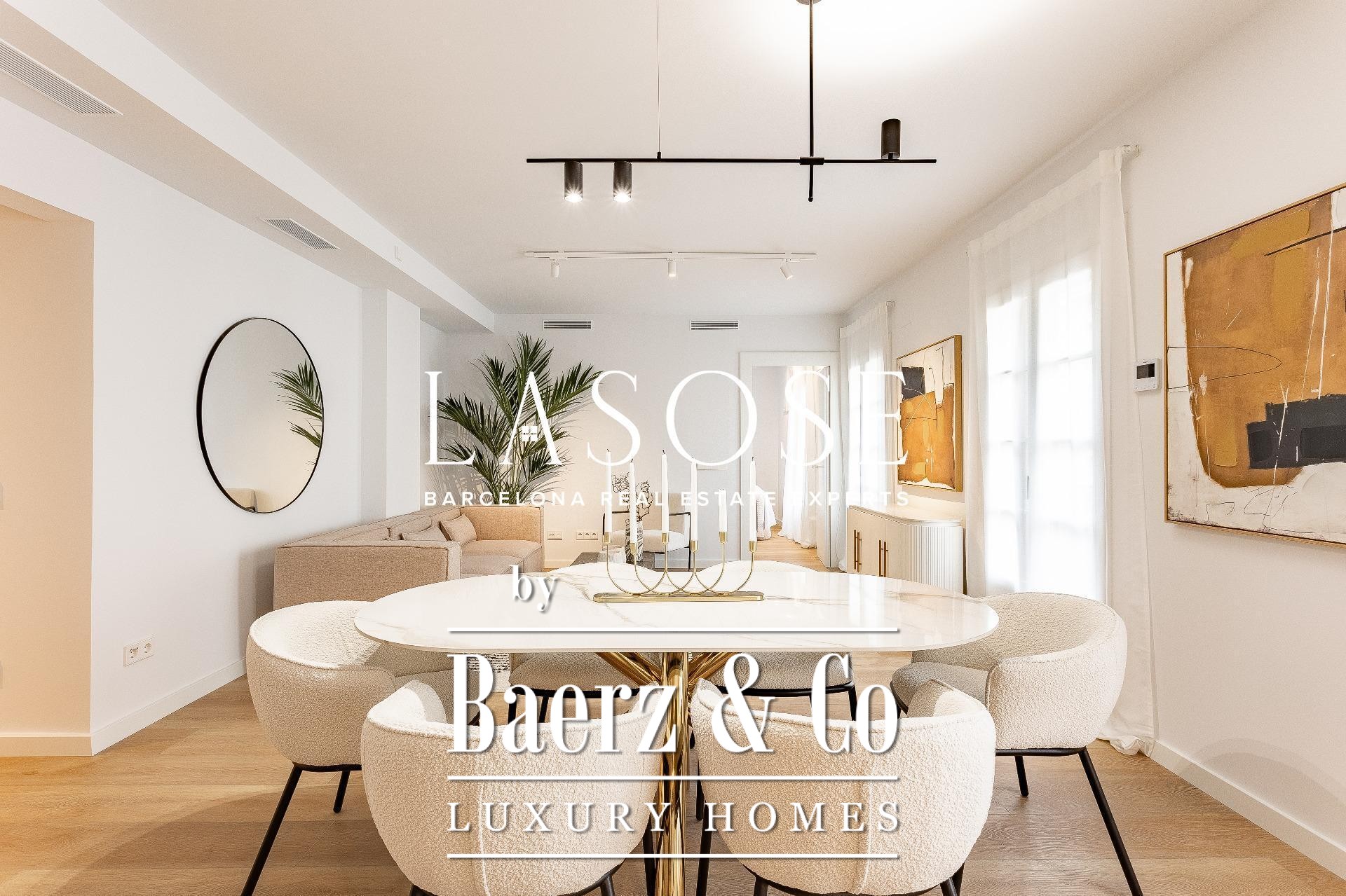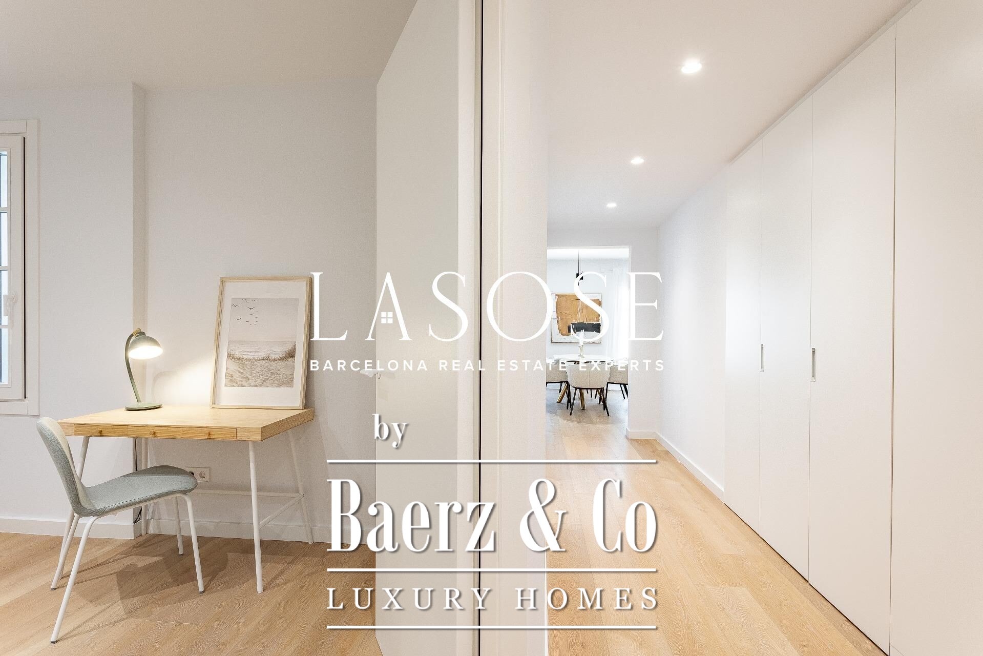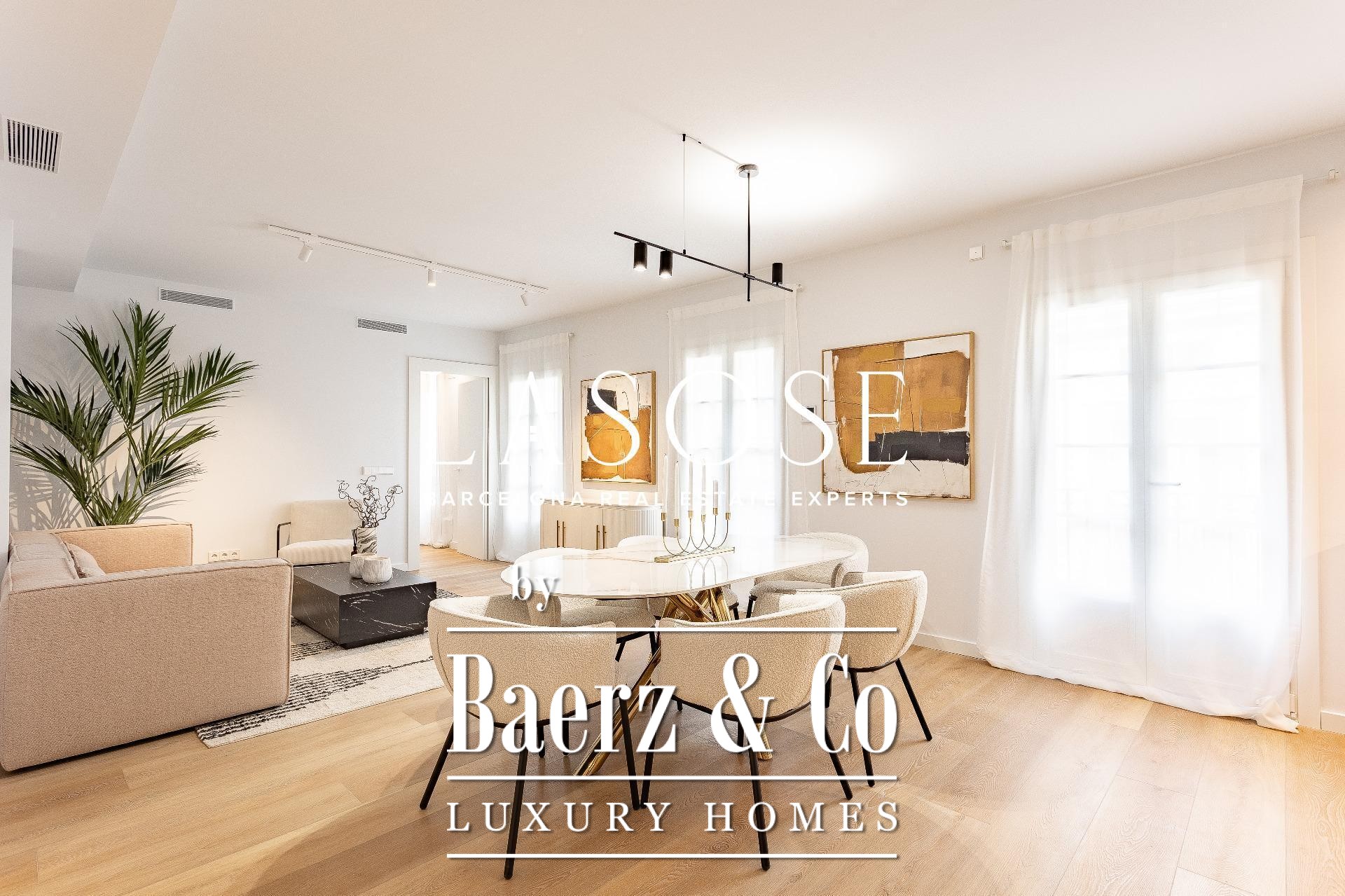 Apartment Barcelona biedt een uitnodiging tot stedelijke verfijning in het hart van de stad, gelegen aan de Tallersstraat, op slechts enkele momenten van Plaza Catalunya. Deze volledig gerenoveerde woning beslaat 108 m² zorgvuldig ingedeelde leefruimte, waar drie ruime slaapkamers en twee badkamers naadloos samenkomen met open, lichte interieurs. Het ontwerp kenmerkt zich door ingetogen, hedendaagse lijnen en een functionele indeling, waarbij originele architectonische details behouden zijn gebleven die het erfgoed van het gebouw benadrukken.