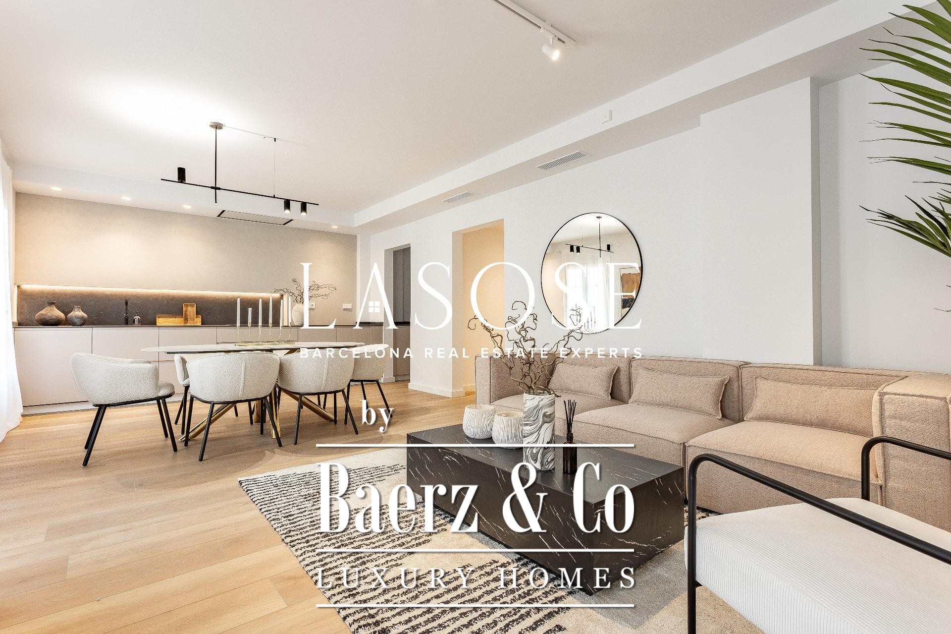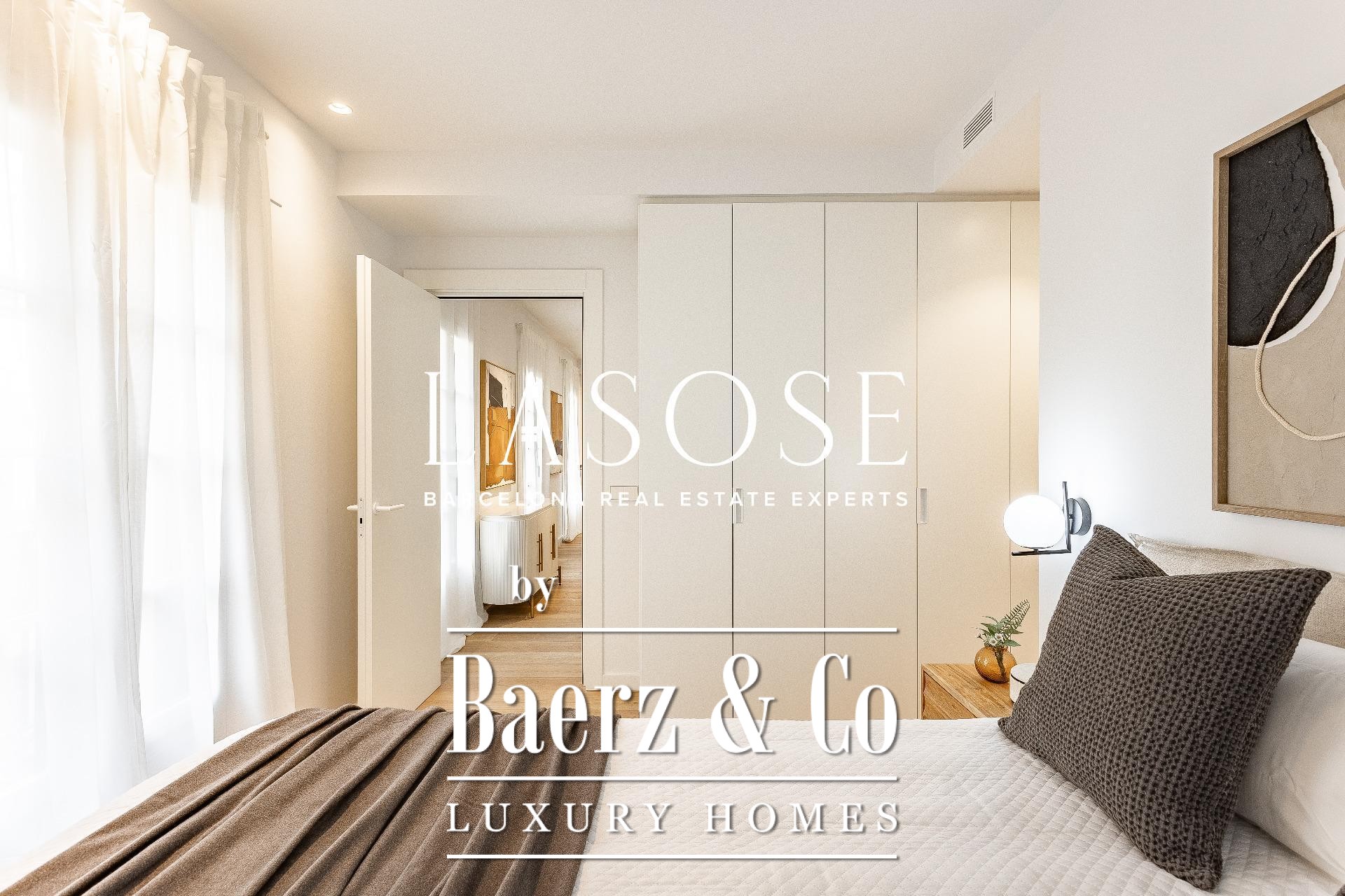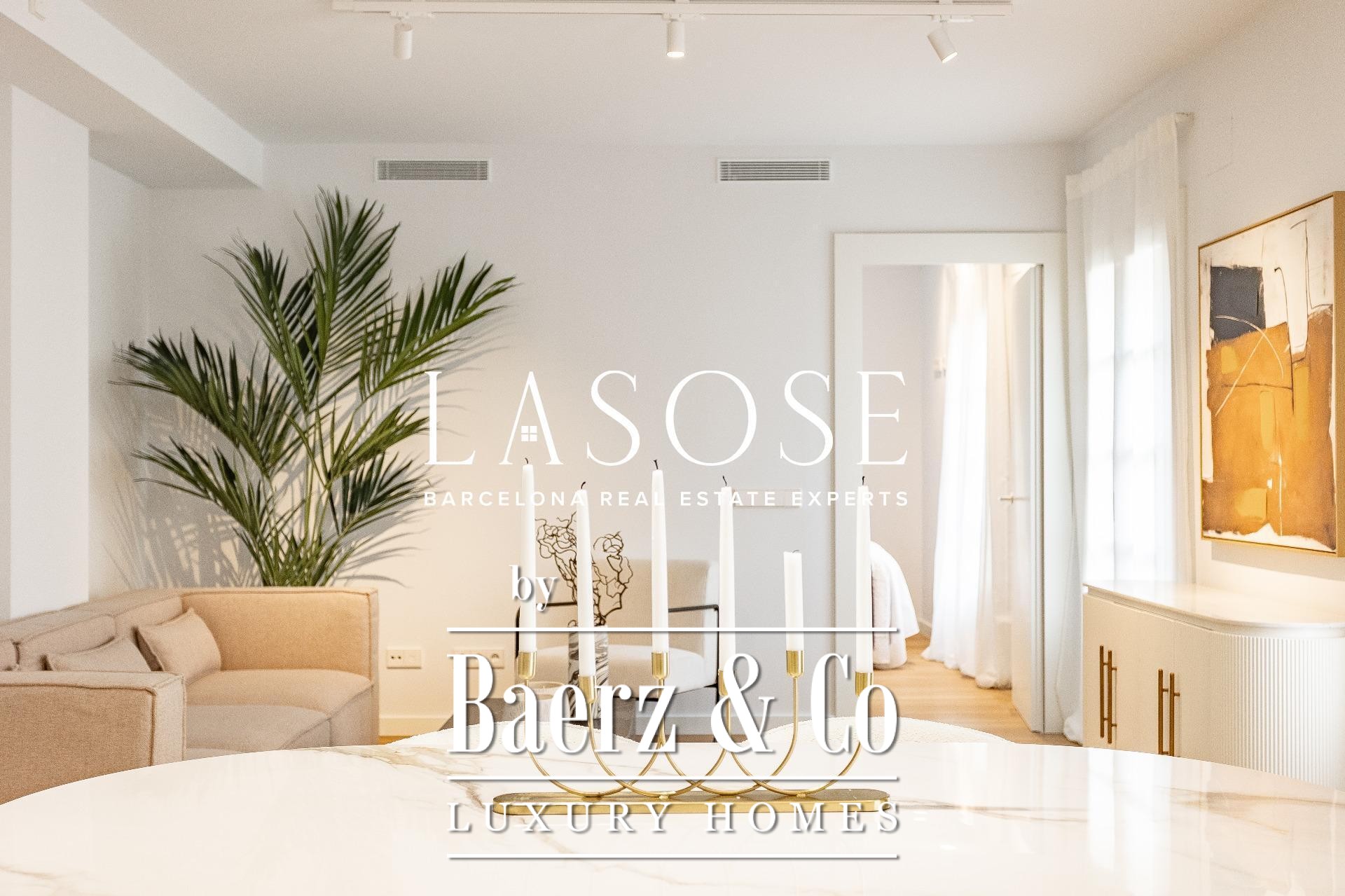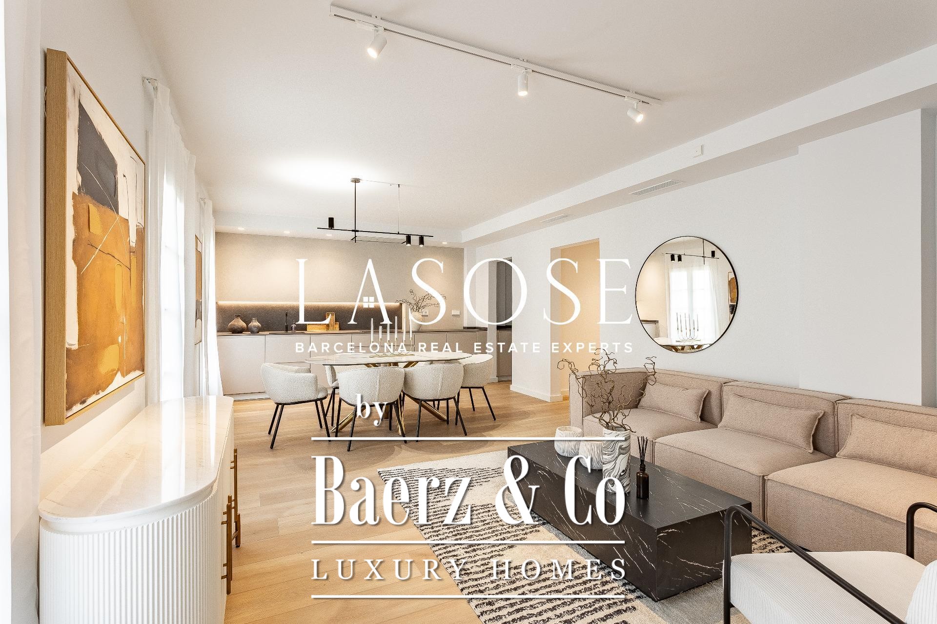 Apartment Barcelona biedt een uitnodiging tot stedelijke verfijning in het hart van de stad, gelegen aan de Tallersstraat, op slechts enkele momenten van Plaza Catalunya. Deze volledig gerenoveerde woning beslaat 108 m² zorgvuldig ingedeelde leefruimte, waar drie ruime slaapkamers en twee badkamers naadloos samenkomen met open, lichte interieurs. Het ontwerp kenmerkt zich door ingetogen, hedendaagse lijnen en een functionele indeling, waarbij originele architectonische details behouden zijn gebleven die het erfgoed van het gebouw benadrukken.