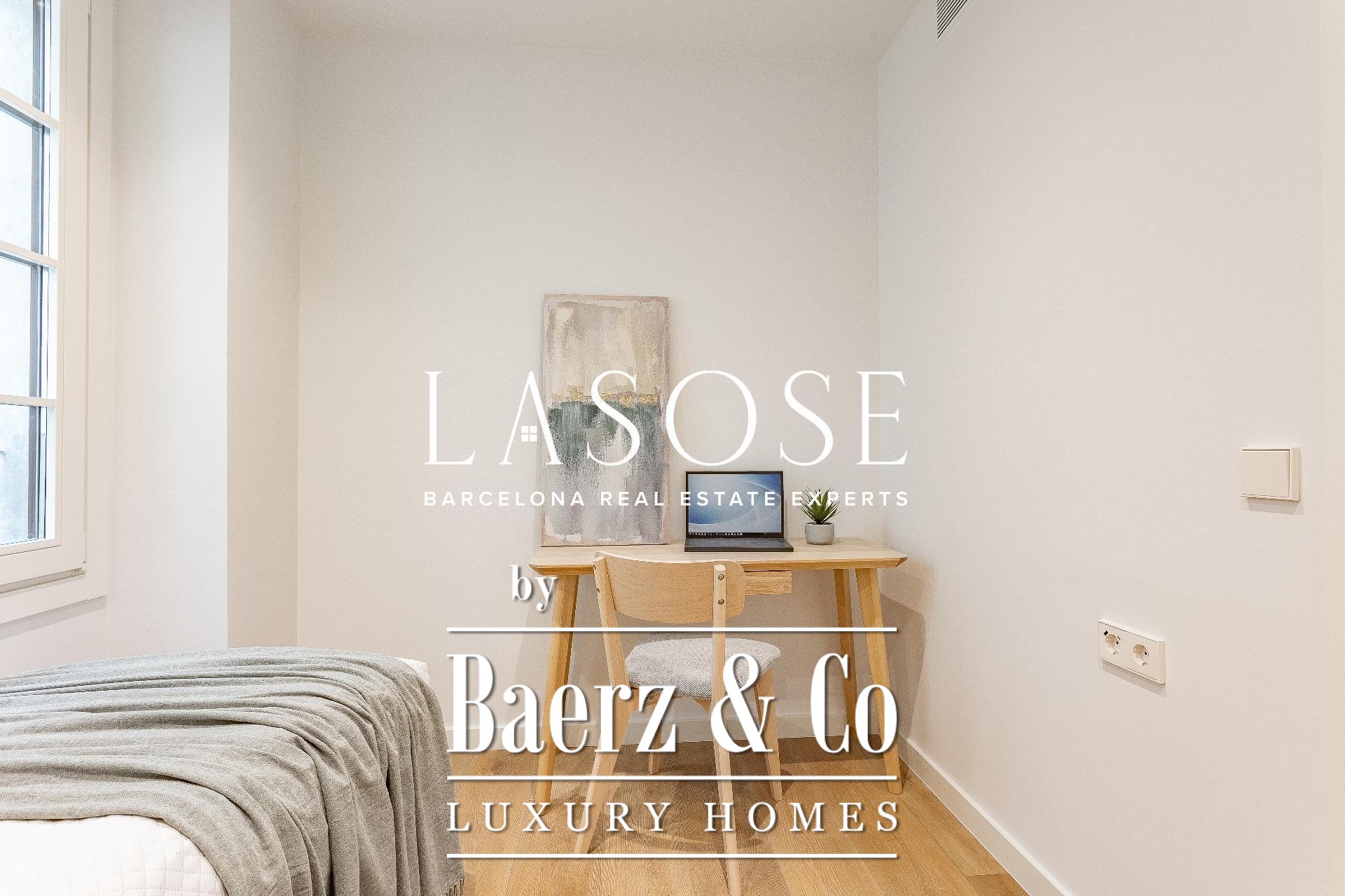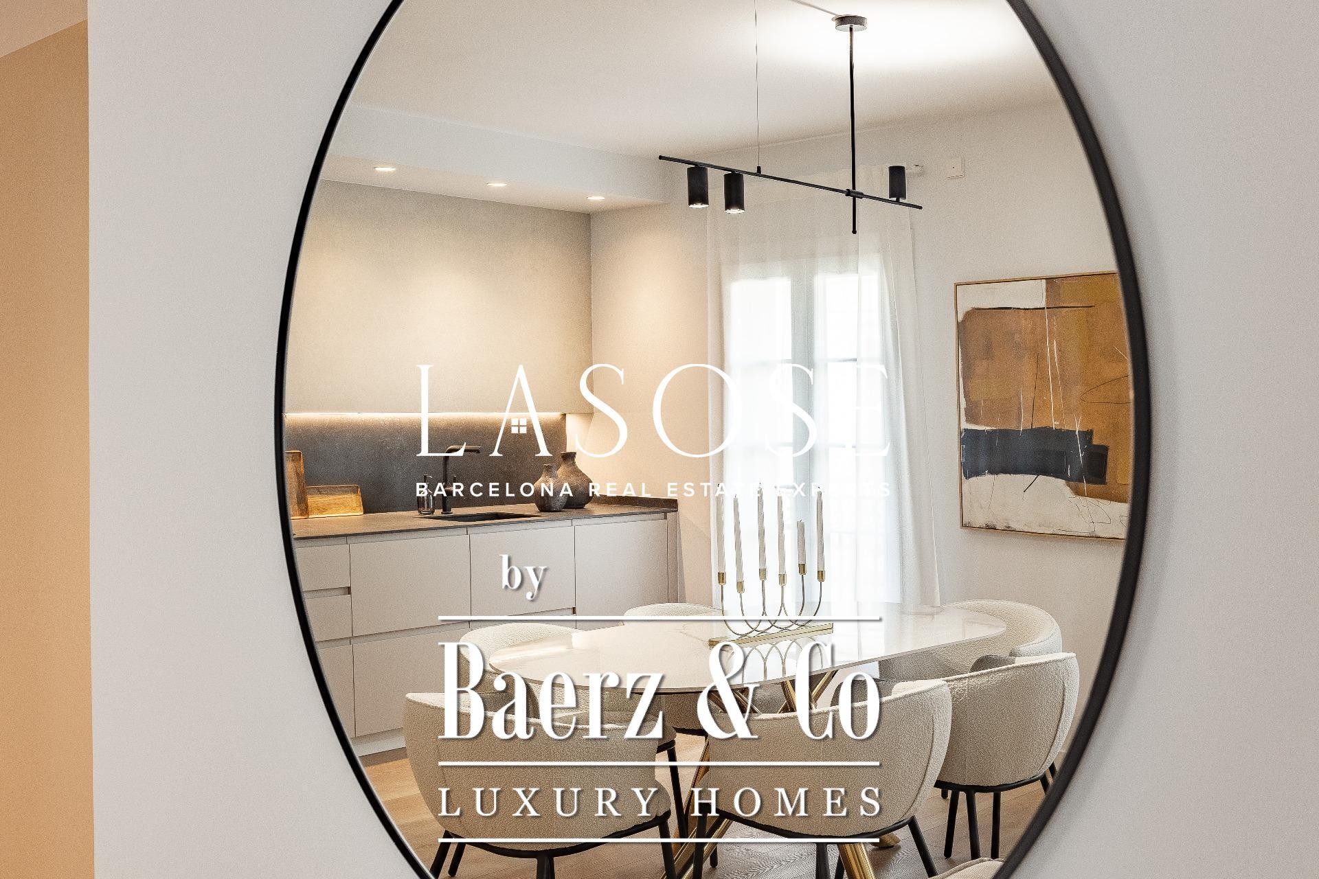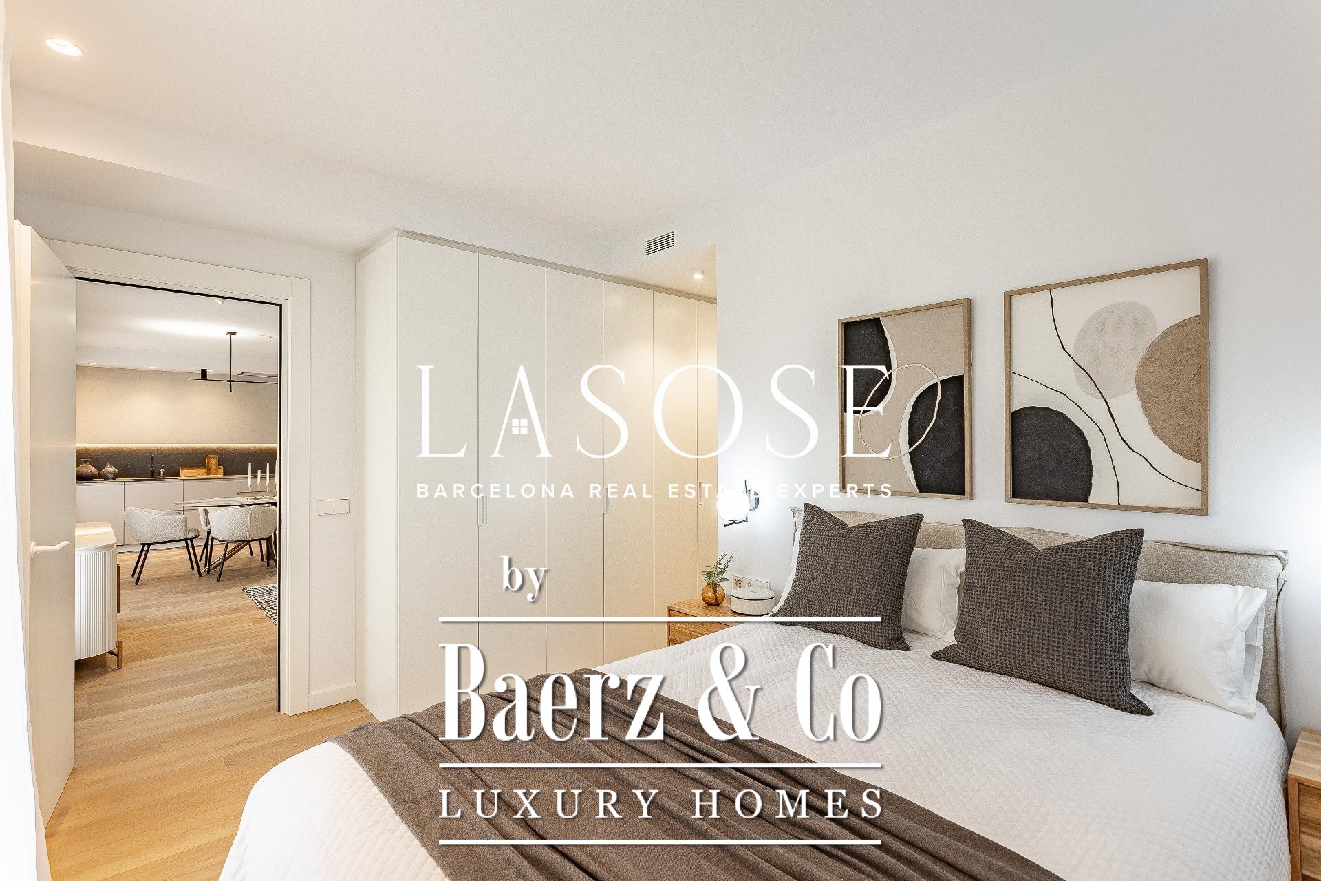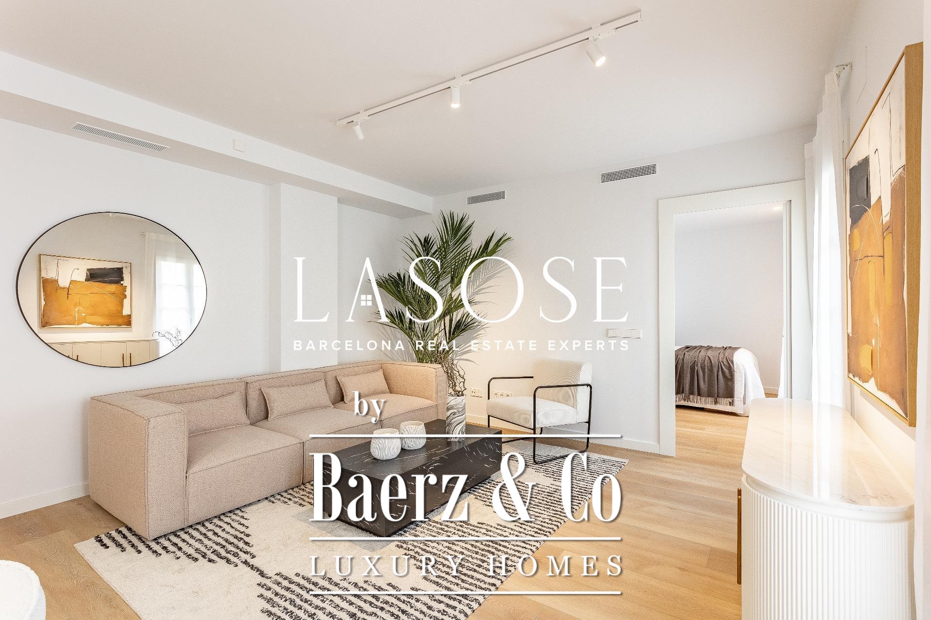 Apartment Barcelona biedt een uitnodiging tot stedelijke verfijning in het hart van de stad, gelegen aan de Tallersstraat, op slechts enkele momenten van Plaza Catalunya. Deze volledig gerenoveerde woning beslaat 108 m² zorgvuldig ingedeelde leefruimte, waar drie ruime slaapkamers en twee badkamers naadloos samenkomen met open, lichte interieurs. Het ontwerp kenmerkt zich door ingetogen, hedendaagse lijnen en een functionele indeling, waarbij originele architectonische details behouden zijn gebleven die het erfgoed van het gebouw benadrukken.