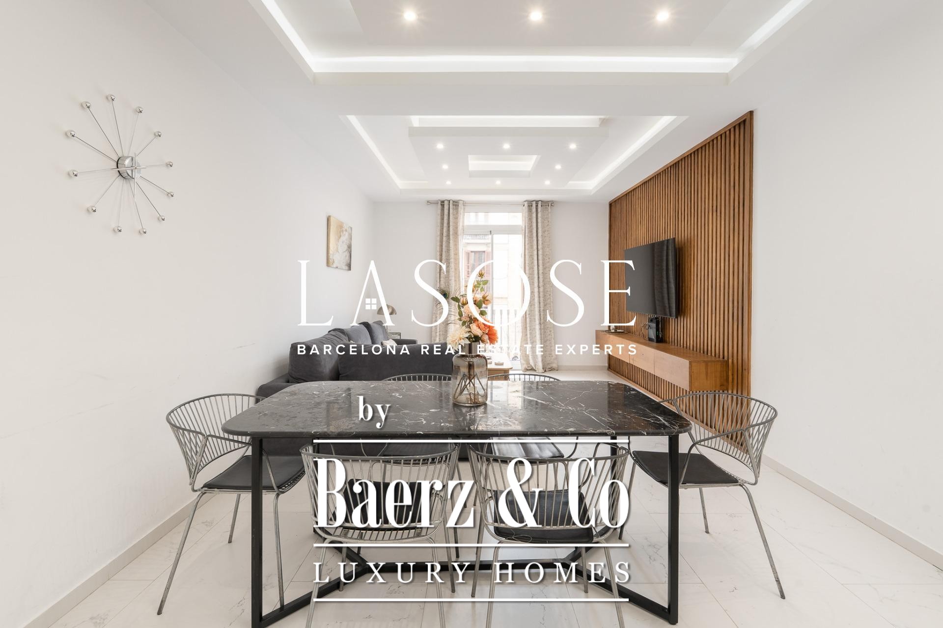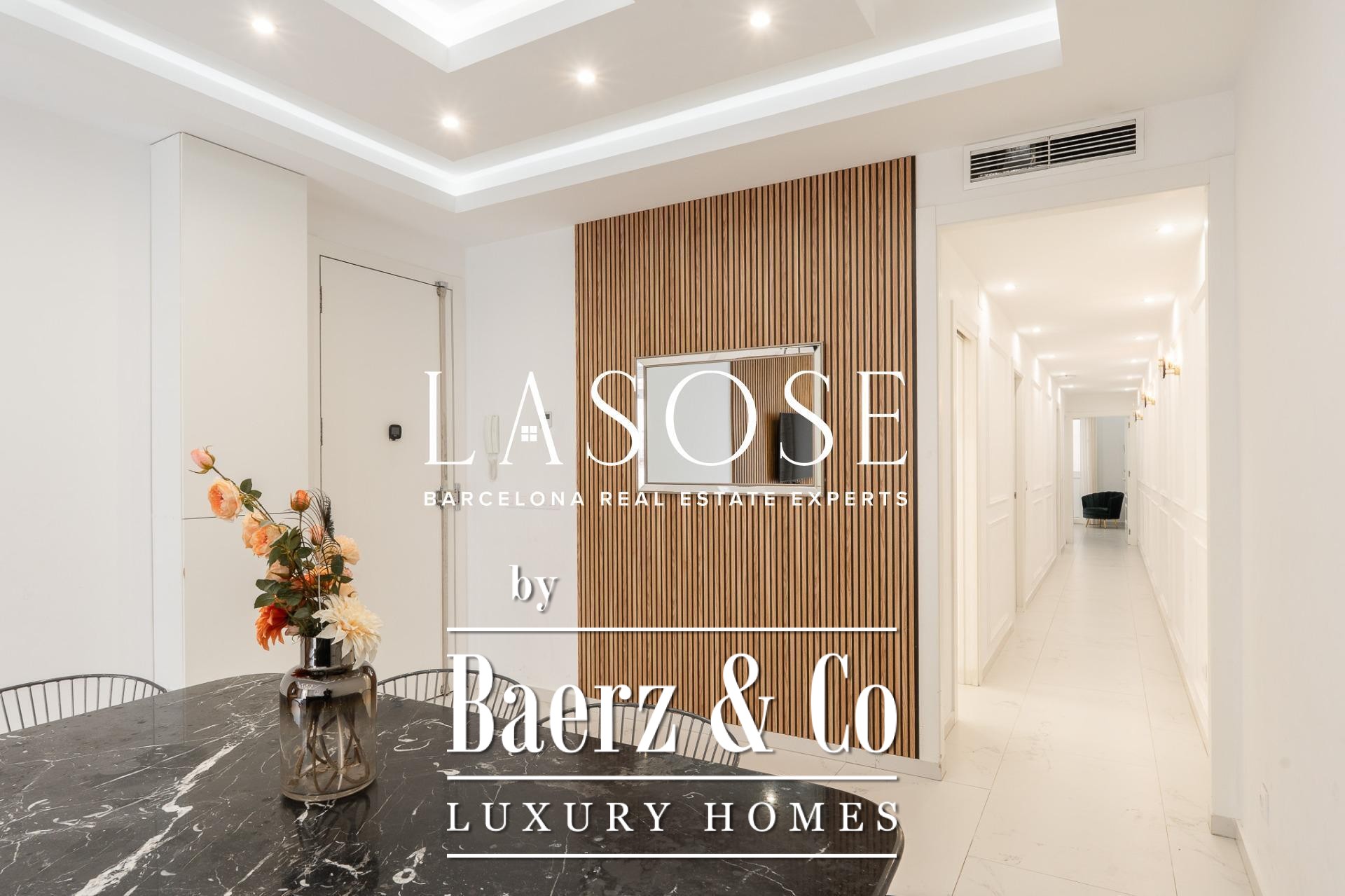 Appartement Barcelona Eixample Esquerra onderscheidt zich door zijn adres aan een exclusieve straat in het hart van de Consell de Cent. Deze woning van 109 m² is in 2022 gerenoveerd, waarbij hedendaags design samenkomt met verfijnd vakmanschap en hoogwaardige materialen. De zuidelijke oriëntatie zorgt ervoor dat daglicht elk hoekje bereikt en de elegante texturen en open ruimtes subtiel tot hun recht komen.