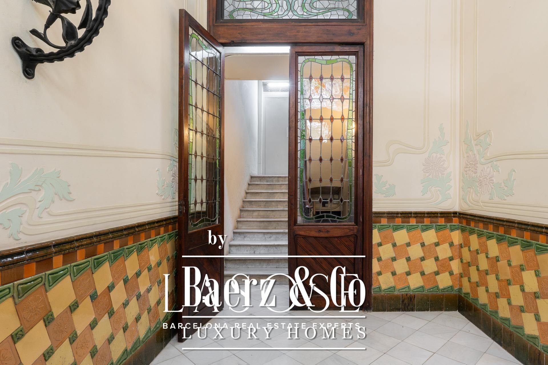 room, ideal for entertaining guests or enjoying with family. The high ceilings provide a sense of spaciousness and brightness, while the semi-open kitchen allows natural light to flow throughout all areas. From here, there is direct access to the 60 sqm terrace, with lush greenery and south-facing orientation, making this outdoor area a natural extension of the interior. A serene spot overlooking a quiet courtyard: the perfect place to escape the hectic rhythm of the city.. . Eixample is one of the most sought-after districts in Barcelona, making the location ideal for both a first or second residence. Having such a spacious and private outdoor area is a real privilege today, allowing you to enjoy the sun and Mediterranean climate at any time.. . In short, this property perfectly combines the best of modernist architecture with the comfort of a contemporary home. Original ceiling mouldings, exposed brick walls, mosaic hydraulic tiles, and Catalan vaulted ceilings are some of the period features that make this apartment truly one of a kind in Barcelona.