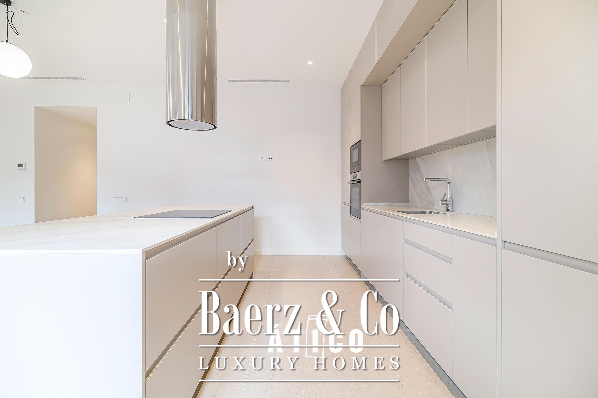 De keuken is ontworpen met oog voor organisatie en praktisch gebruik, waarbij slimme opbergruimtes samengaan met ingetogen stijl. De aandacht voor detail is zichtbaar in elk afwerkingsniveau, van vloer tot maatwerk in hout, en staat garant voor directe instapbaarheid en blijvende kwaliteit. De materiaalkeuze in het hele appartement weerspiegelt een toewijding aan vakmanschap en duurzaamheid.