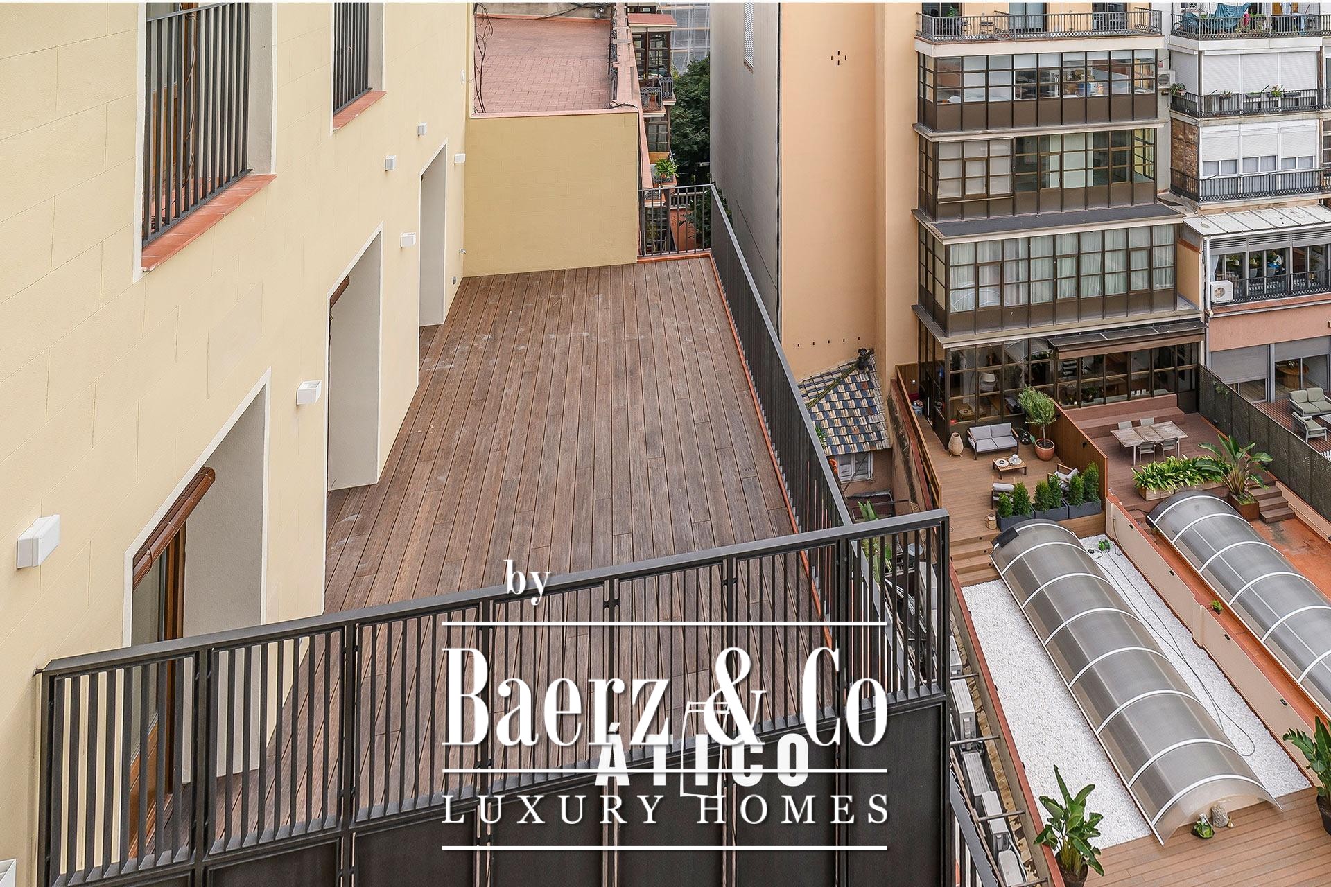 Dit penthouse is gelegen in een prestigieus gebouw en biedt toegang tot meer nieuwe penthouses, elk voorzien van een eigen terras. Wonen in de Golden Square betekent directe toegang tot het bruisende Barcelona, met haar culinaire bestemmingen, winkels en culturele instellingen. De locatie biedt comfort en verbondenheid, maar waarborgt tegelijkertijd privacy en rust, waardoor het uitermate geschikt is voor wie waarde hecht aan zowel levendigheid als sereniteit.