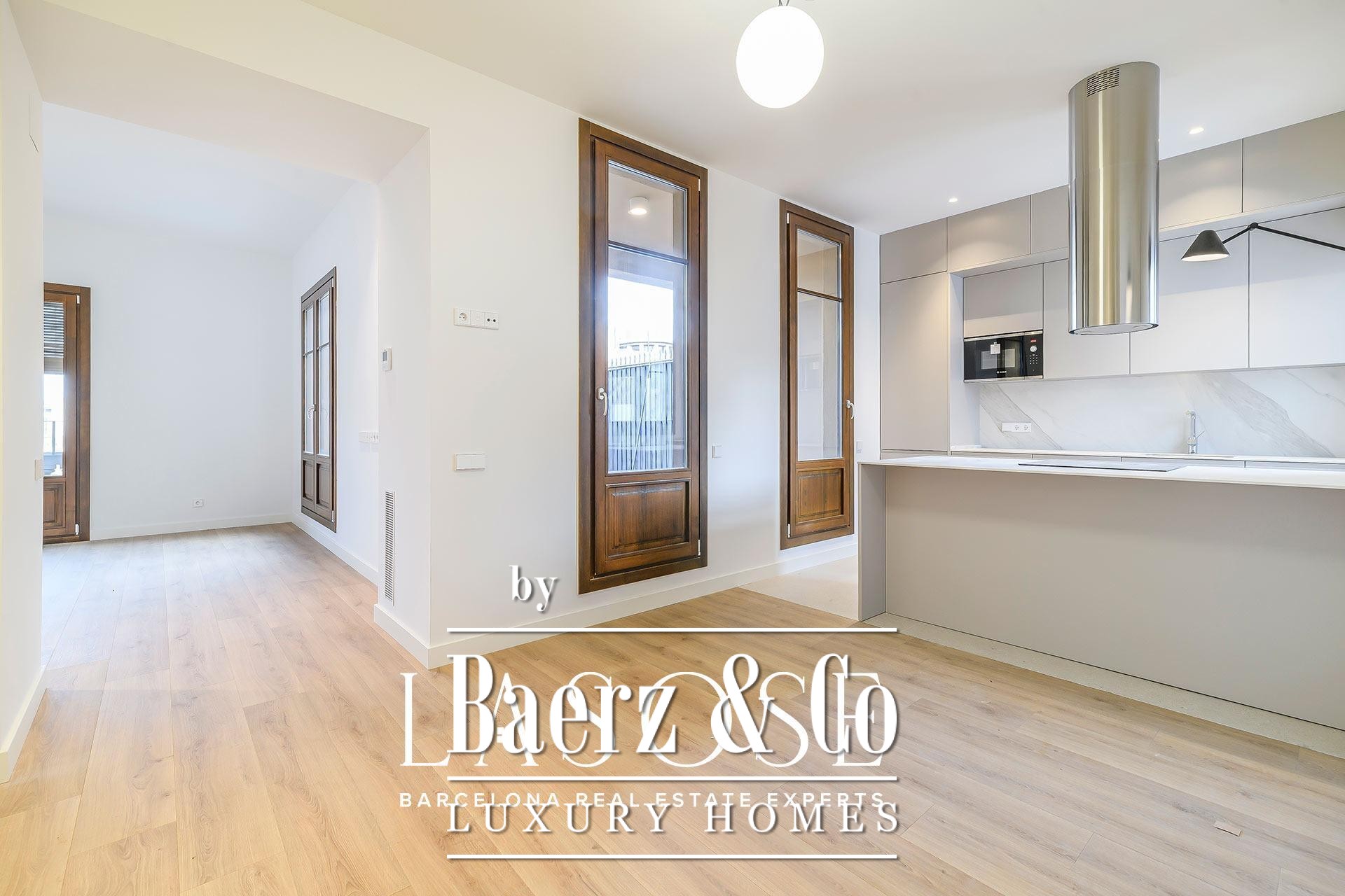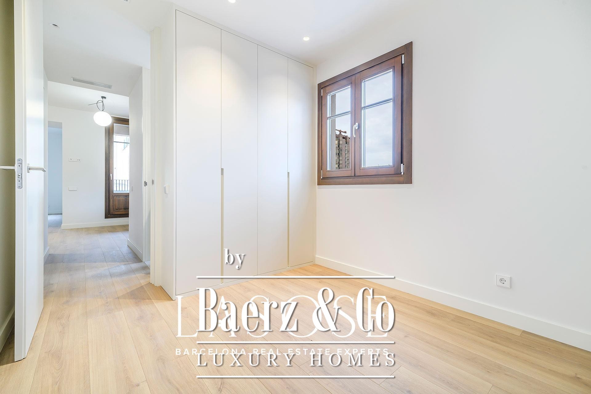 Elke woning is tot in detail gerenoveerd en biedt op 110 m² een uniek gevoel van ruimte, versterkt door indrukwekkend hoge plafonds en een overvloed aan natuurlijk licht. De zorgvuldig ontworpen indelingen omvatten twee slaapkamers en twee badkamers, waarmee functionaliteit en comfort naar een hoger niveau worden getild. Hoogwaardige afwerkingen en performante kozijnen waarborgen blijvende rust. Privéterrassen bieden meeslepend uitzicht op Eixample en vormen een zeldzaam stedelijk toevluchtsoord, ideaal voor het mediterrane klimaat.