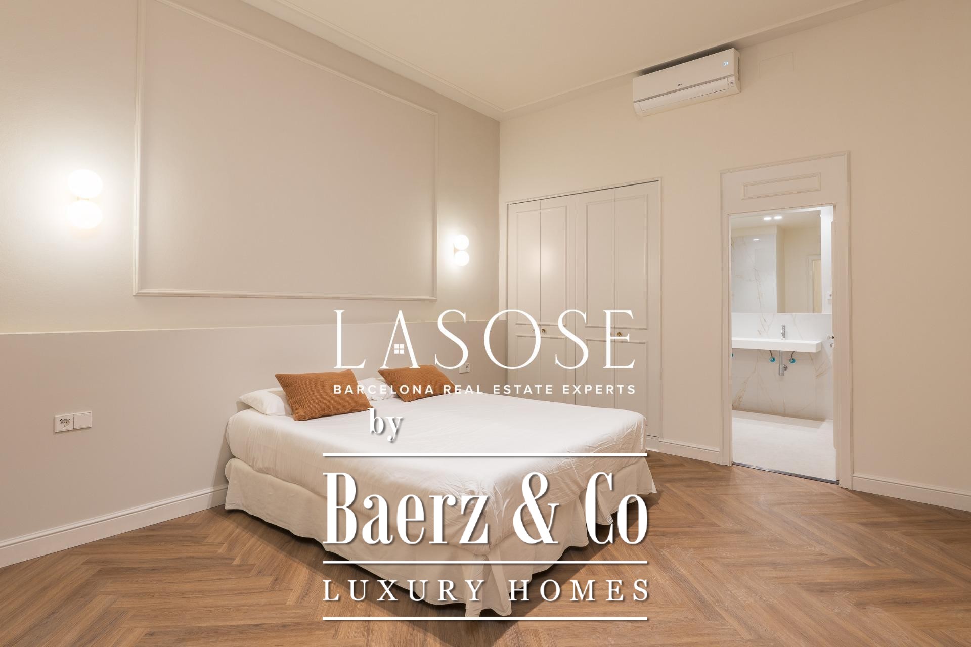 Appartement Barcelona bereikt een nieuwe betekenis in deze uitzonderlijke residentie van 118 m², gelegen in een nauwgezet gerenoveerd historisch pand uit 1850 dat nu als Lokaal Erfgoed is aangemerkt. De woning vormt een zeldzame balans tussen het behouden architecturale karakter en de eisen van hedendaagse luxe. Zodra u binnenkomt, ervaart u direct een gevoel van ruimte en verfijning, dankzij de open woon- en eetkamer die baadt in natuurlijk licht via royale ramen aan de zijde van de Paseo Isabel II. Designmeubilair en hoogwaardige afwerkingen verrijken iedere beleving.