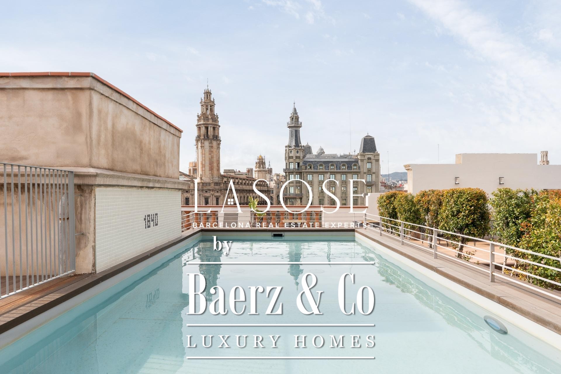 Bewoners genieten van voorzieningen zoals een dakterras met zwembad, panoramisch zeezicht en conciërgeservice. Door de ligging in de wijk La Ribera bent u op korte afstand van de kustlijn van Barcelona, Port Vell en exclusieve winkelbestemmingen, allemaal eenvoudig bereikbaar via het efficiënte openbaar vervoer. Deze instapklare woning biedt een overtuigende kans voor liefhebbers van geïntegreerd design, privacy en toegang tot het beste van het stadsleven.