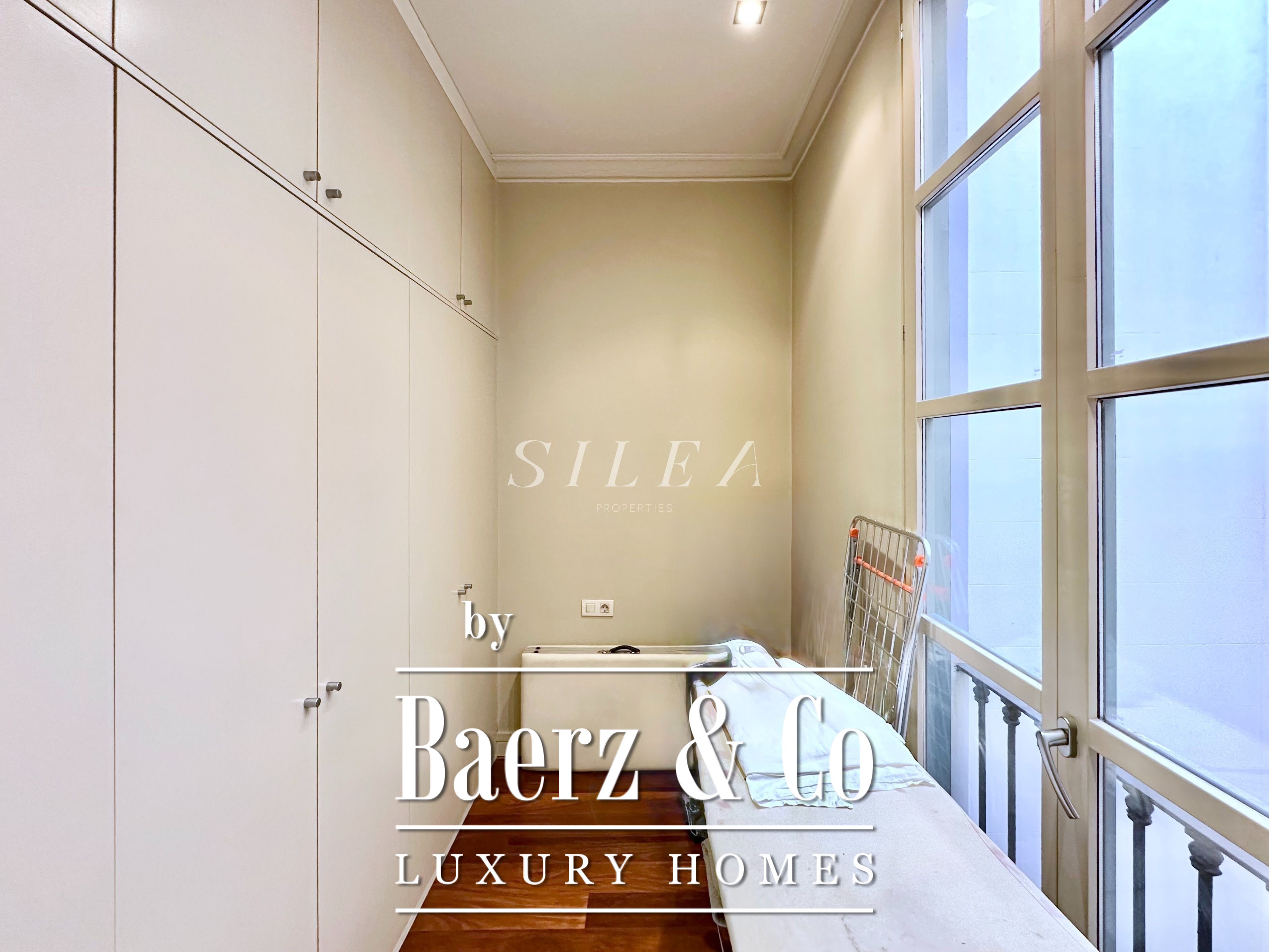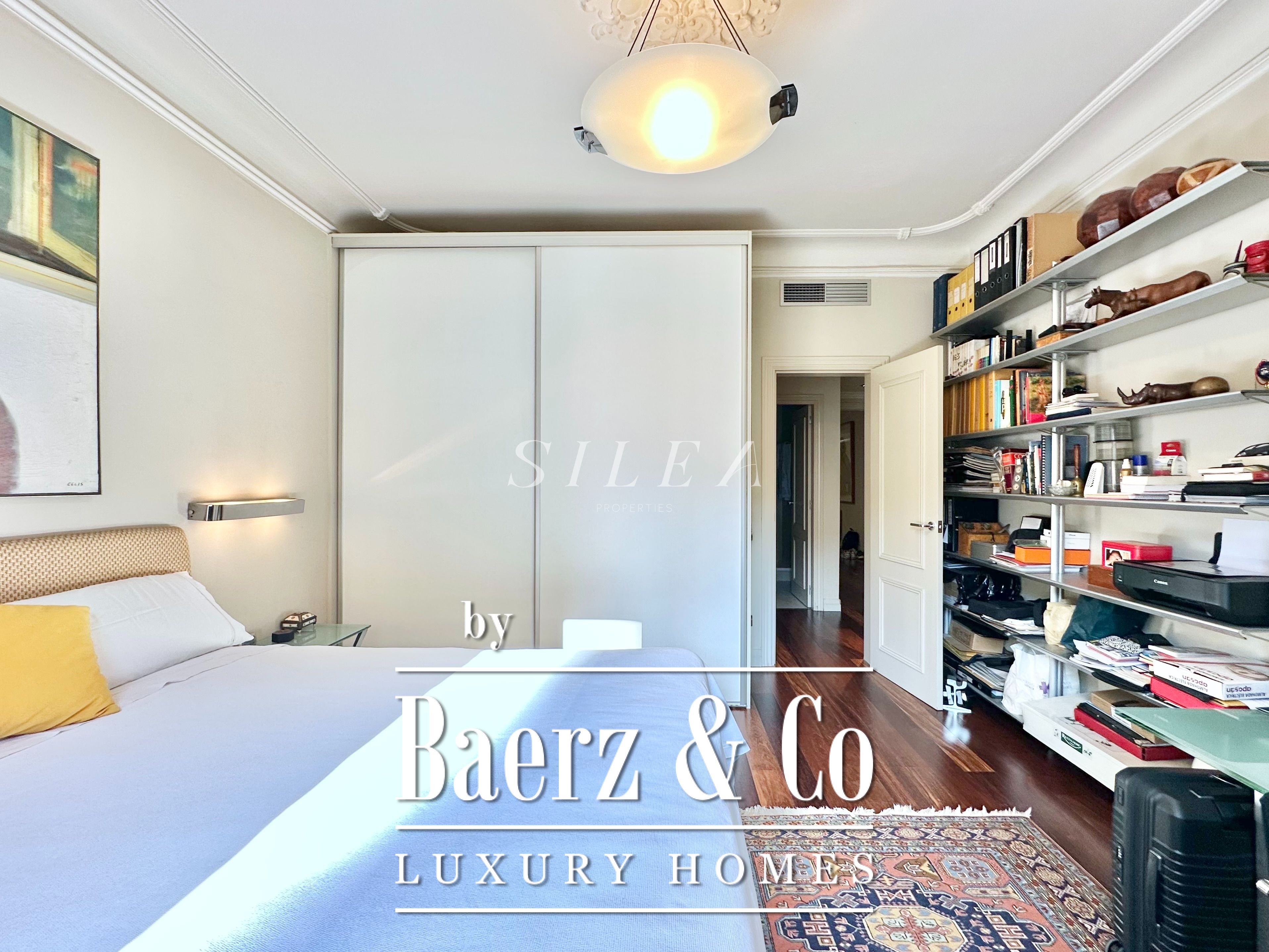 Met een totaaloppervlak van 258 m² en 228 m² aan bruikbare woonruimte, maakt het appartement indruk door de ruime opzet en prettige indeling. Hoge plafonds en grote ramen laten overvloedig daglicht binnen, terwijl originele parketvloeren en elegante verhoudingen zorgen voor een ingetogen gevoel van grandeur en rust. Twee royale woonkamers bieden ruimte voor stijlvol entertainen of juist voor een rustige terugtrekking, waarvan één met een Frans balkon dat uitzicht biedt op de statige gevels van het Eixample.