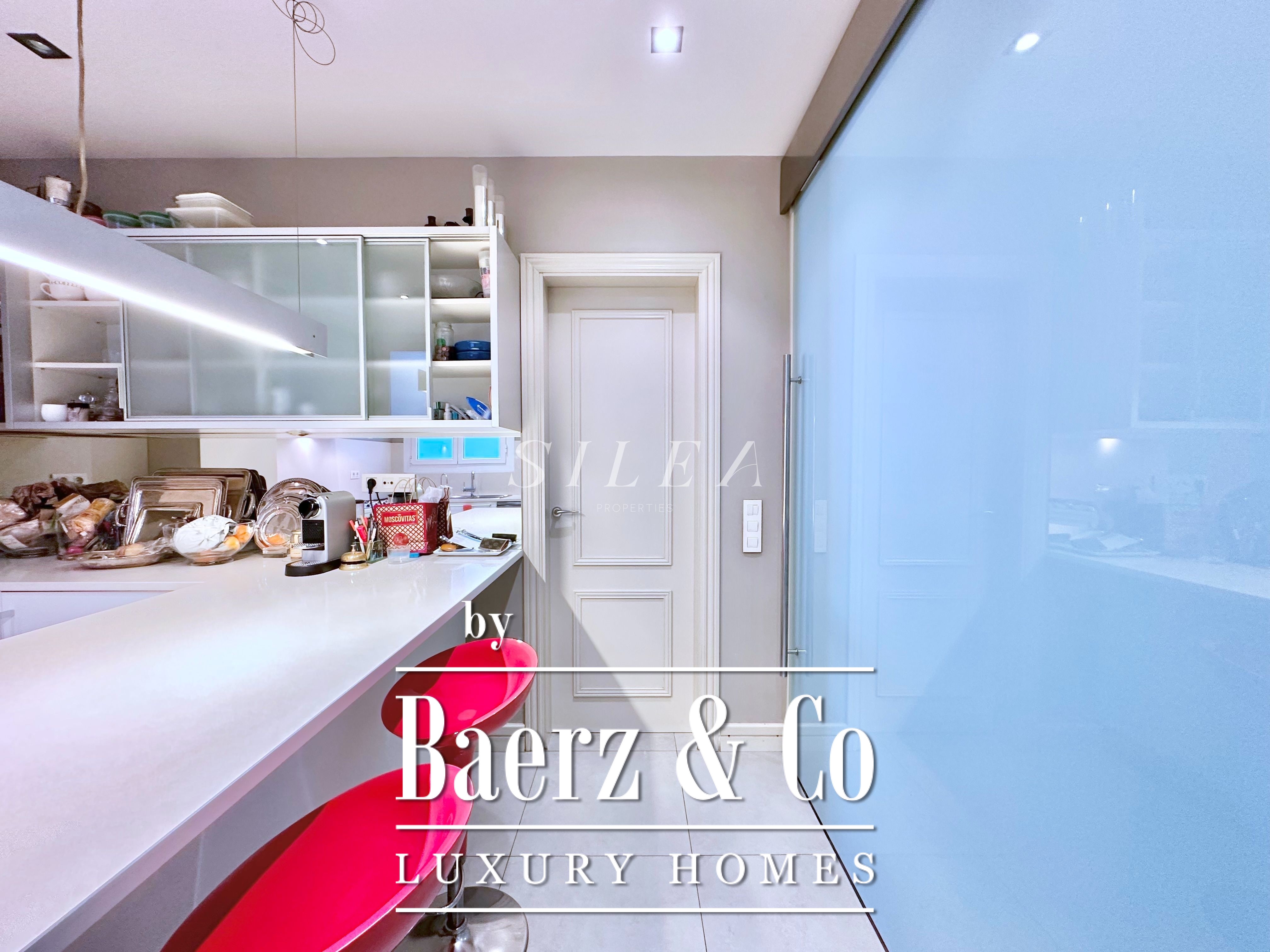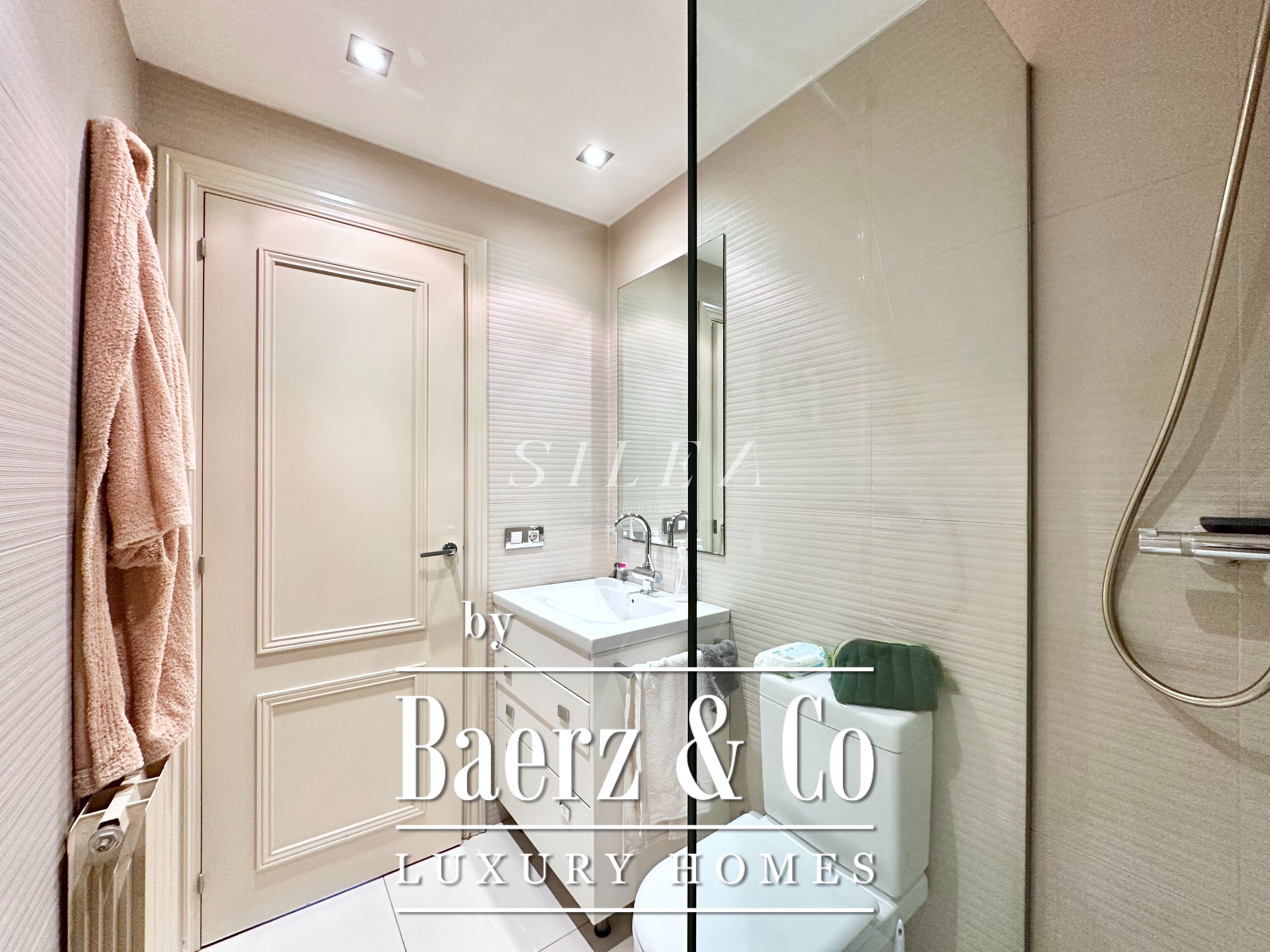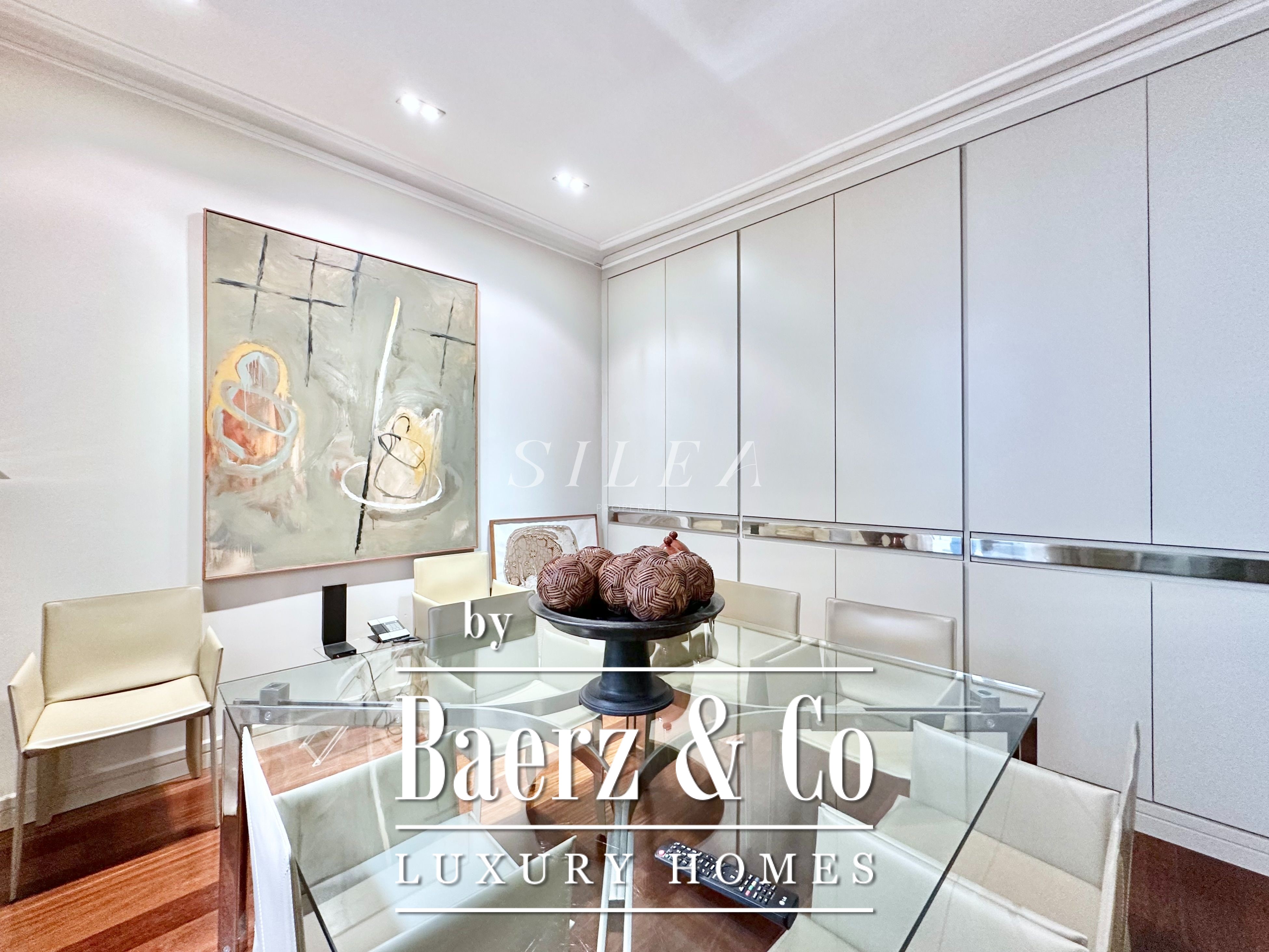 Het appartement beschikt over drie slaapkamers, waaronder twee ruime kamers met balkon en rijkelijke lichtinval. De derde kamer is flexibel inzetbaar als gastensuite, privéwerkkamer of bibliotheek. De aparte kantoorruimte verhoogt de veelzijdigheid voor werken of privégebruik. Drie complete badkamers bieden comfort en privacy in het hele appartement. De aparte keuken is volledig uitgerust en grenst aan een praktische wasruimte, waarbij functionaliteit hand in hand gaat met verfijnde lijnen.