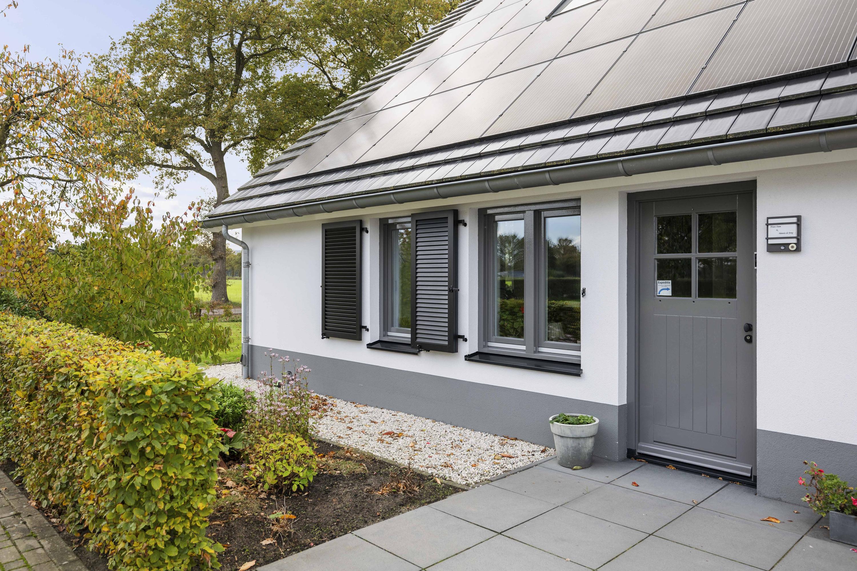 Deze magnifieke woonboerderij kreeg in 2016 haar huidige gestalte; toen werd de boerderij, die in 1924 gebouwd werd, van onder tot boven gerenoveerd. Hierbij lag de nadruk op verduurzaming; de buitenzijde werd volledig geïsoleerd met blokken styrofoam, rondom kreeg het huis nieuw HR+++-glas, er werd een water-water-warmtepomp aangelegd (die op 75 m diepte de warmte uitwisselt en ophaalt), de vloer binnen werd voorzien van een robuuste gietvloer – ideaal in combinatie met de vloerverwarming - en op de daken werden in totaal 110 (nee, dit is géén typfout) zonnepanelen gelegd. Onder de motorkap is dit huis één en al state-of-the-art technisch vernuft. Zelfs het kleurenpalet – de buitenzijde is wit gekeimd met grijs houtwerk en kraalrand – draagt bij aan het energiezuinige karakter van het huis, want waar de witte gevels het zonlicht reflecteren, absorbeert het grijs de warmte. Dit huis heeft niet alleen nul op de meter, het levert ook nog eens fiks terug! Een thuisbatterij is hier dus een prima aanvulling.