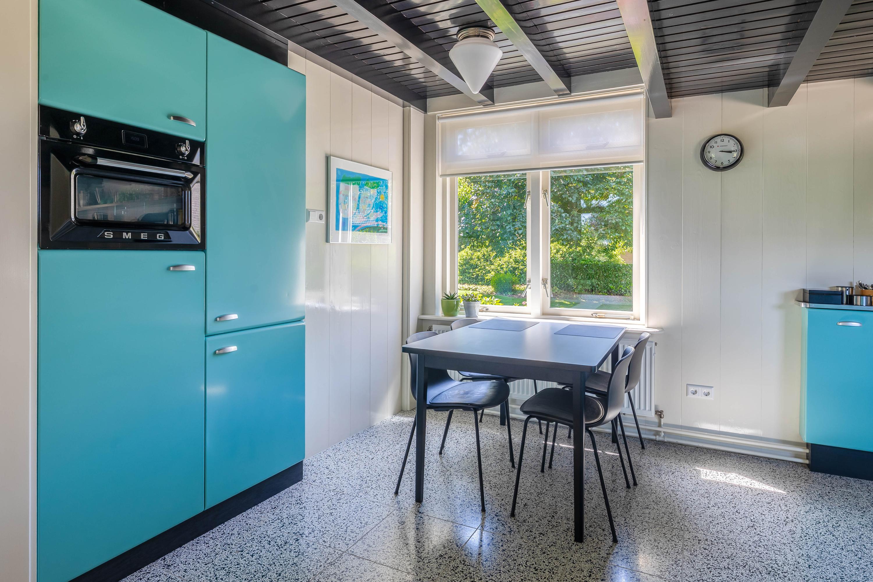Buiten is het een oase van rust. De tuin rondom is strak, groen en verzorgd aangelegd, met verschillende zitplekken, grote gazons, bomen, borders, moestuin en sfeervolle hoekjes. Dankzij de ligging van het perceel heb je geen directe buren, veel privacy en prachtige uitzichten over water en weiland. Het weiland aan de oostzijde mag niet meer bebouwd worden, waardoor je ook in de toekomst verzekerd bent van vrij uitzicht.