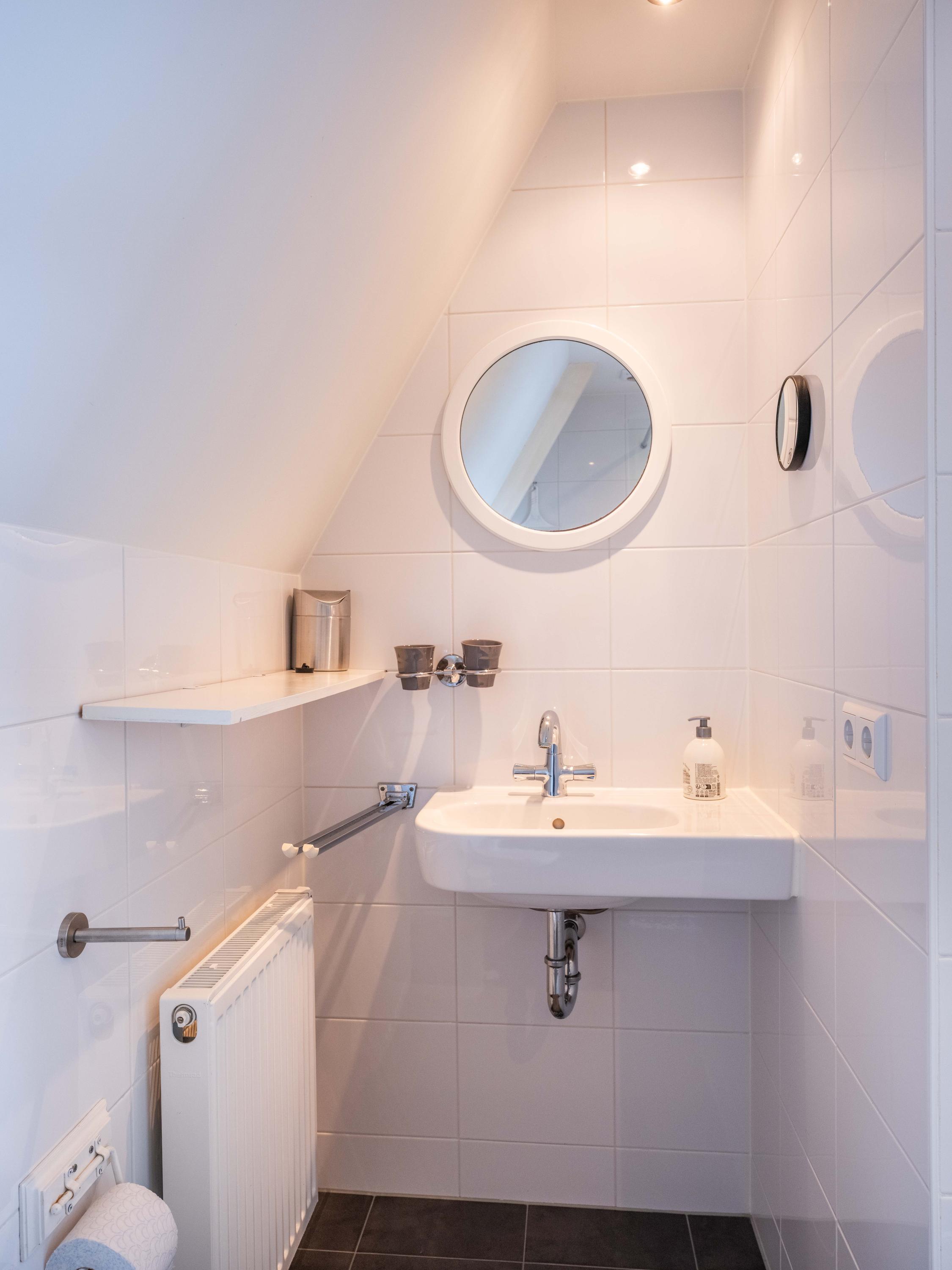De tweede verdieping is via een vaste trap bereikbaar en beschikt, dankzij een groot raam, over een ruime, lichte overloop. Op deze verdieping bevinden zich nog twee slaapkamers en een derde badkamer met douche, toilet, en wastafel.