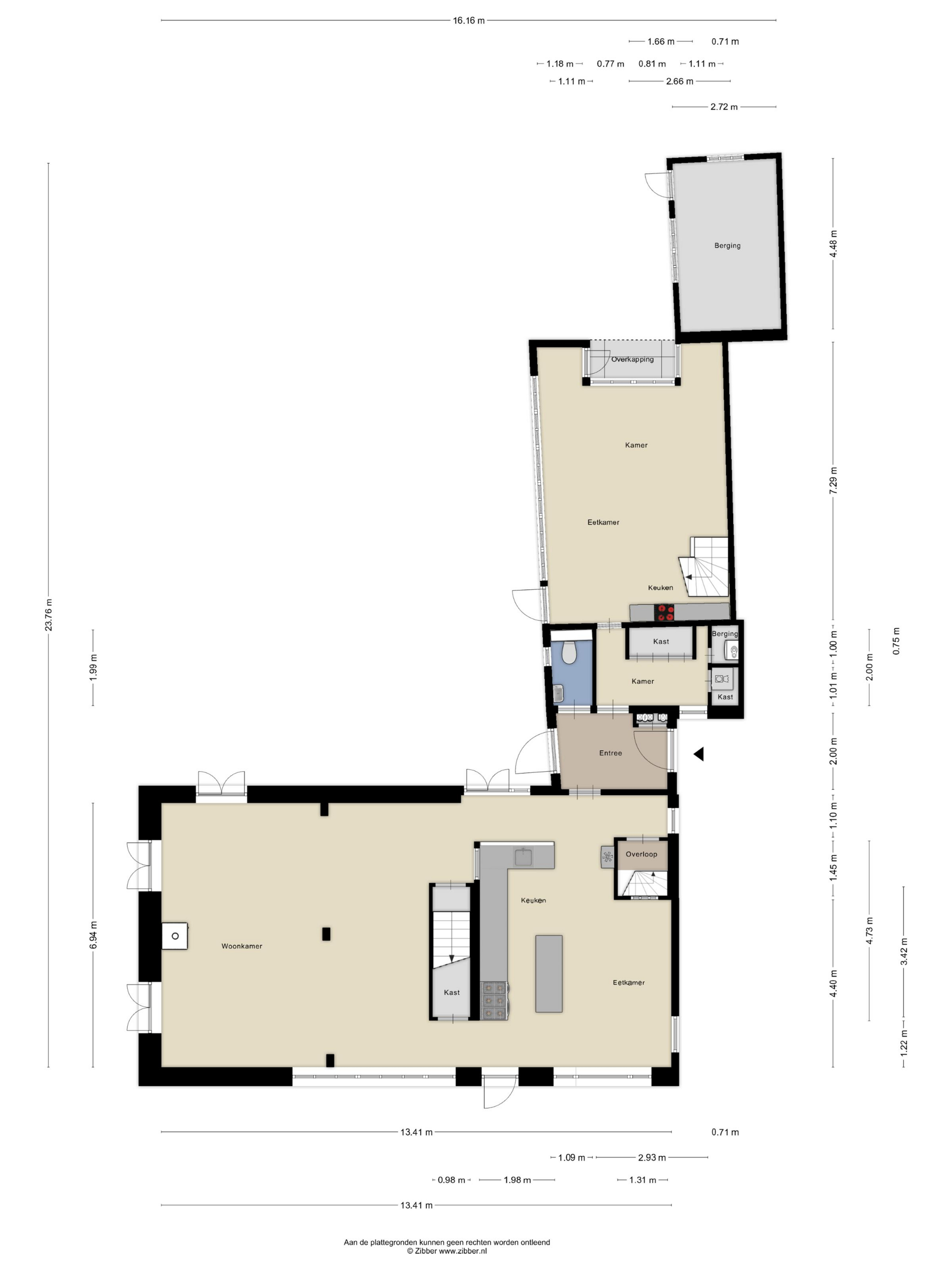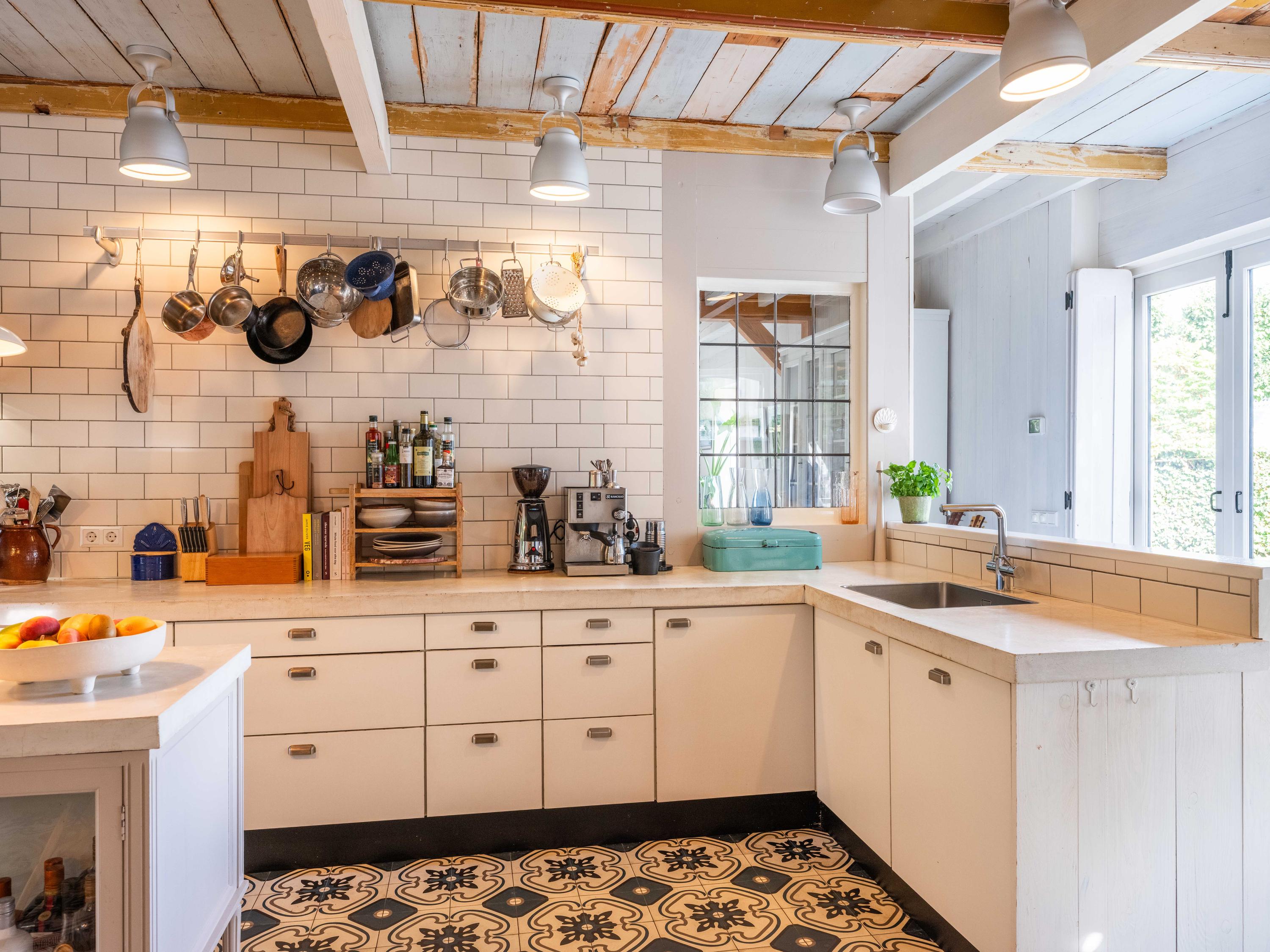Via de entree aan de Dorpsstraat komt u direct binnen in de royale woonkeuken. Deze open keuken is uitgerust met moderne inbouwapparatuur en een kookeiland en staat in verbinding met het eetgedeelte. Dankzij de grote raampartijen is dit een bijzonder lichte en aangename ruimte. Vanuit de keuken is er tevens toegang tot een kleine kelder, die extra bergruimte biedt.