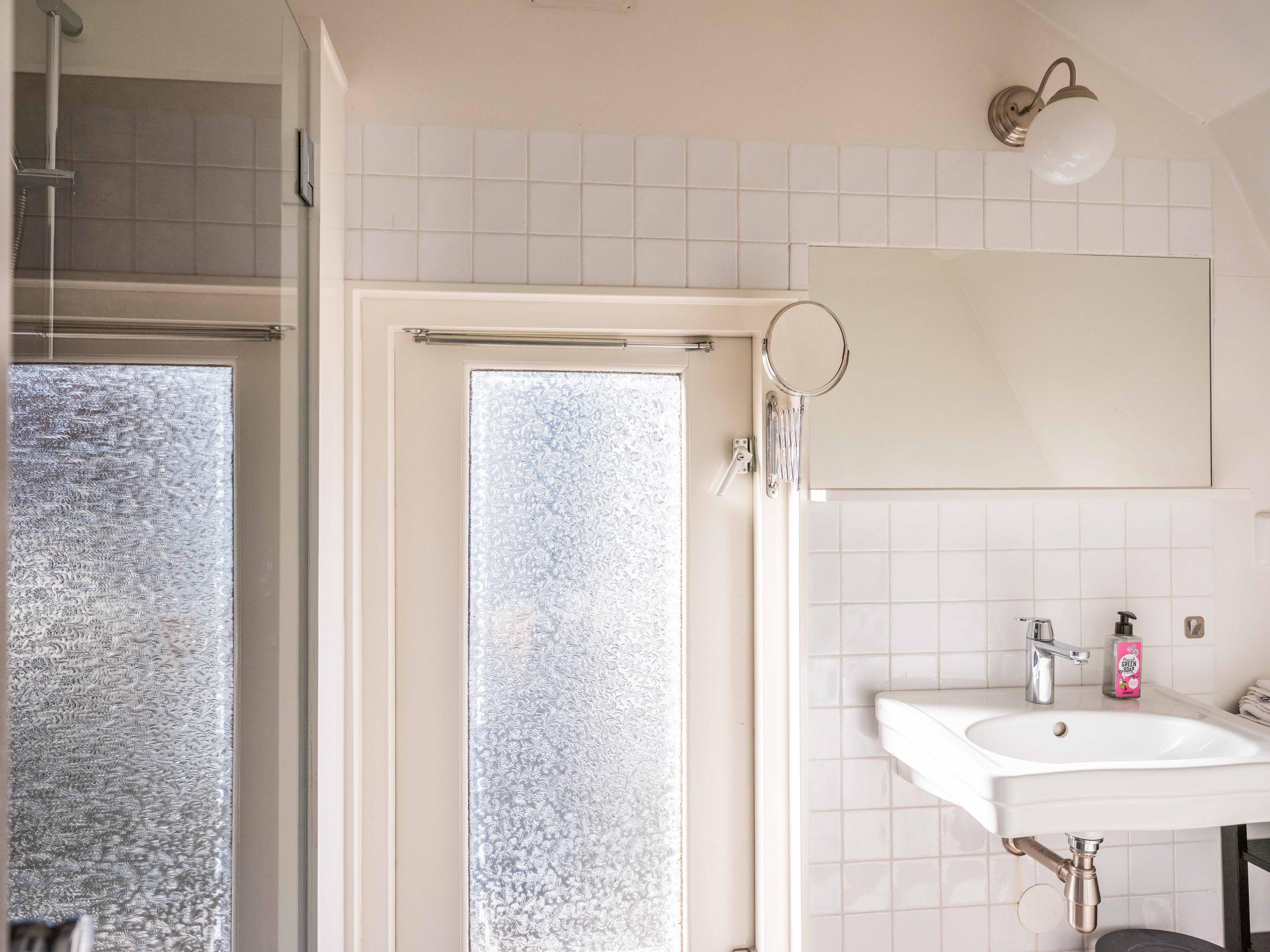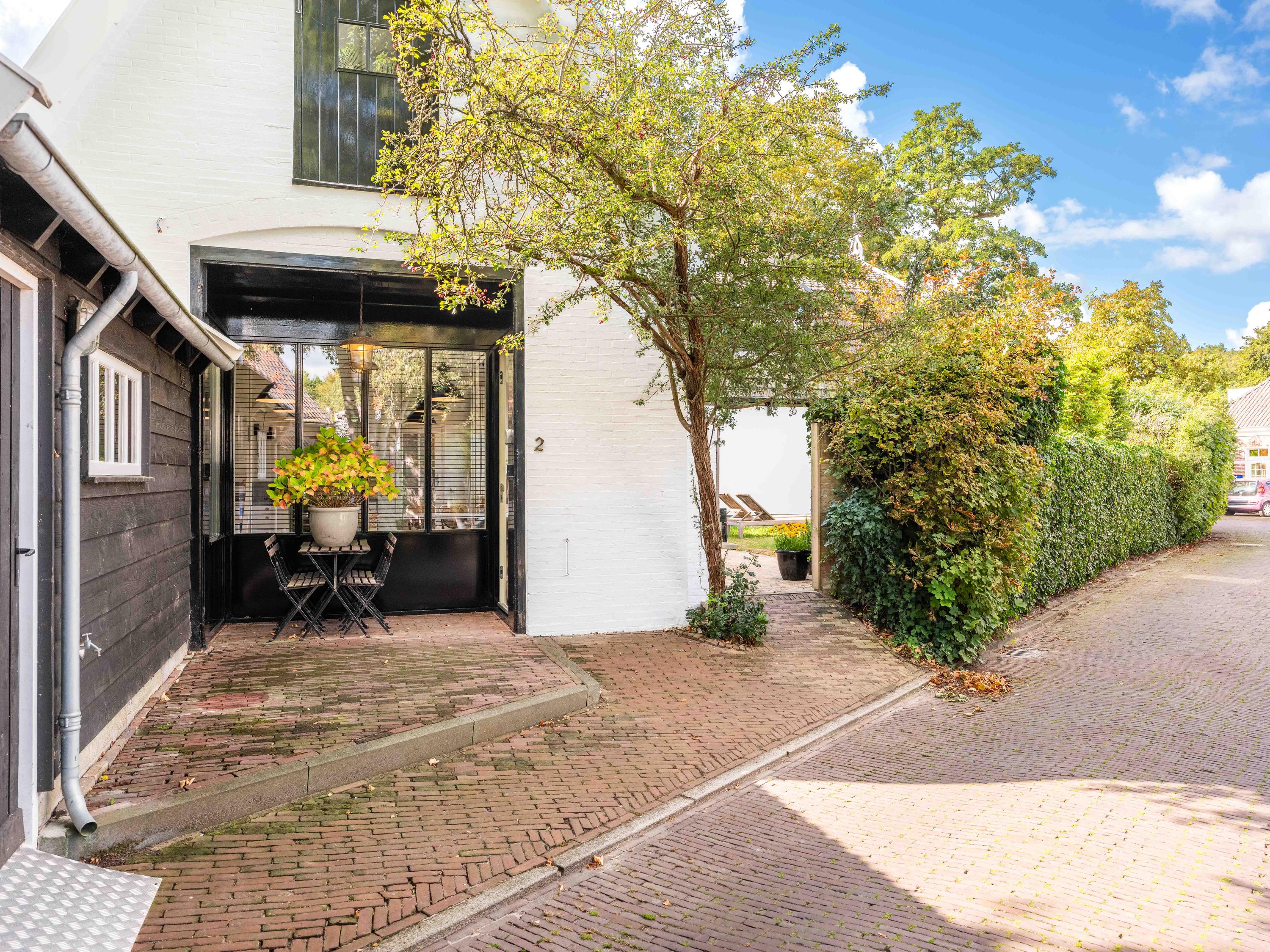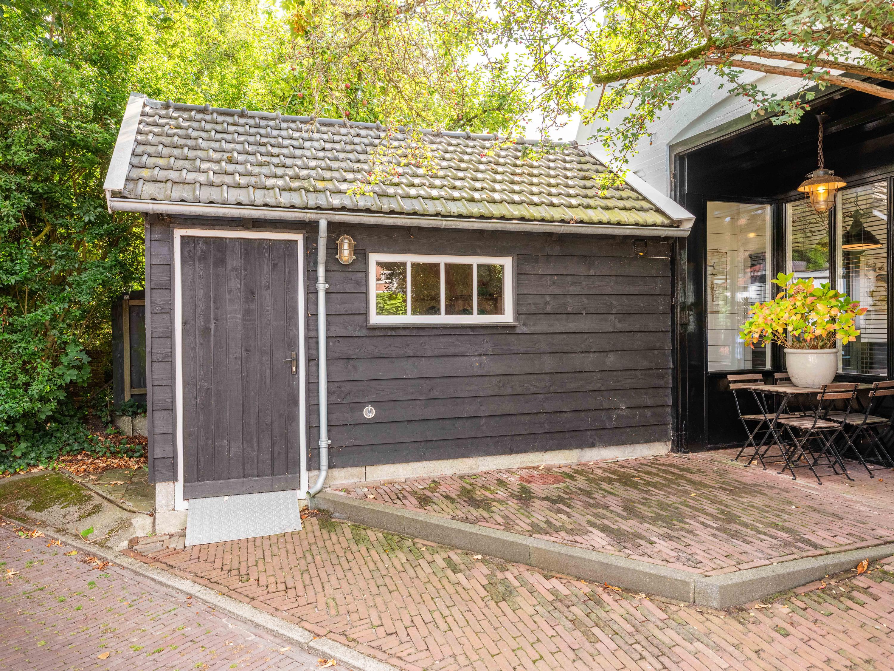 Aan de andere zijde van de woning bevindt zich het voormalige atelier, thans in gebruik als bijhuis met keukentje en slaapgelegenheid. Met ca. 80 m² vloeroppervlak en een eigen toegang is dit een heerlijk lichte ruimte, ideaal te gebruiken als atelier, kantoor aan huis, praktijkruimte of bijvoorbeeld als kangoeroewoning of verblijf voor een au-pair.