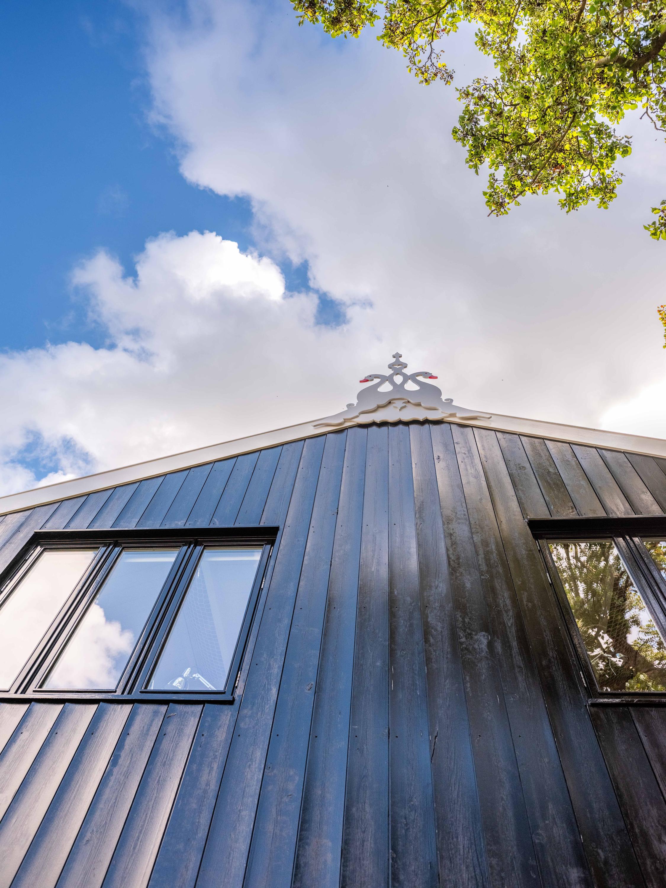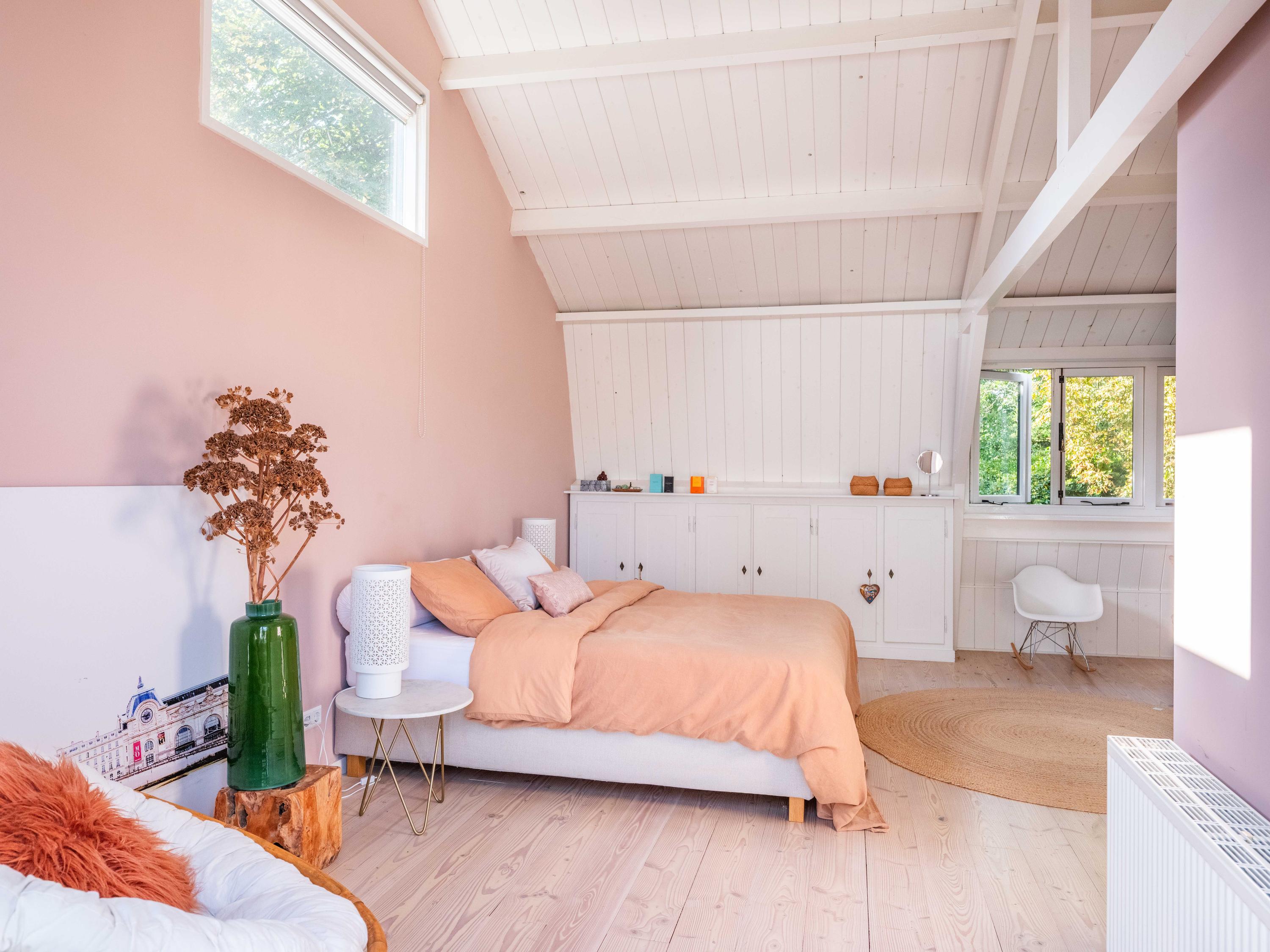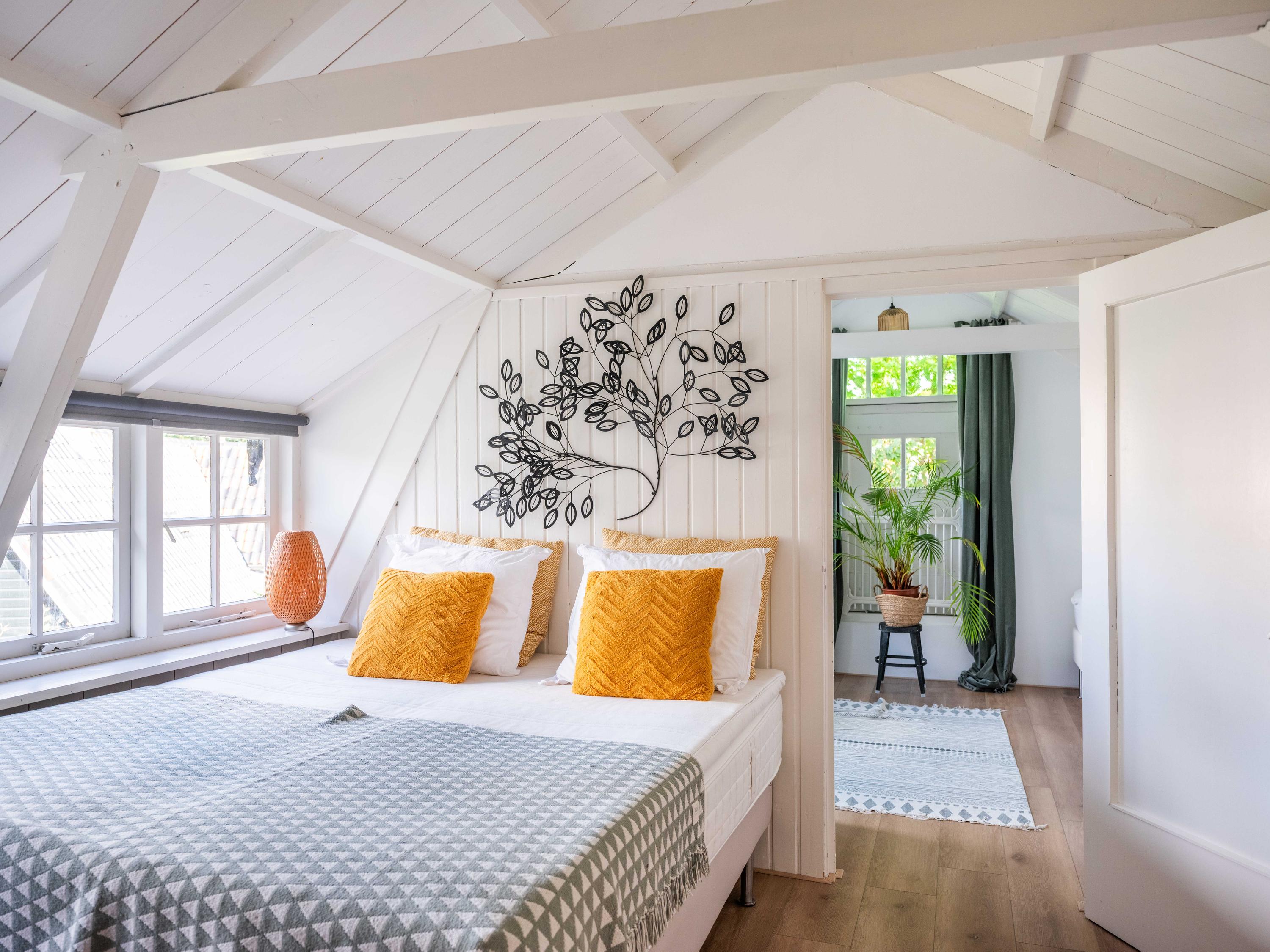 Aan de andere zijde van de woning bevindt zich het voormalige atelier, thans in gebruik als bijhuis met keukentje en slaapgelegenheid. Met ca. 80 m² vloeroppervlak en een eigen toegang is dit een heerlijk lichte ruimte, ideaal te gebruiken als atelier, kantoor aan huis, praktijkruimte of bijvoorbeeld als kangoeroewoning of verblijf voor een au-pair.