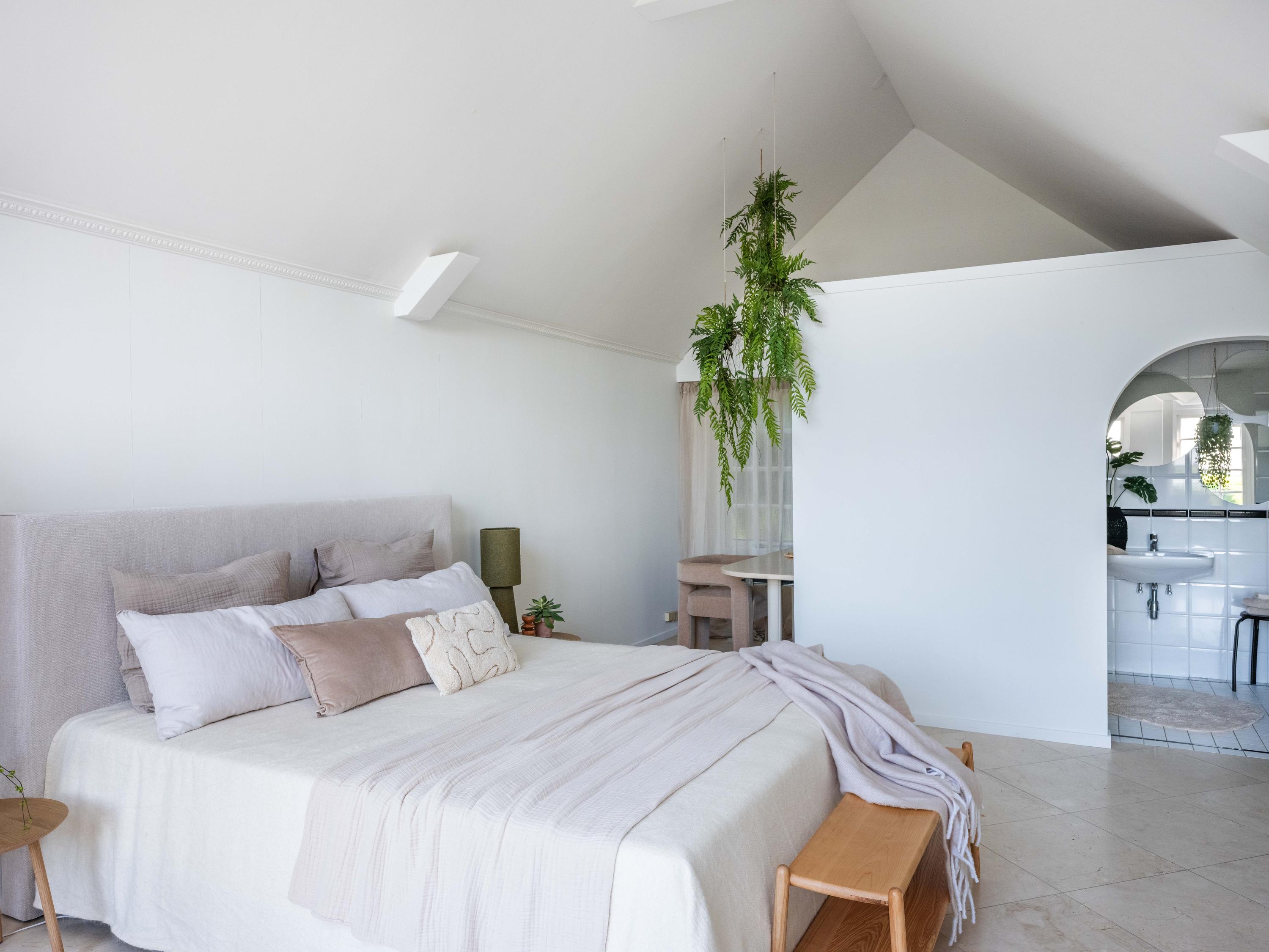 Op de eerste verdieping lopen we over de vide naar de slaapkamer. Deze kamer heeft vaste kasten en biedt toegang tot een ruim dakterras. Vanaf het terras weer een geweldig uitzicht. De badkamer op deze verdieping is verrassend ruim en modern (2018). Deze badkamer is voorzien van een ligbad, inloopdouche, dubbele wastafel en toilet.