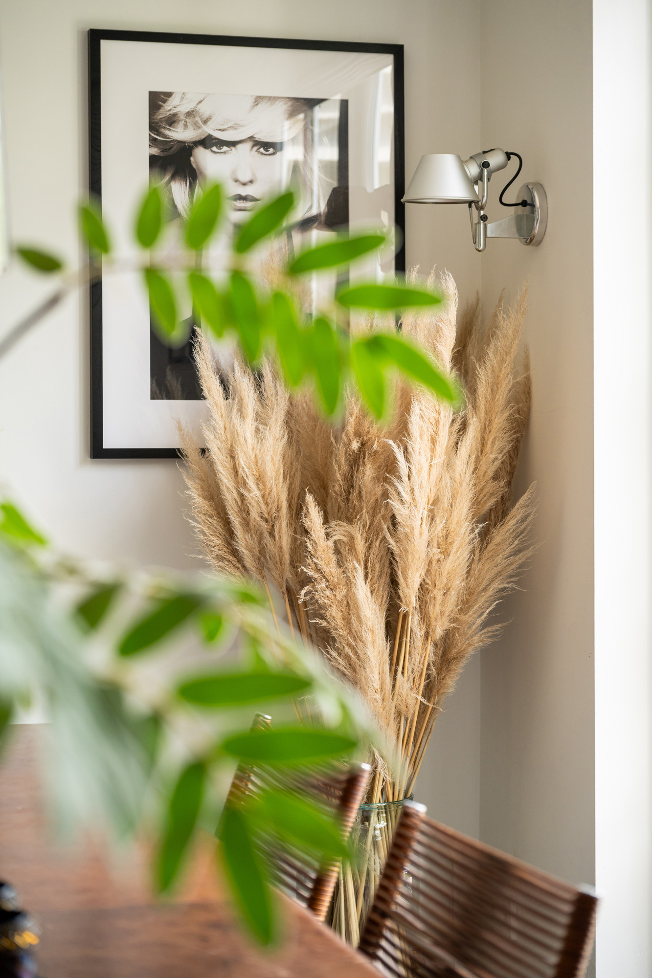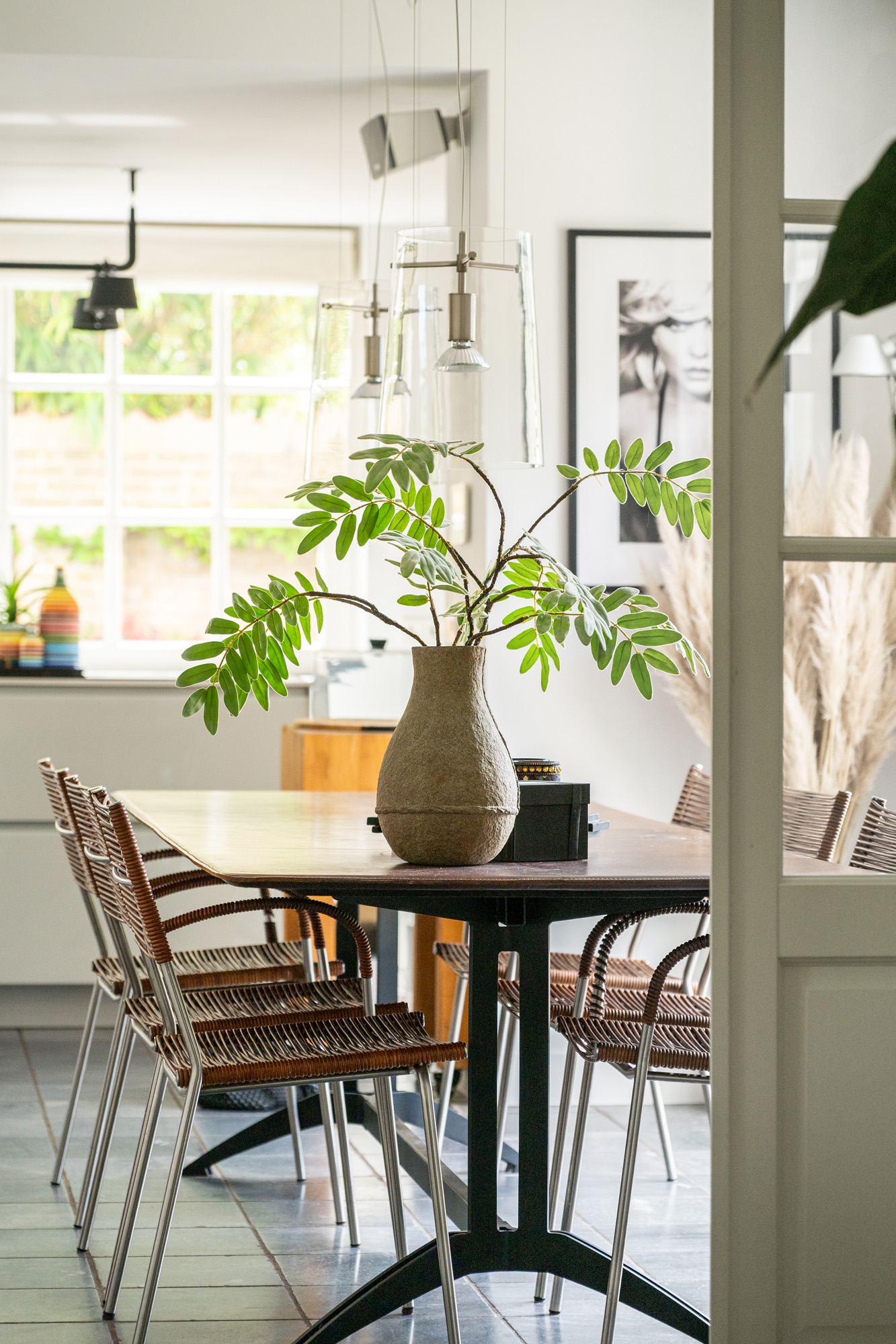 De eetkamer grenst aan de keuken en gaat over in de woonkamer. In deze eetkamer tref je een wandmeubel met veel