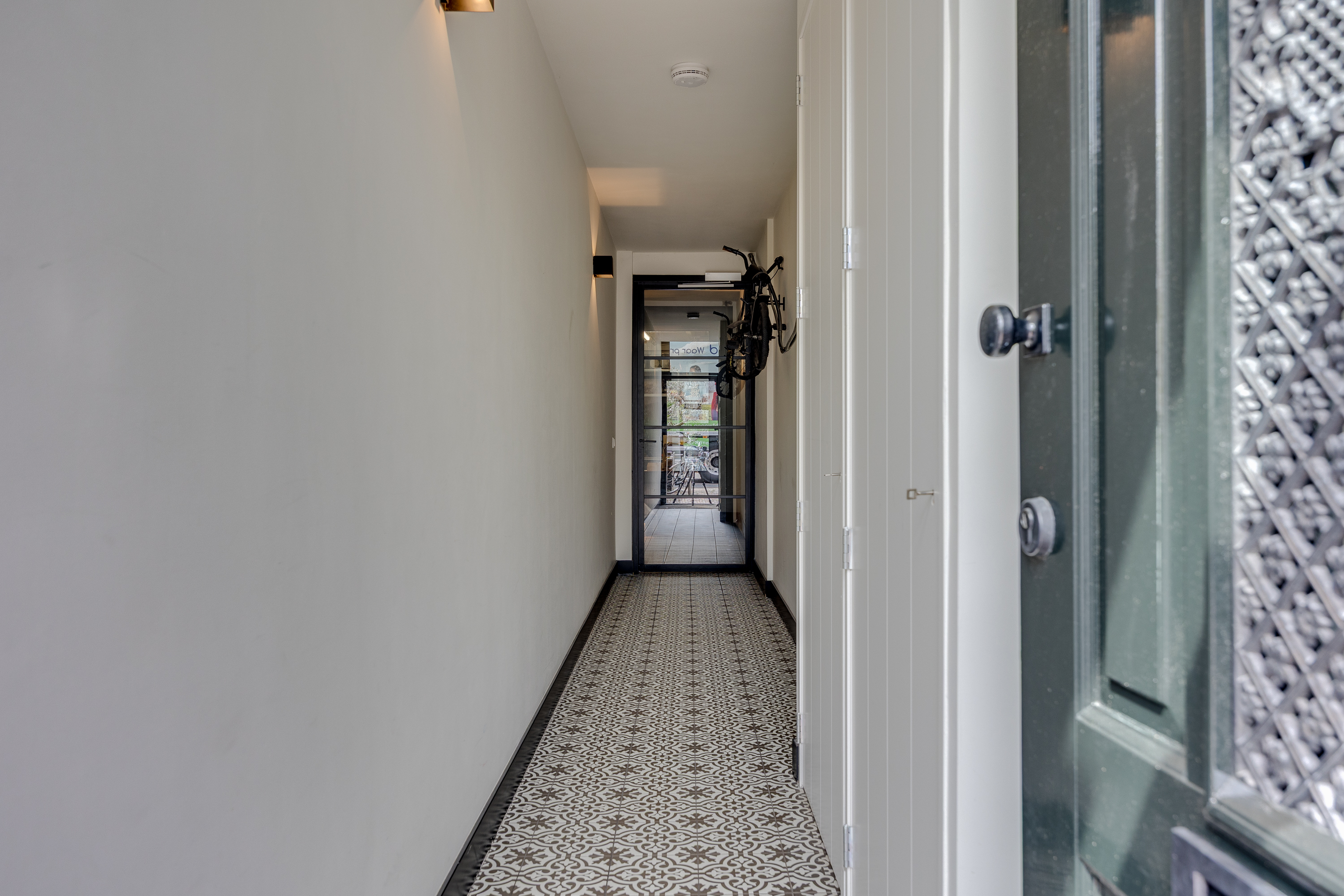 De voorgevel maakt deel uit van een gemeentelijk monument en verwijst naar het rijke verleden van het pand, waar ooit een slijterij gevestigd was. Achter deze gevel schuilt echter een woning die volledig voldoet aan de eisen van nu; modern, licht én stijlvol.