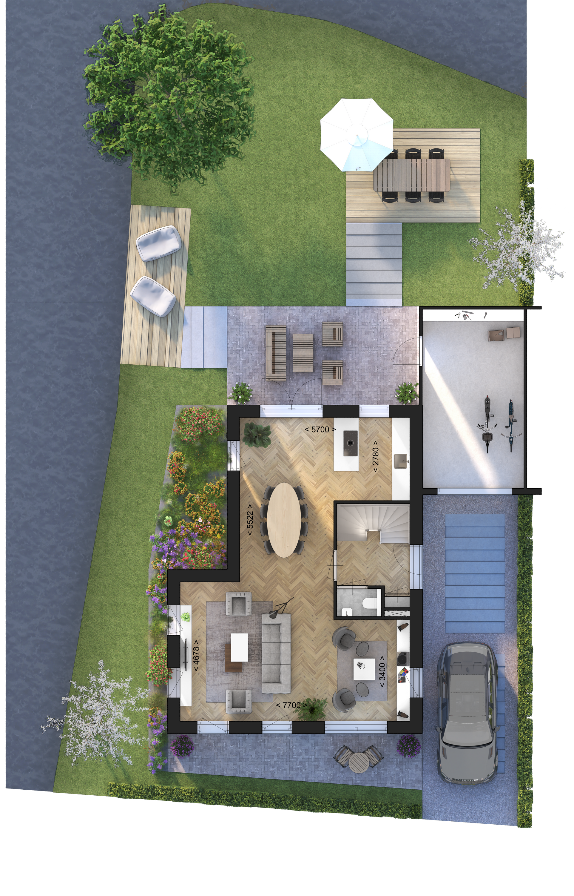 - De getoonde impressies en sfeerplattegronden dienen ter sfeerillustratie en kunnen afwijken van de daadwerkelijke indeling en afwerking van de betreffende eenheid.