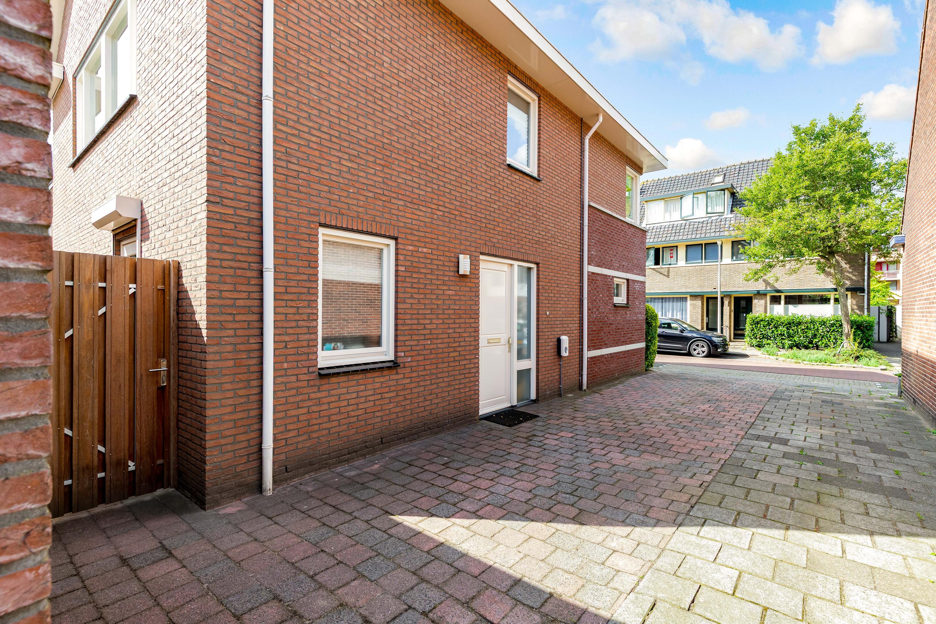 De zij- en achtertuin is gelegen op het zonnige zuidoosten, voorzien van een gevarieerde beplanting en sierbestrating. Het zonneterras biedt volop ruimte om te genieten van de zon, en er is directe toegang tot de garage en het bijgebouw. De tuin is zorgvuldig aangelegd, waardoor het zowel een rustige oase als een praktische buitenruimte is.