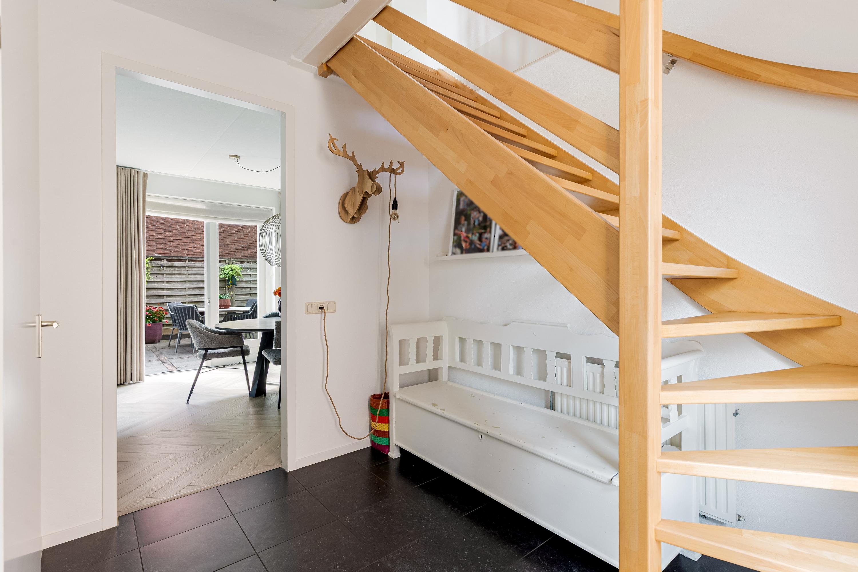 Via de ruime oprit (met plaats voor meerdere auto's én een laadpaal) betreed je de woning in een verzorgde hal met meterkast, toilet, trapopgang en toegang tot de living. De royale en lichte woonkamer straalt luxe uit, met een fraaie visgraatvloer, grote raampartijen en 2x dubbele openslaande deuren naar de zonnige achtertuin. De naadloze verbinding tussen binnen en buiten maakt dit een ideale plek om te ontspannen of te entertainen.