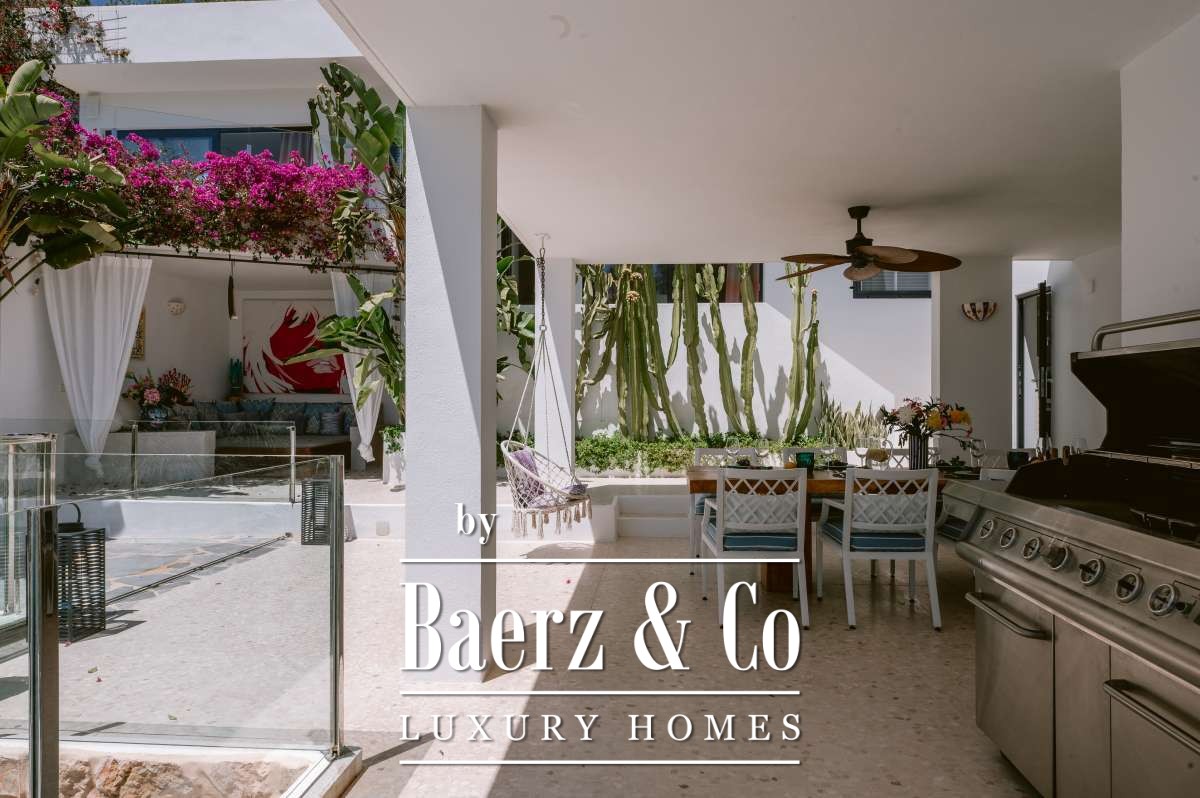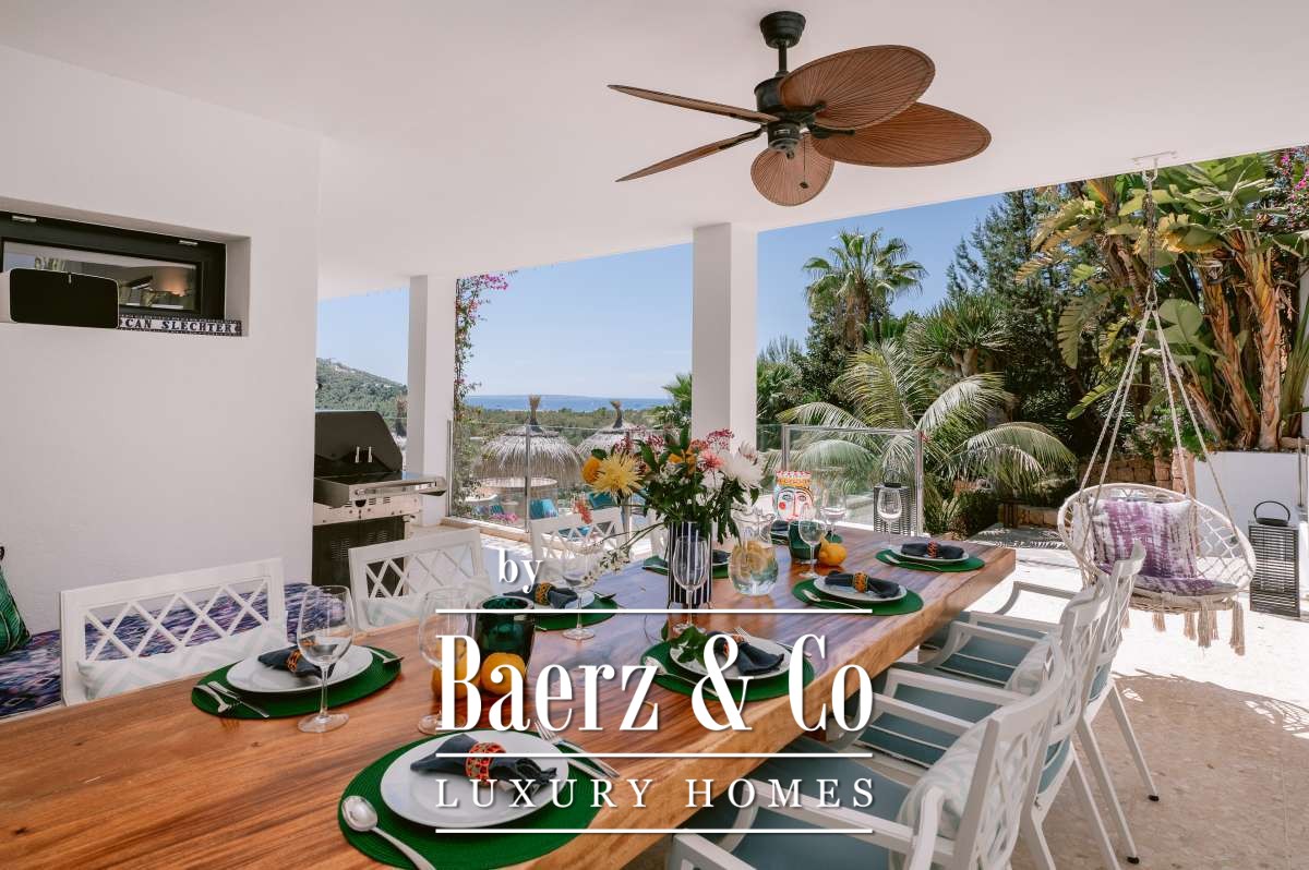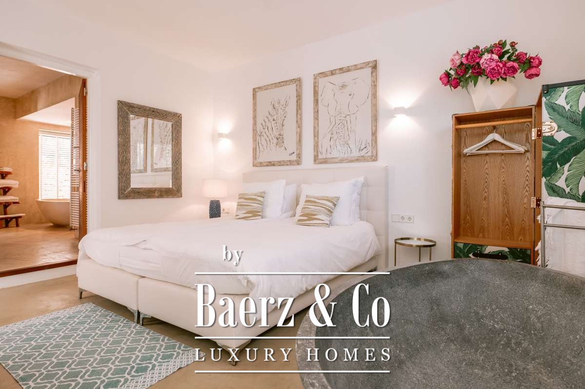 wasruimte.Met zijn uitzonderlijke afwerking en moderne architectuur is deze villa niet alleen een perfecte vakantiewoning, maar ook een fantastische investeringsmogelijkheid op Ibiza.Leven in de buitenlucht: Zwembad, jacuzzi en ongekend uitzichtDe buitenkant van deze villa is minstens net zo spectaculair als het interieur. Wat dit perceel echt uniek maakt, is de royale grootte en de doordachte inrichting van de tuin, die zorgt voor maximale privacy. De grote infinity pool biedt een panoramisch uitzicht over de groene heuvels en de zee, terwijl de ruime lounge terrassen uitnodigen tot ontspanning in de zon. Begin uw dag met een koffie op uw terras, breng de middag door bij het zwembad en sluit de avond af met een diner in de buitenkeuken met barbecue, onder de sterrenhemel.De jacuzzi voegt een extra laag ontspanning toe, terwijl de Bali-stijl pergola met massagebedden een unieke wellness-ervaring biedt met uitzicht over het eiland. Dit is écht een ideale woning voor zowel families als investeerders die op zoek zijn naar een luxe woning op Ibiza.Bent u op zoek naar een droomvilla met privacy, luxe en een toplocatie? Dan is dit uw kans. Deze exclusieve villa in Can Furnet biedt alles wat u zoekt in een high-end woning op Ibiza. Neem vandaag nog contact met ons op voor een bezichtiging en ervaar deze unieke kans zelf!Extra mogelijkhedenOmdat het een groot bebouwbaar stuk grond binnen een urbanisatie betreft is er zelfs de optie om de bestaande villa volledig af te breken en op deze locatie iets geheel nieuws en eigentijds te ontwikkelen. Of je nu droomt van het bouwen van je eigen huis, een volledige renovatie overweegt of met gerichte aanpassingen de indeling wilt veranderen, de mogelijkheden zijn er. Bij Ibiza Estates denken we uiteraard graag met je mee!