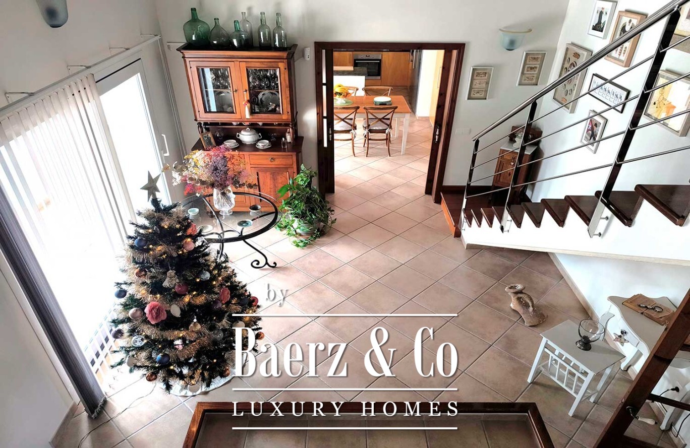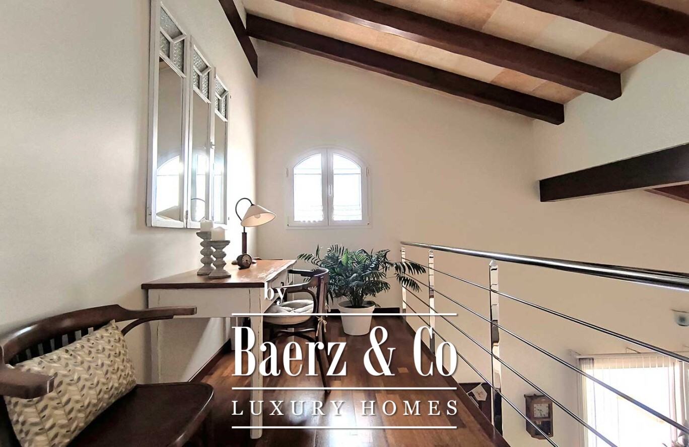Op de verdieping zorgt een serene overloop, perfect voor werk of bezinning, met uitzicht op de woonruimte voor toegang naar de master suite. Deze privéruimte beschikt over een eigen badkamer en een privéterras, zodat u geniet van zonlicht en een fraai uitzicht in de ochtend.