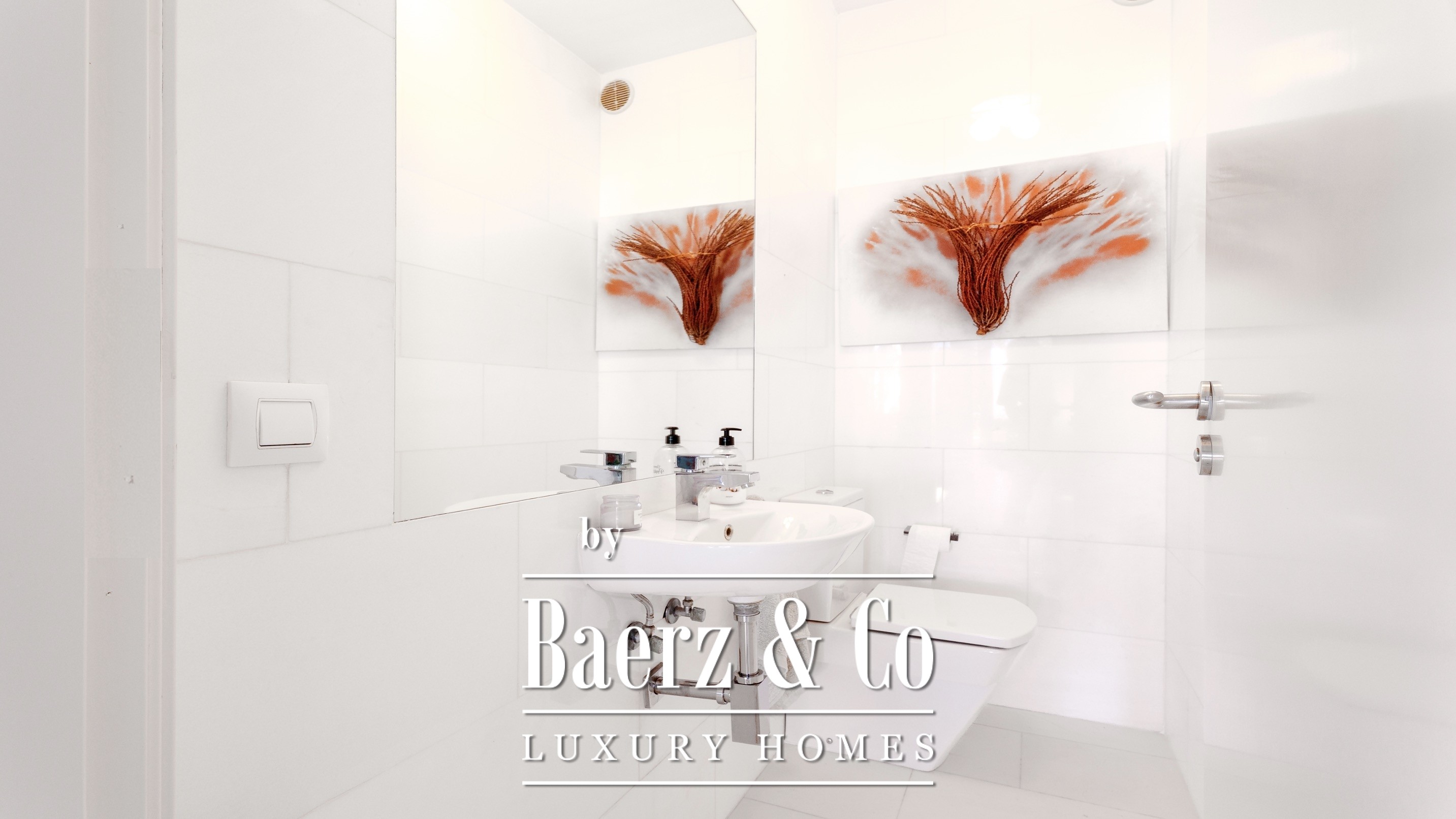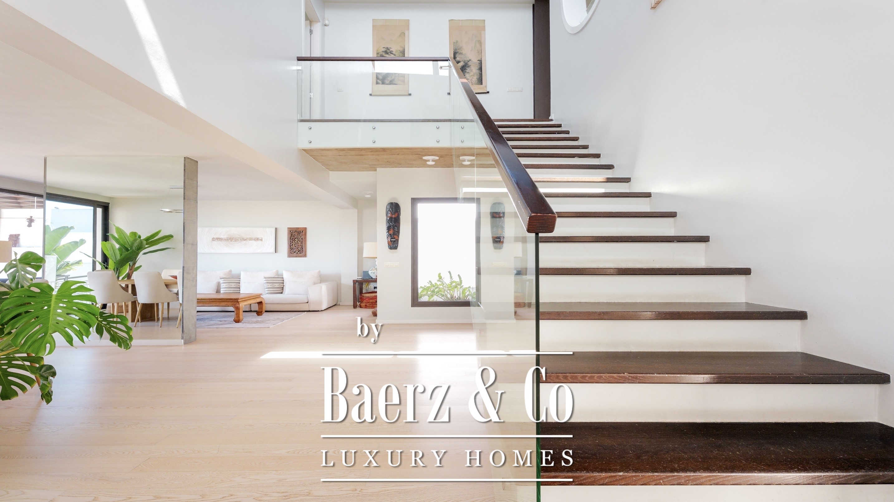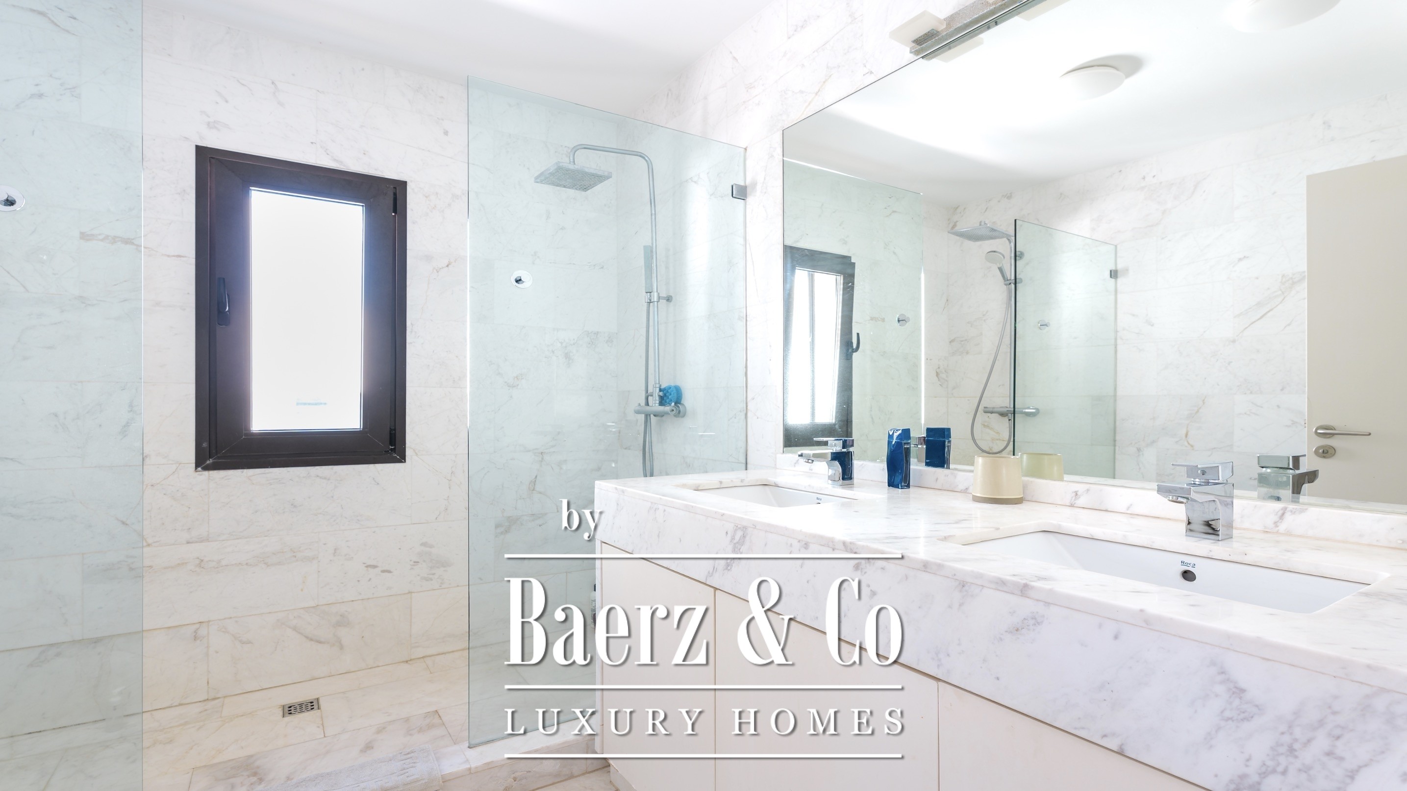 Er zijn vier slaapkamers met en-suite badkamers, waarvan de hoofdslaapkamer een kleedkamer, een grote badkamer en een eigen balkon met uitzicht op zee heeft.