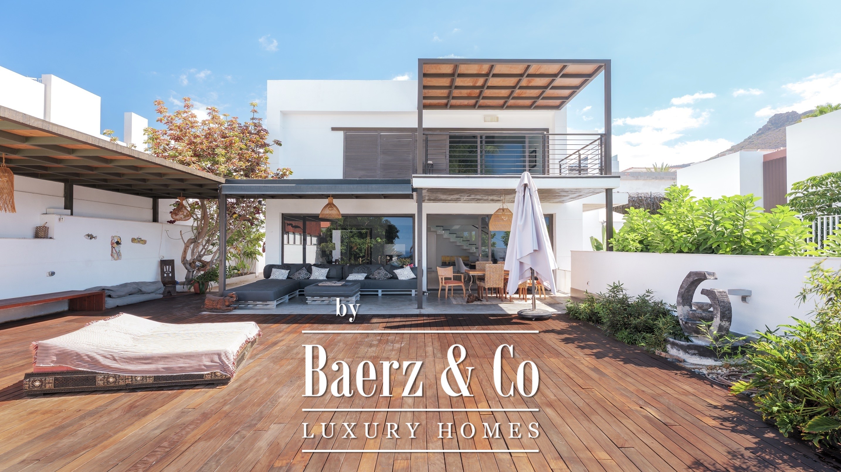 We zijn verheugd u deze indrukwekkende villa met twee verdiepingen te mogen presenteren, gebouwd op een ruim perceel van 900 m², gelegen in een van de meest exclusieve wijken van Costa Adeje.