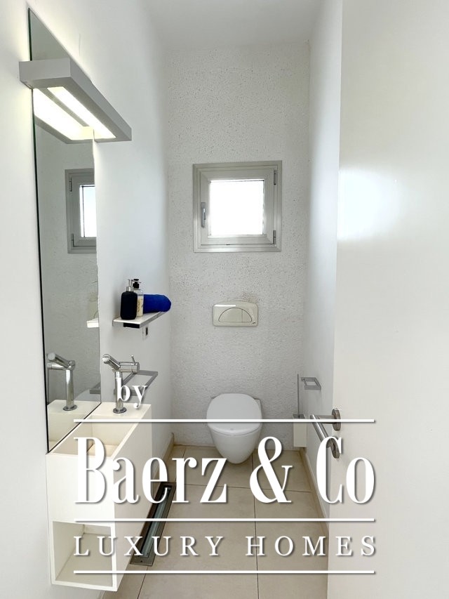 De begane grond, van 192 m2, omvat: een open, volledig ingerichte en uitgeruste keuken, een bijkeuken met directe toegang tot de keuken, een ruime woonkamer, een patio, een eetgedeelte, een tv-kamer met open haard en 3 ruime slaapkamers (waarvan twee met elkaar verbonden), allen met een eigen badkamer en een gastentoilet.