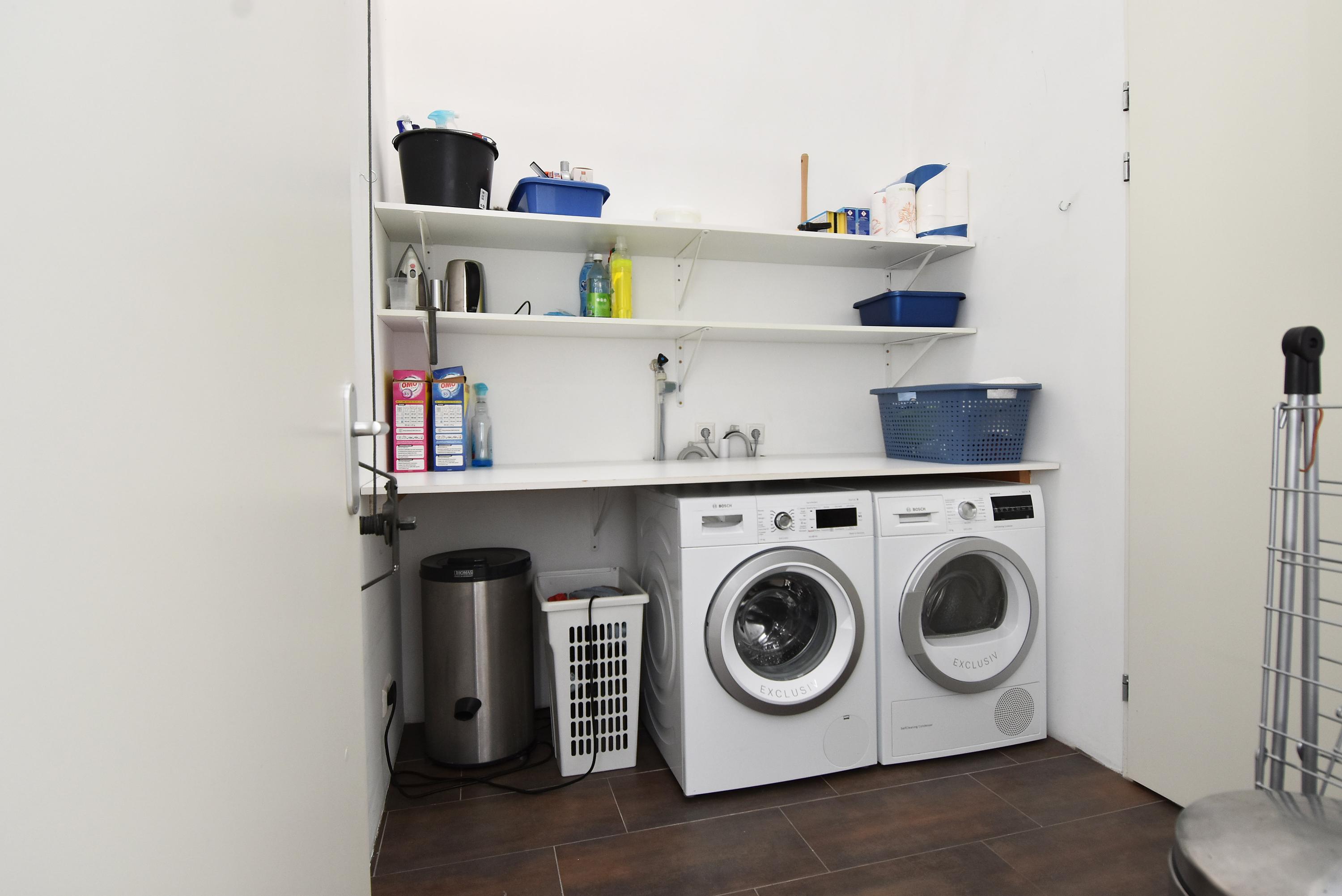 Op de eerste verdieping vind je maar liefst vijf volwaardige slaapkamers, waarvan één momenteel als kastenkamer wordt gebruikt. De moderne badkamer met dubbele wastafel en twee inloopdouches zorgt voor comfort en gemak, terwijl een apart toilet extra praktisch is voor een groot gezin.