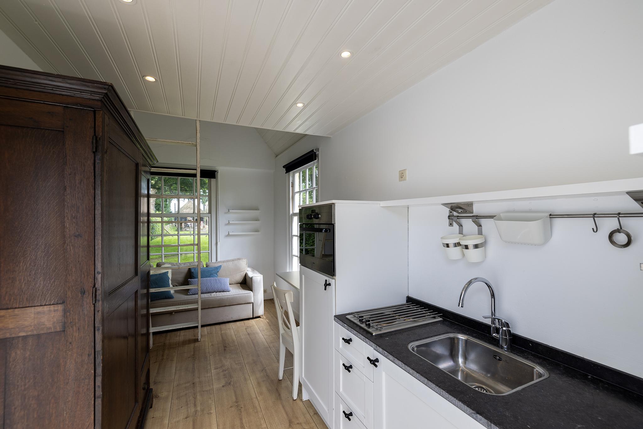 De opkamer met uitzicht op de polder is een geweldige werkkamer, voorzien van een grote schouw en een eigen entree. Onder deze kamer bevindt zich één van de twee kelders, nu in gebruik als royale wasruimte. De verdieping biedt nog meer ruimte: 4 slaapkamers, een moderne badkamer, apart toilet en zelfs een bedstee voor wie het knus wil houden.