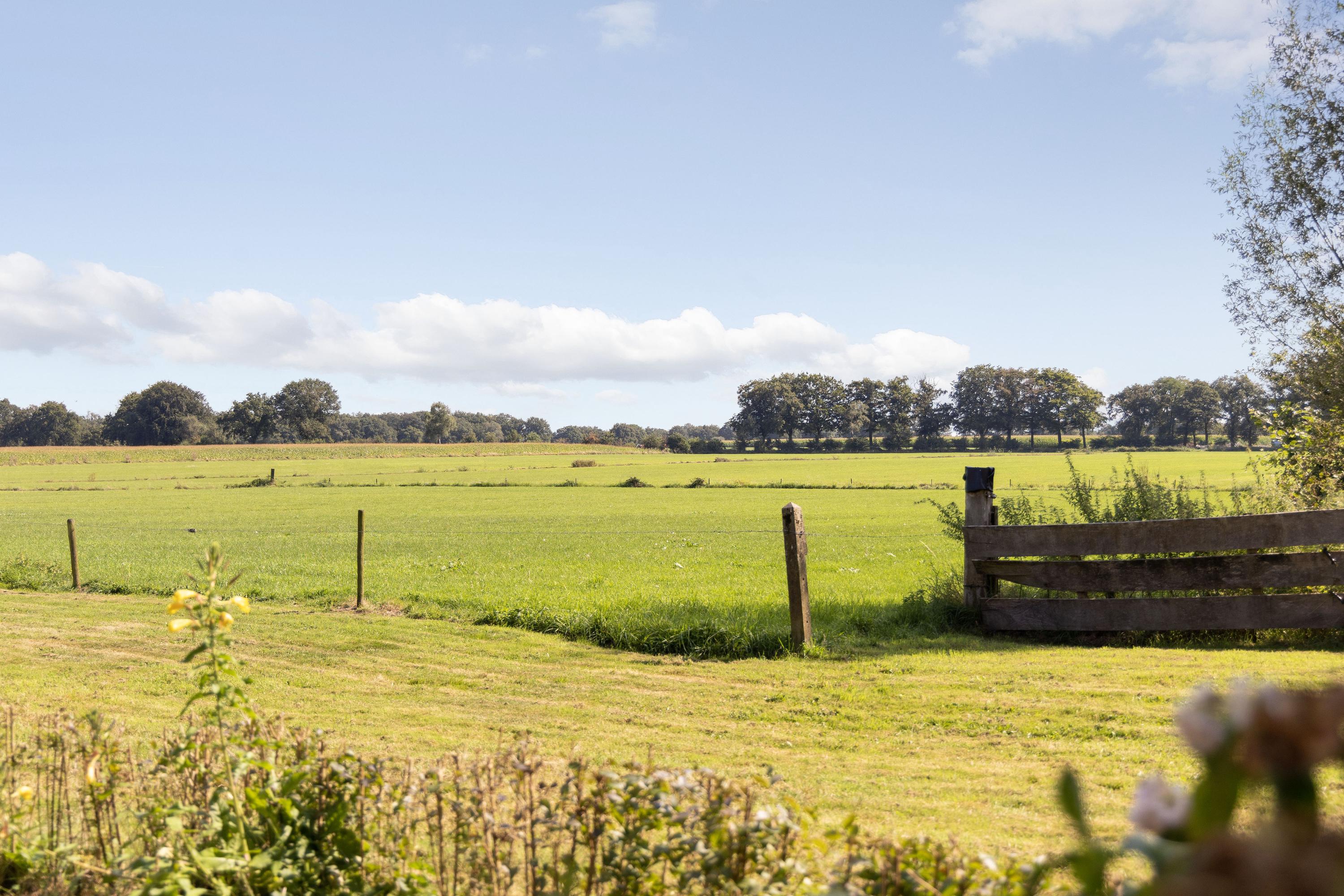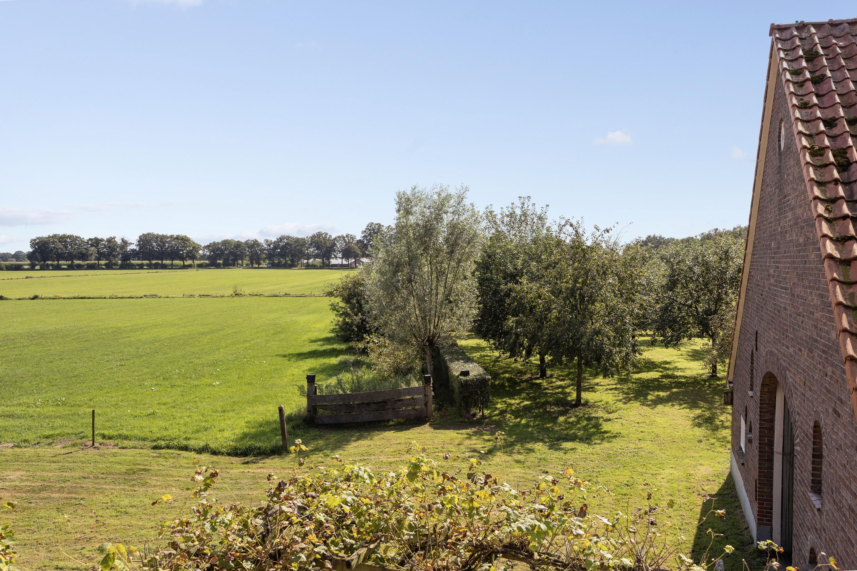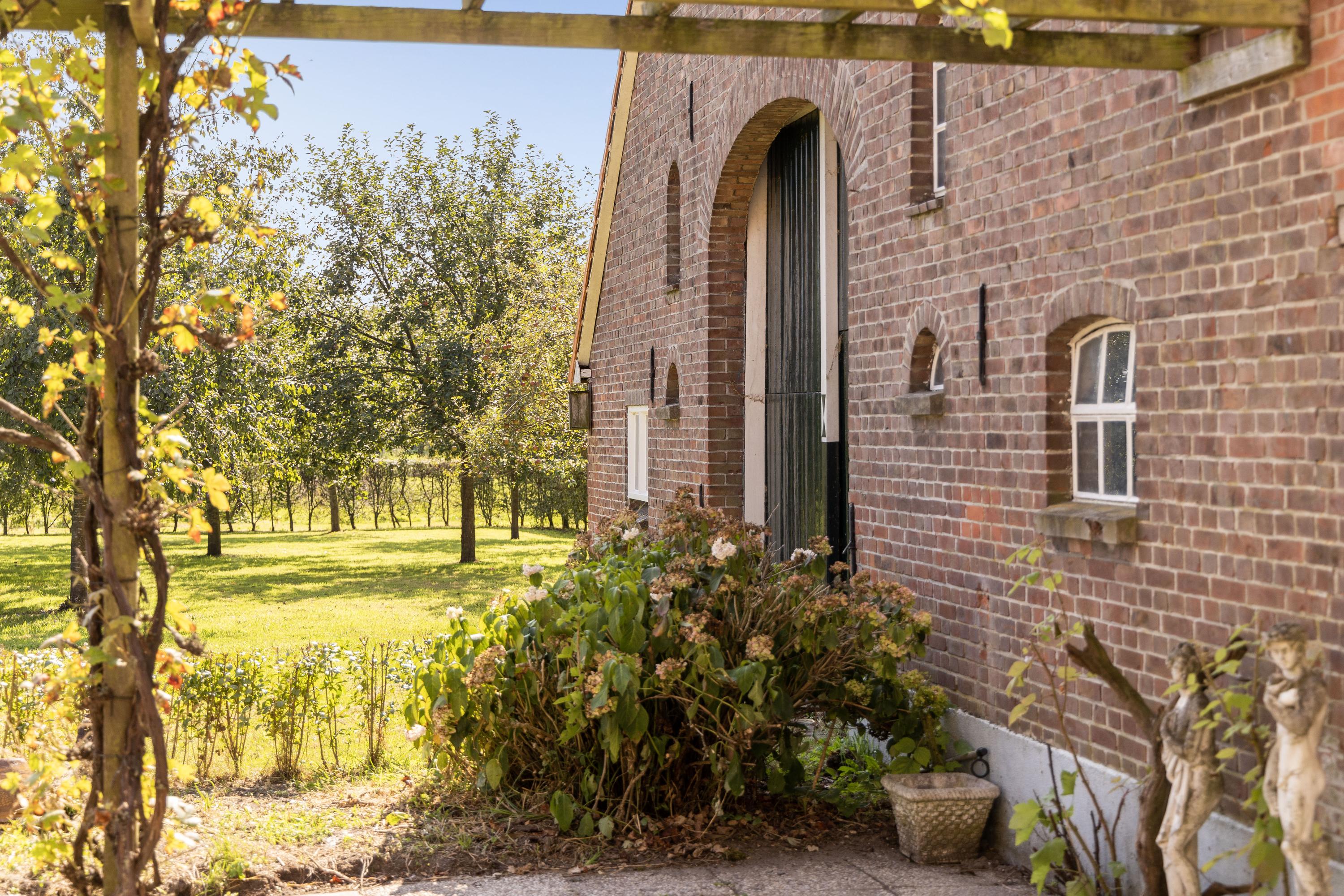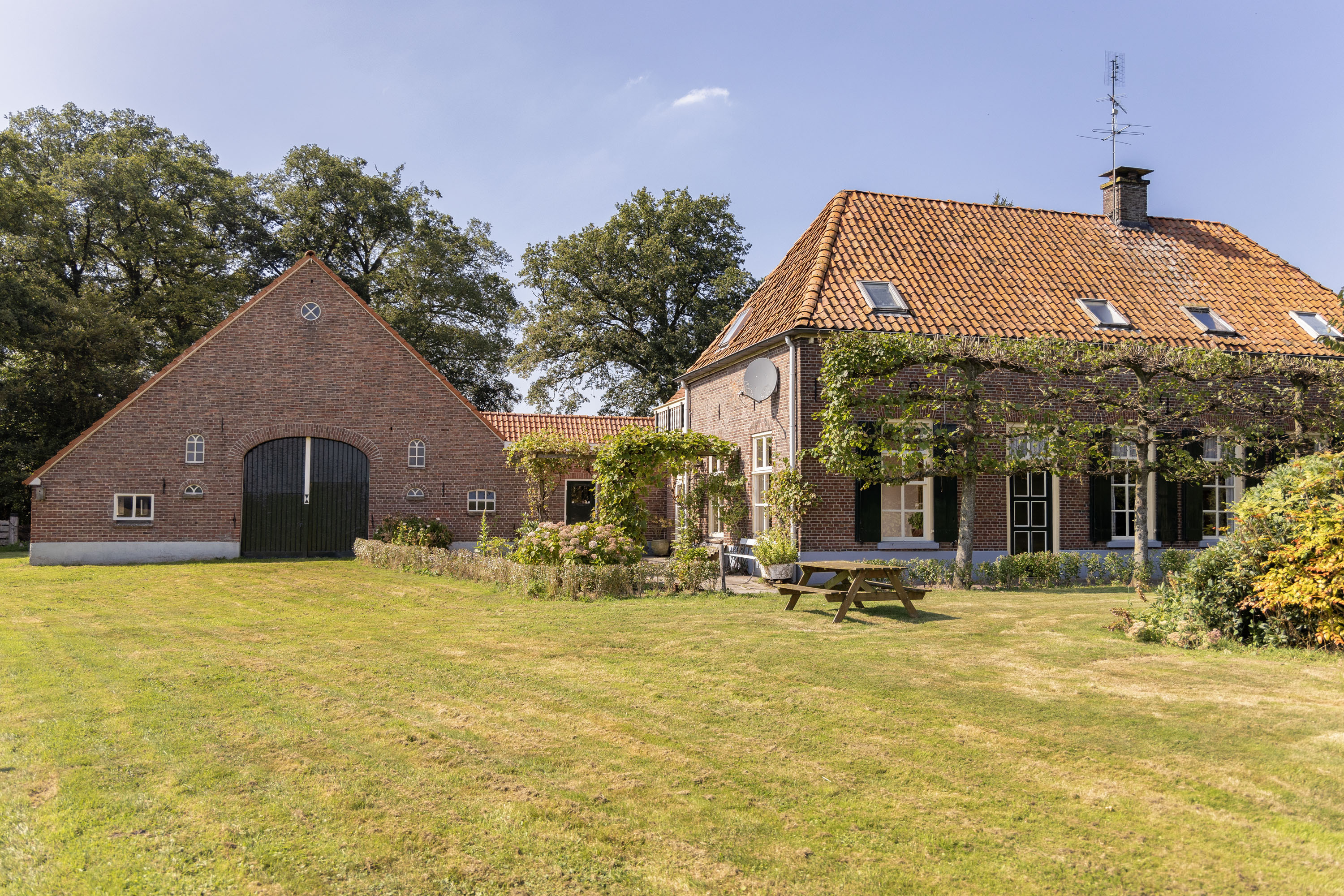 De woning is bereikbaar via een lommerrijke oprijlaan, met voor de woning diverse oude, karakteristieke eikenbomen en een gazon. Aan de andere zijde is een weelderige landelijke boerentuin aangelegd met een hoogstam fruitboomgaard, omzoomd door een meidoornhaag, een ‘ronde tuin’ met vruchtbomen, rododendrons, een natuurweide en zitjes op elk denkbaar plekje. Het is hier overal genieten van de tuin, de natuur en het met regelmaat langs struinende wild.
